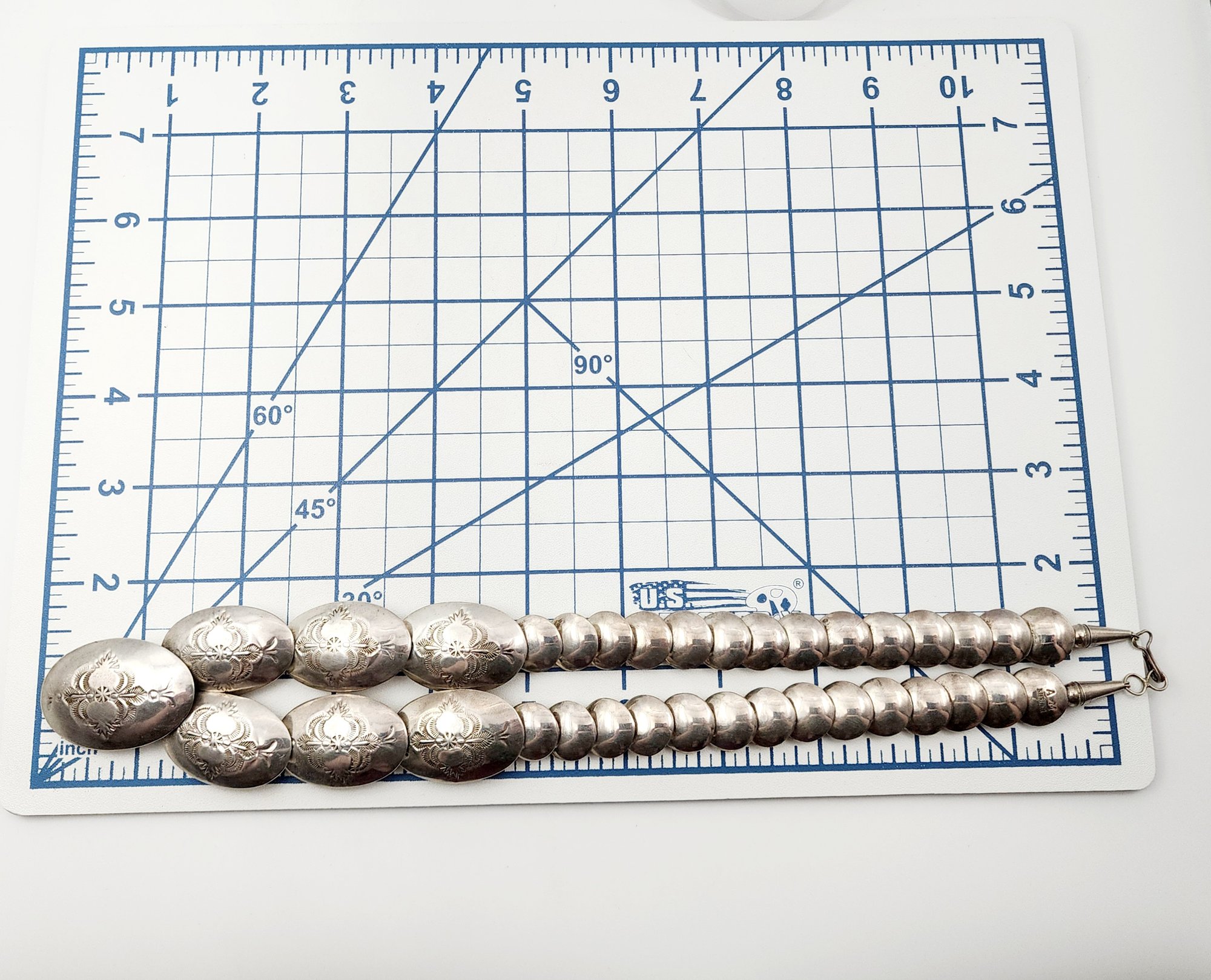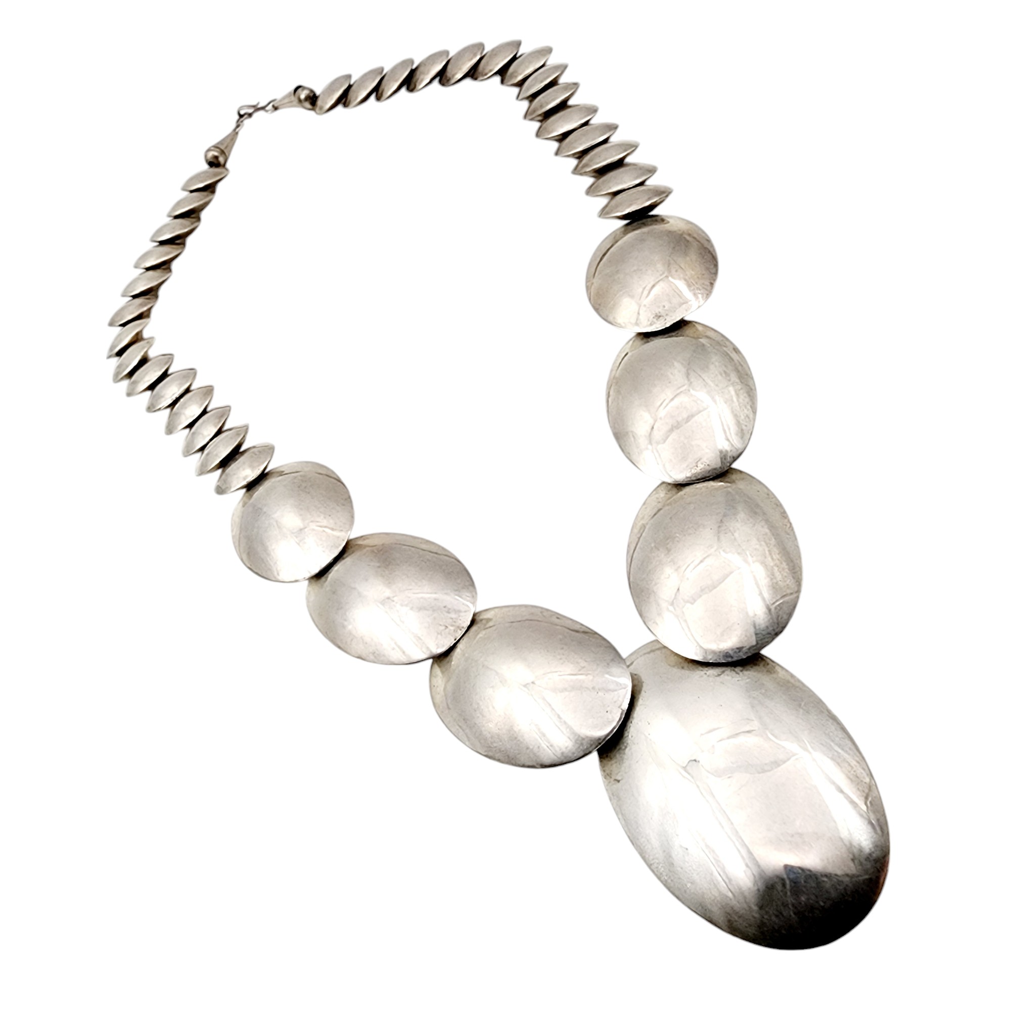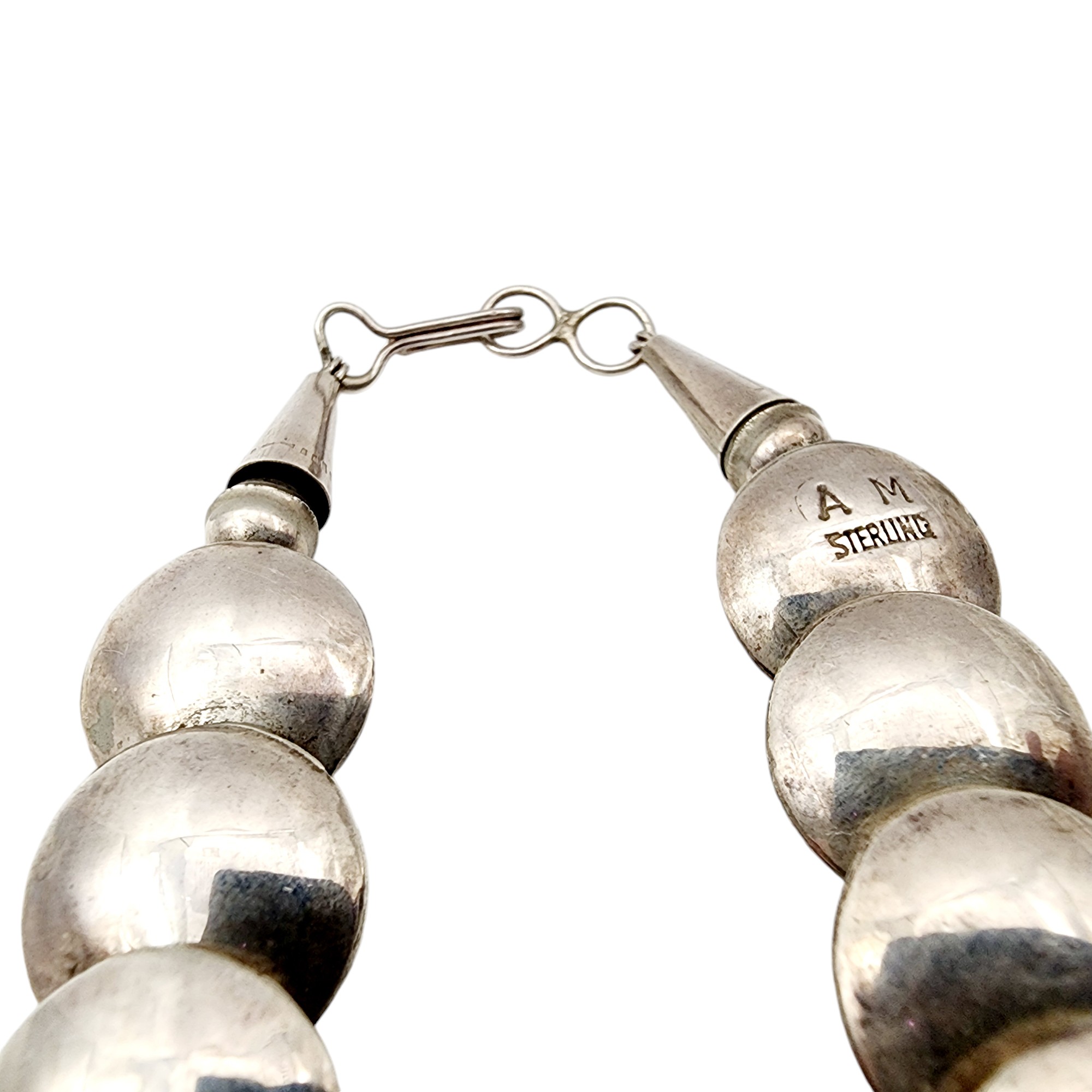 Vintage Alfred Martinez Navajo Sterling Handstamped Pillow Bead Necklace 65g