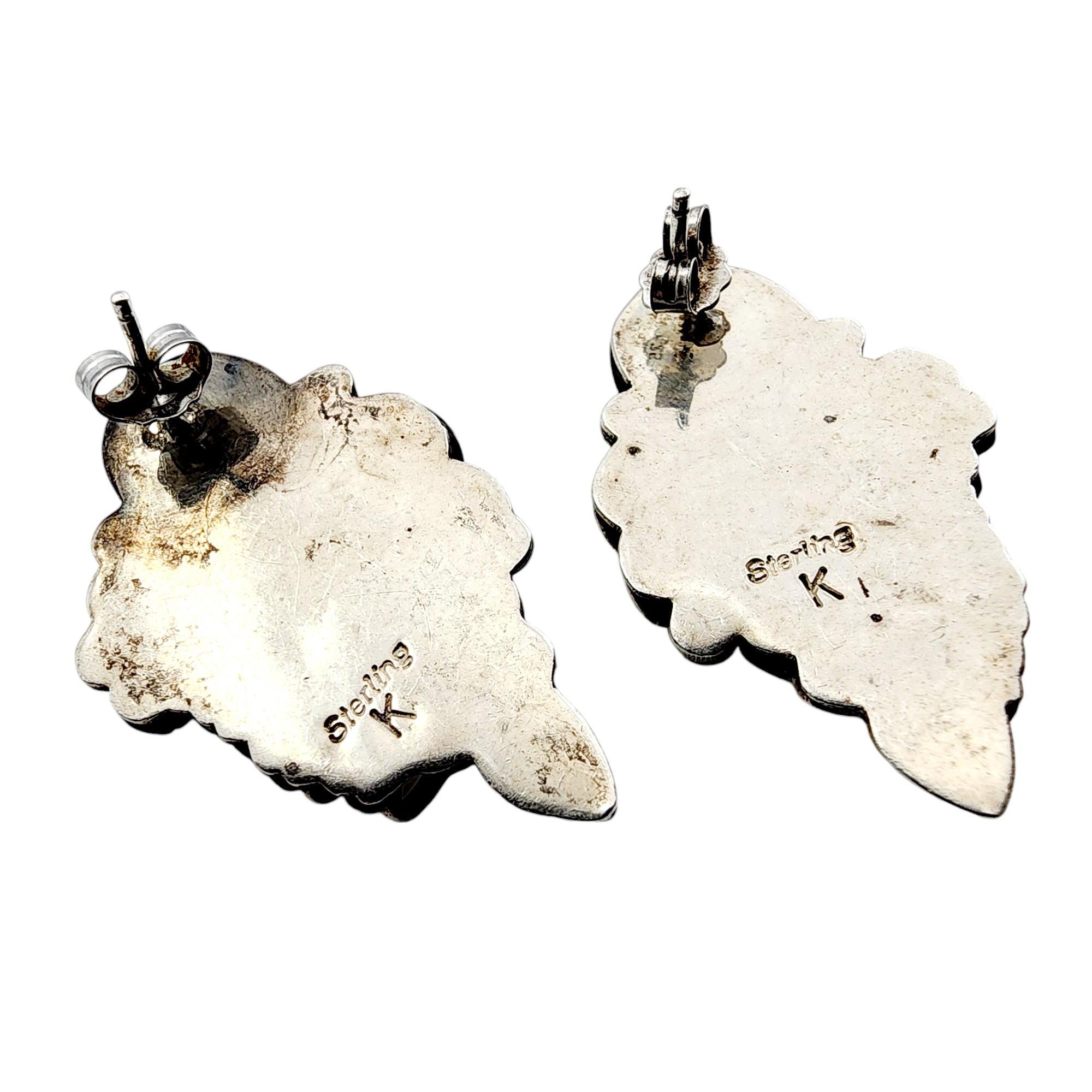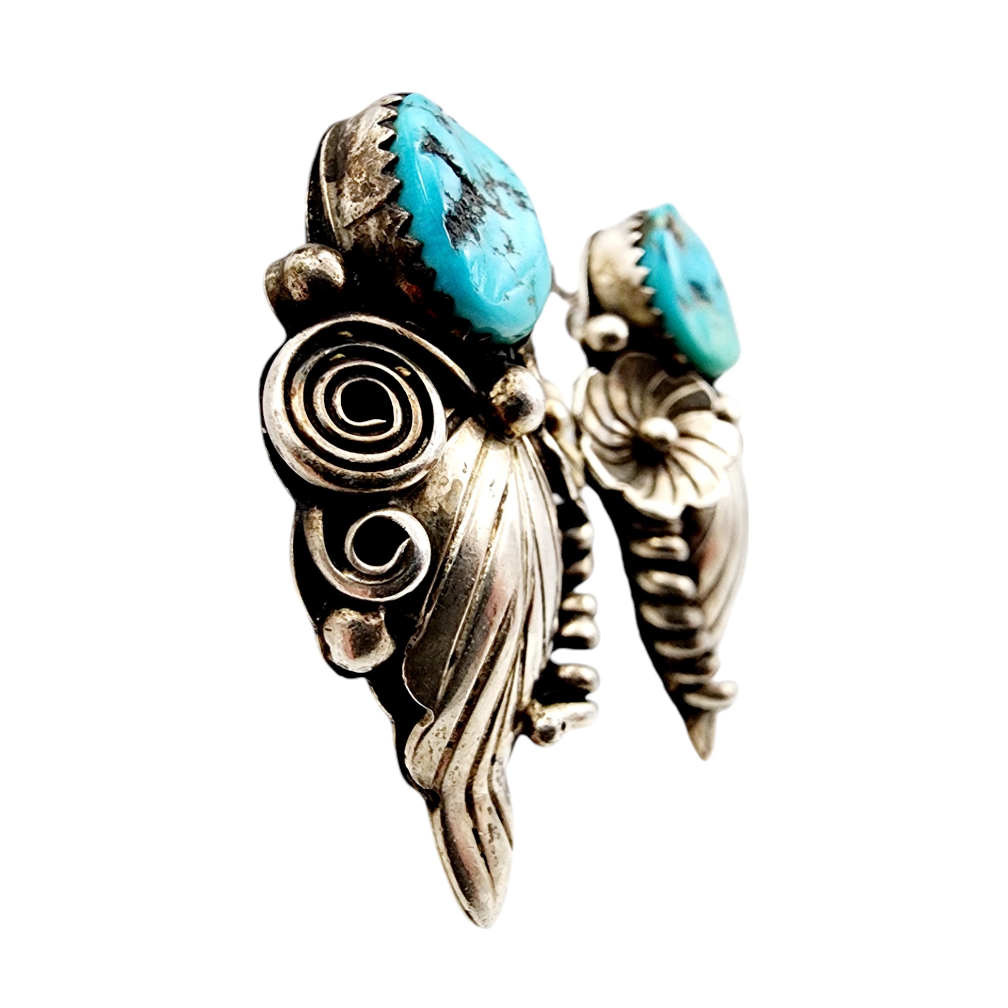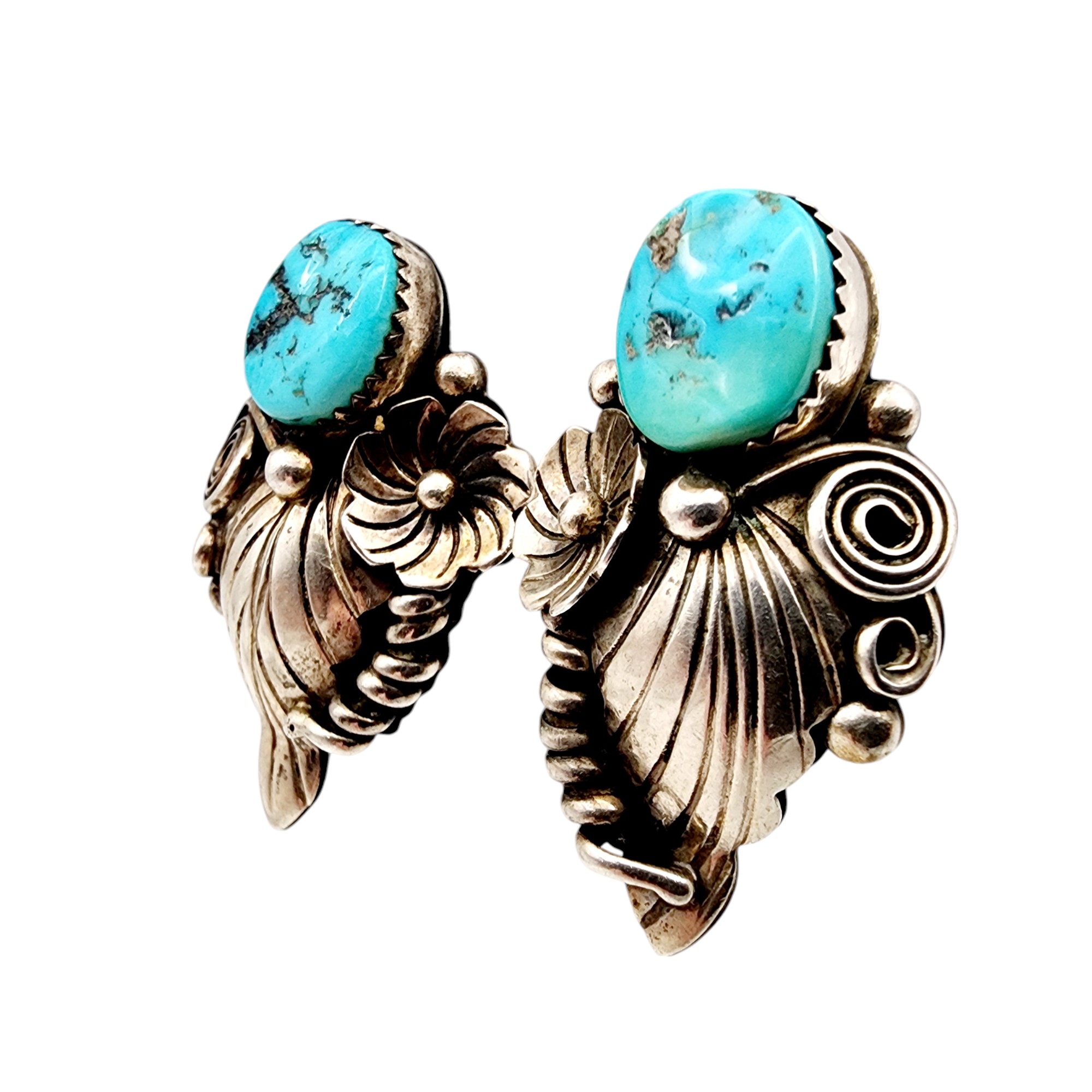 Vintage Jamison Kee Navajo Sterling Detailed Turquoise Spiral Earrings 13.7g