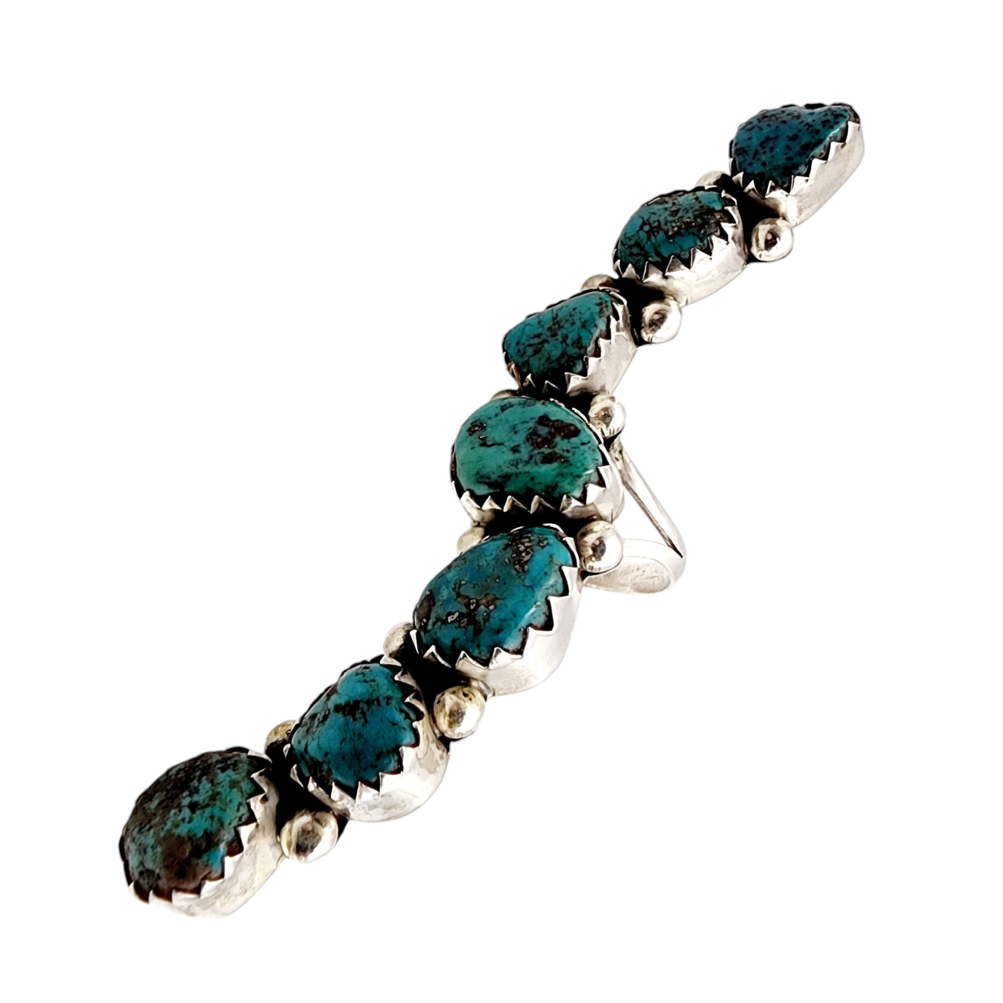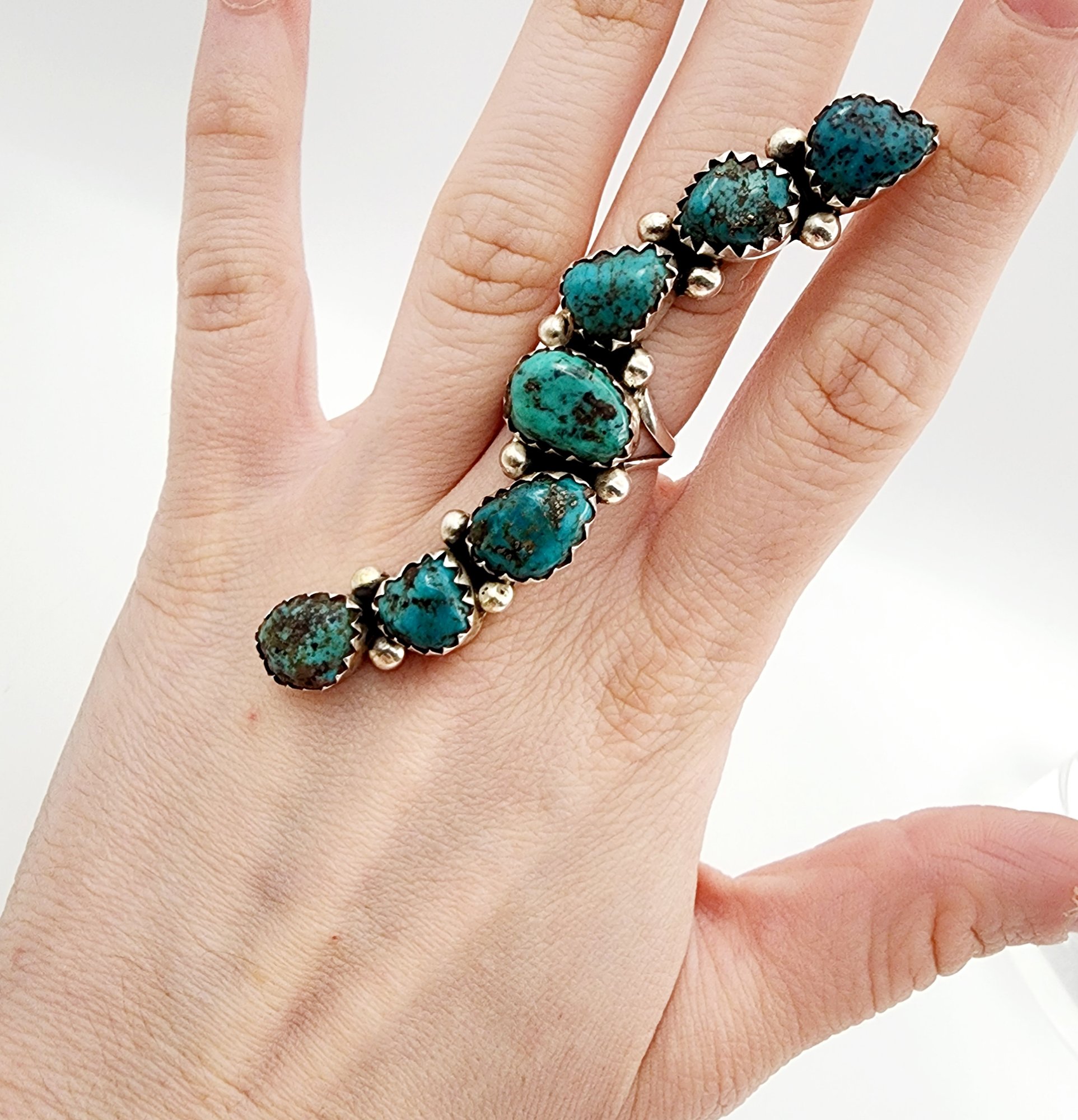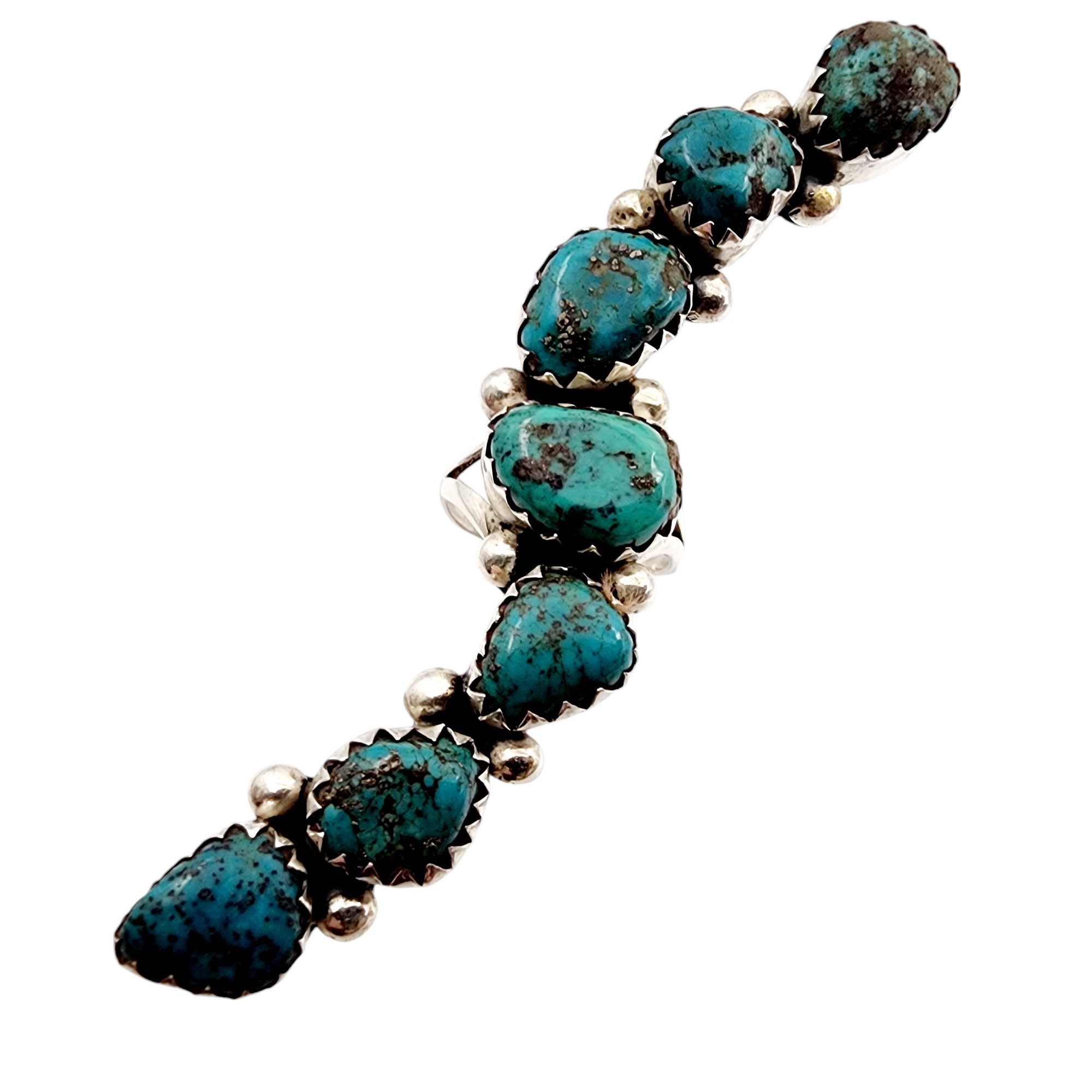 Cecil Henry? Navajo Sterling Turquoise Finger Length Ring Sz 7.5 21.3g *Previous owner cleaned/polished this item*