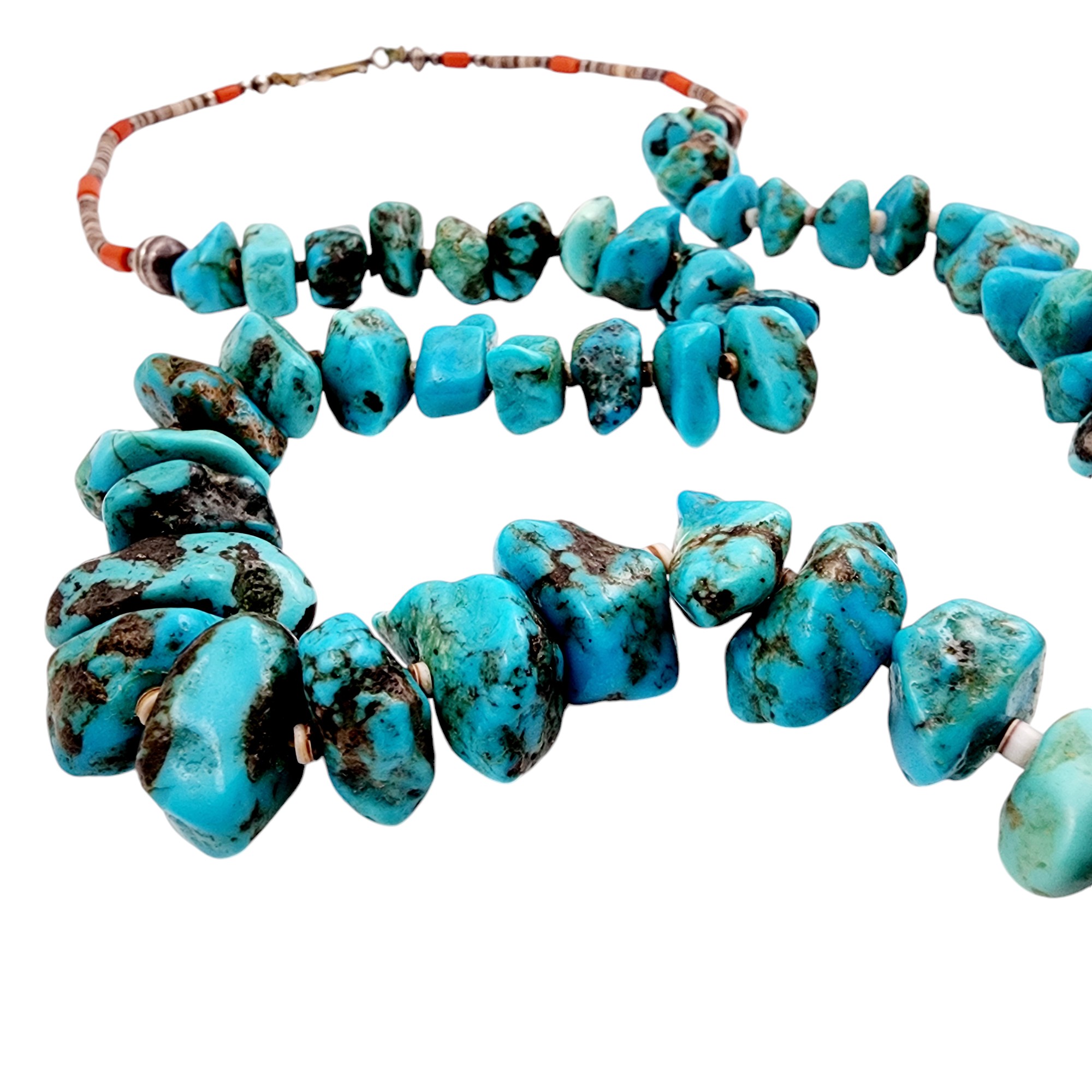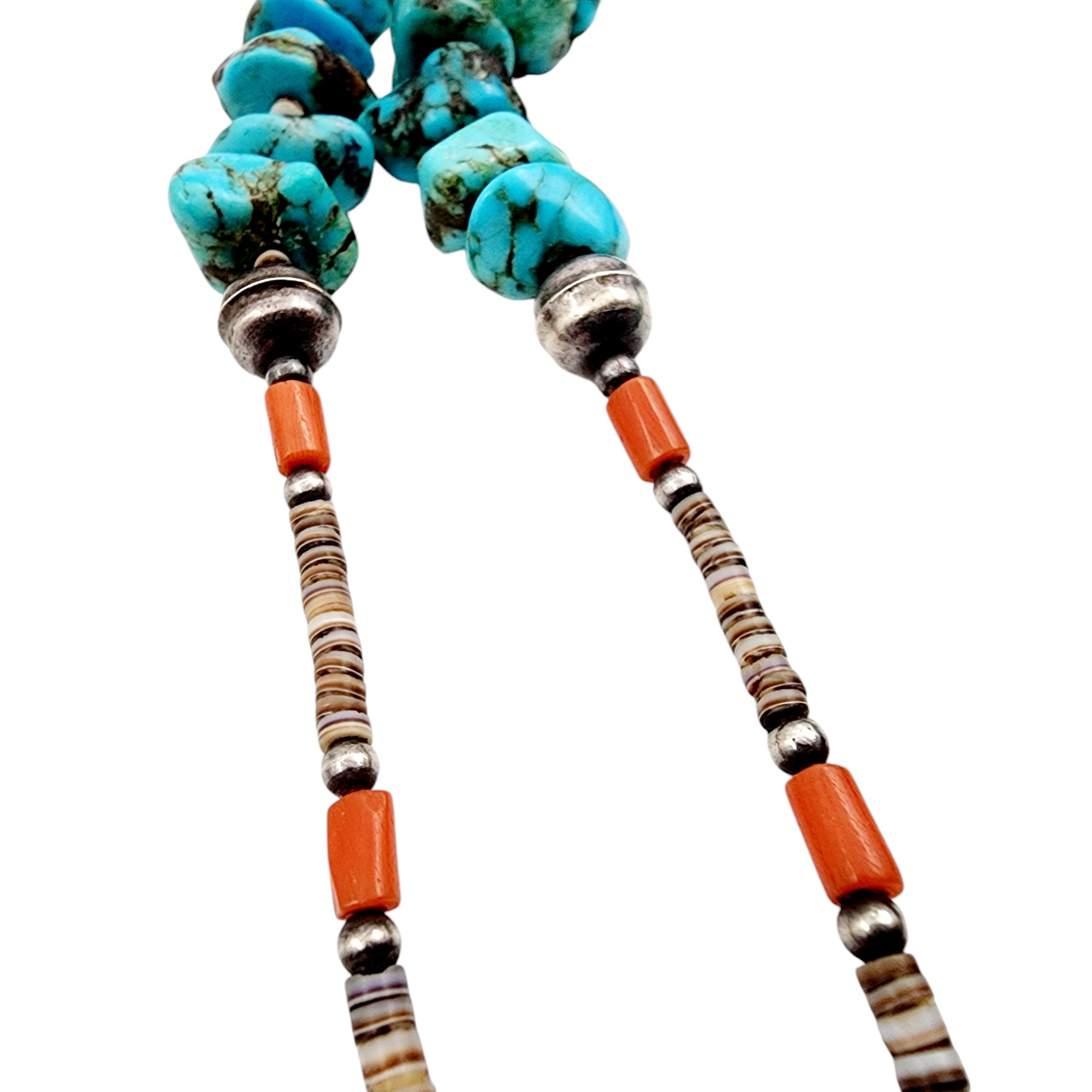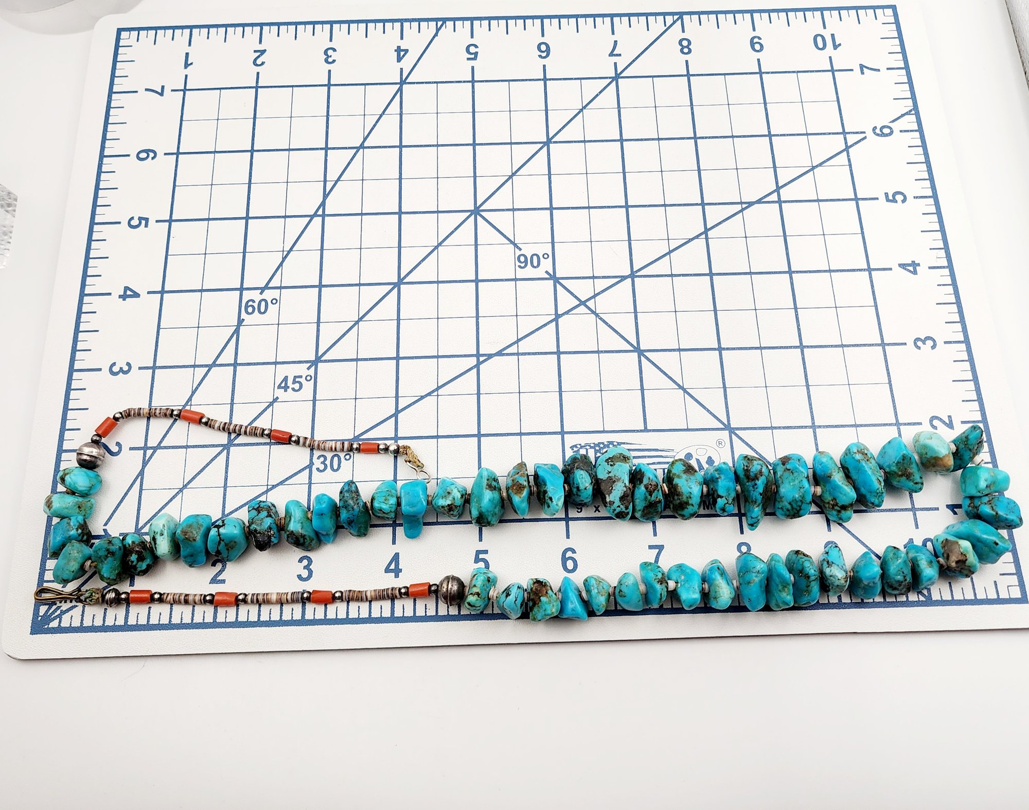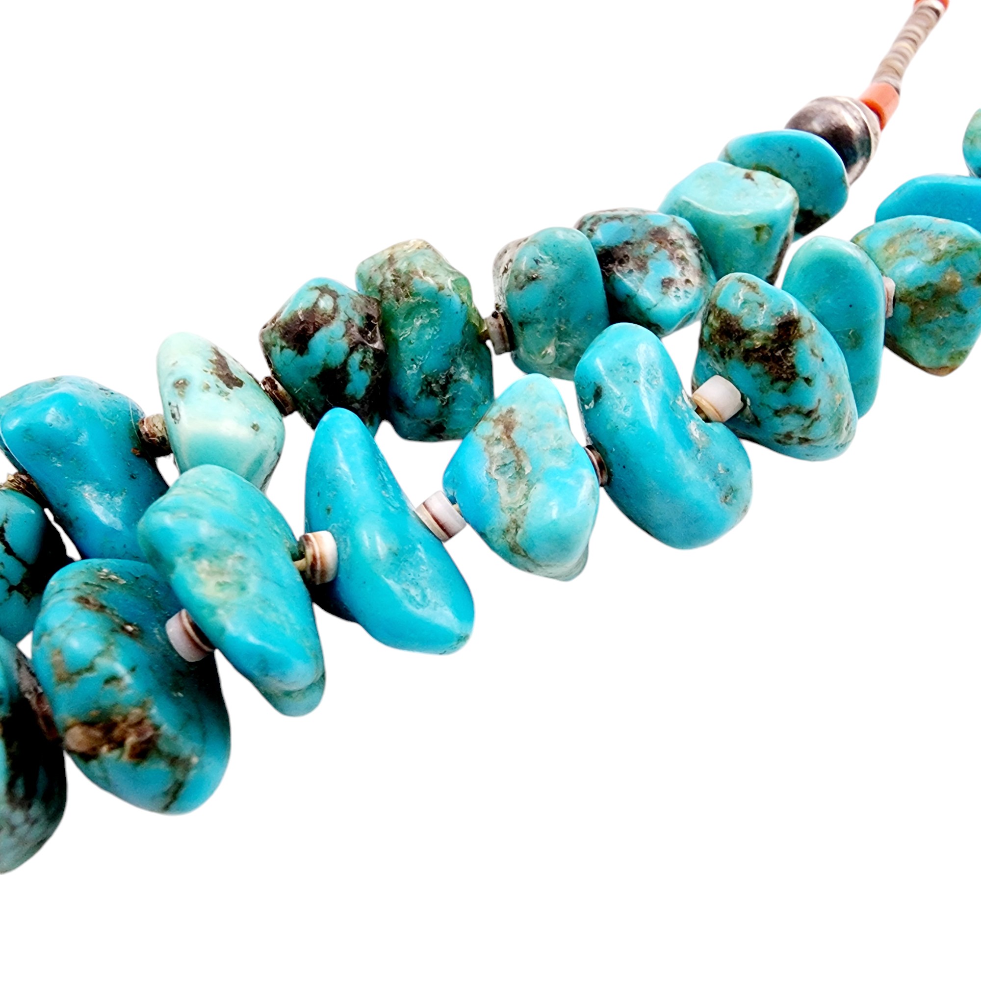 Santo Domingo Pueblo Sterling Turquoise Chunk Coral Heishe Bead Necklace 92.5g