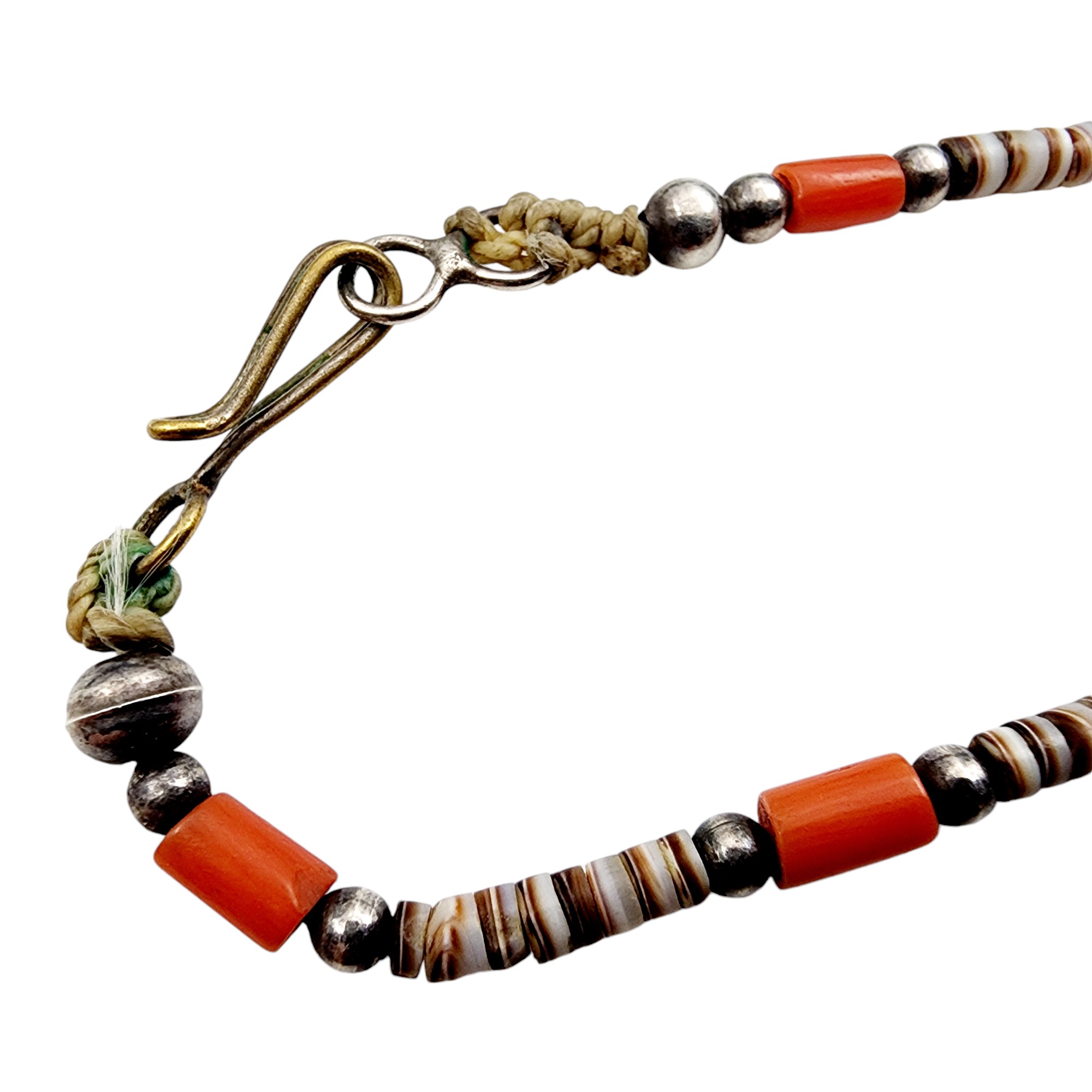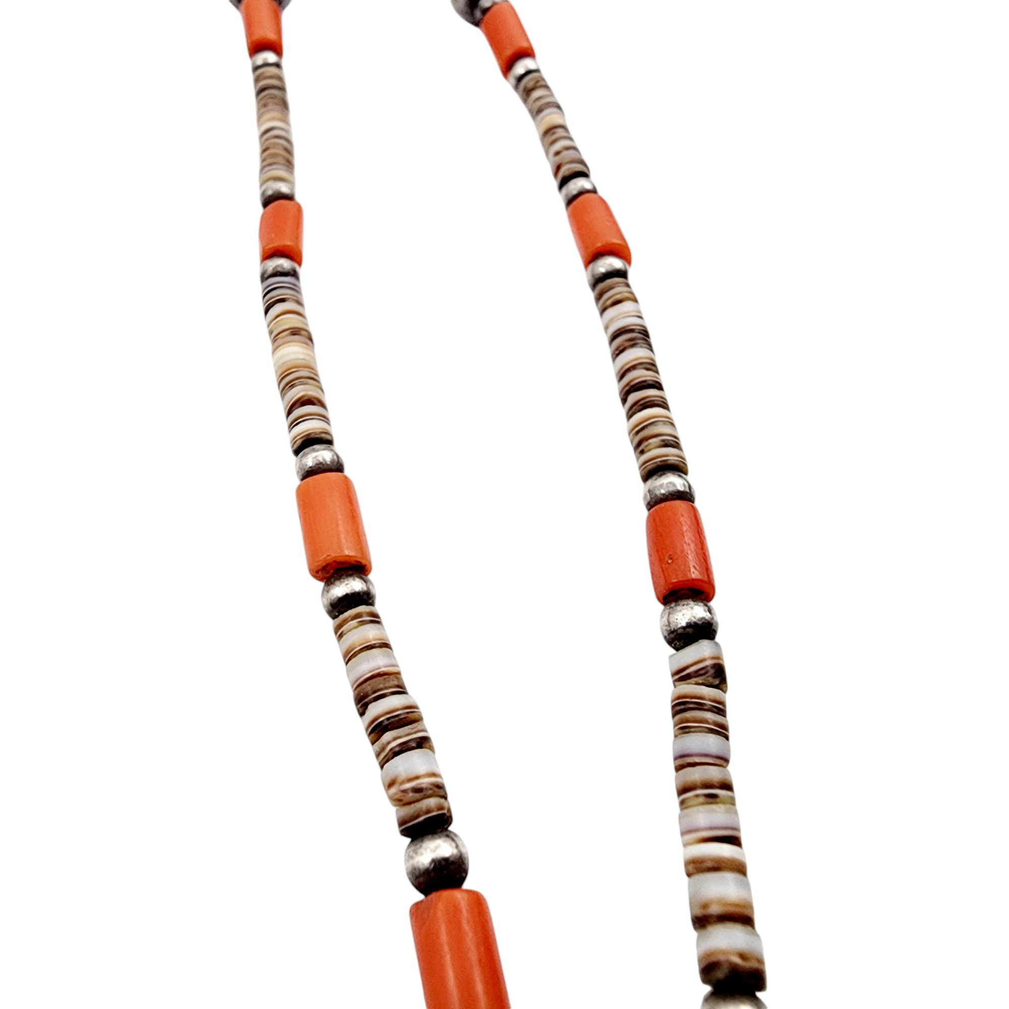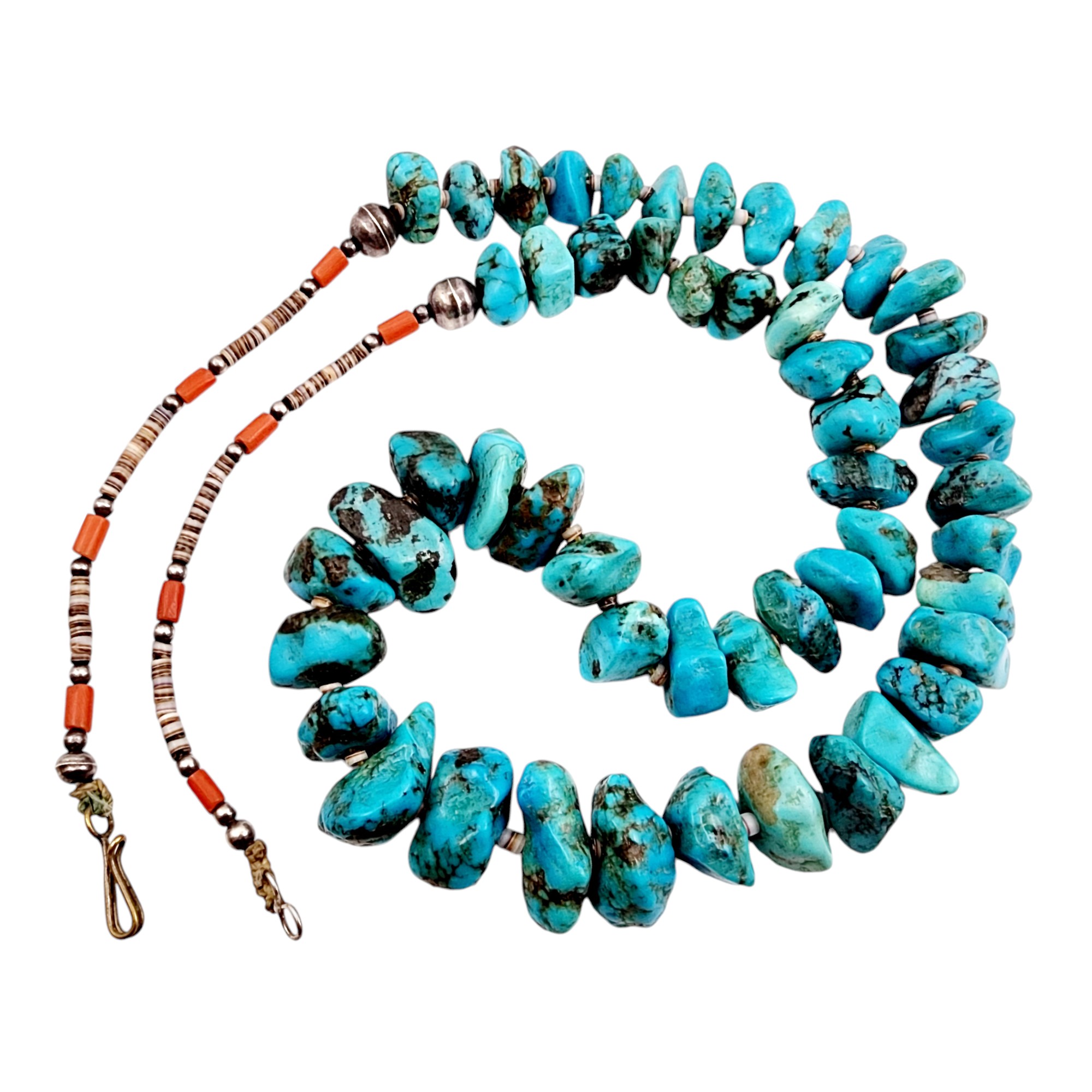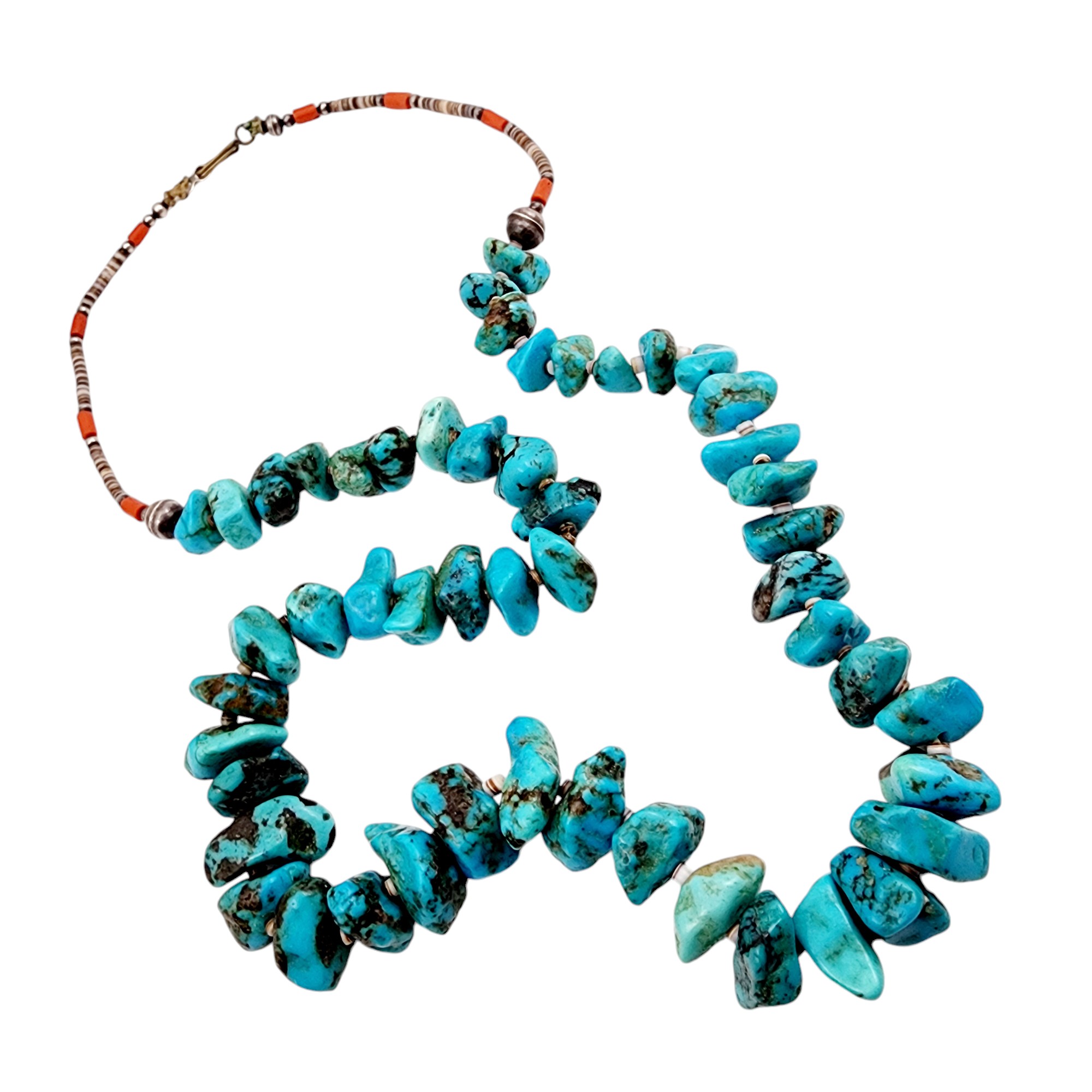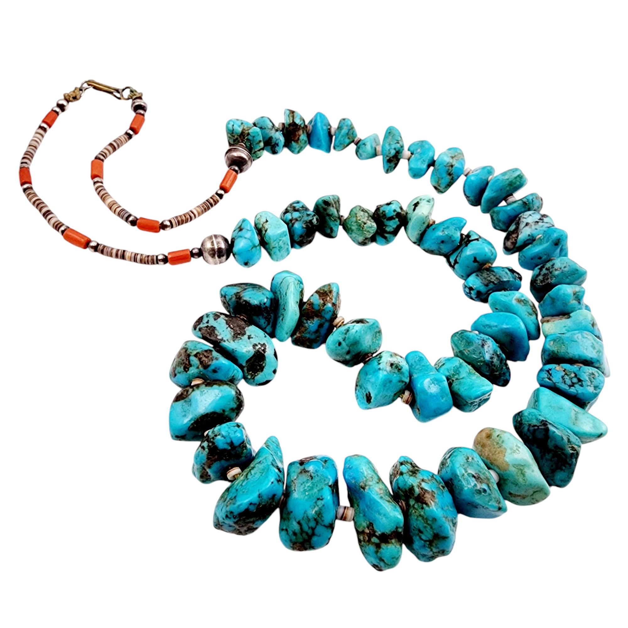 Santo Domingo Pueblo Sterling Turquoise Chunk Coral Heishe Bead Necklace 92.5g