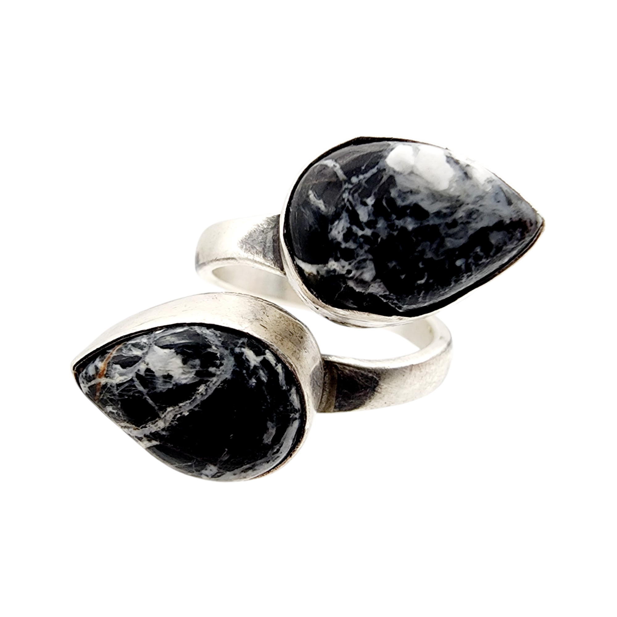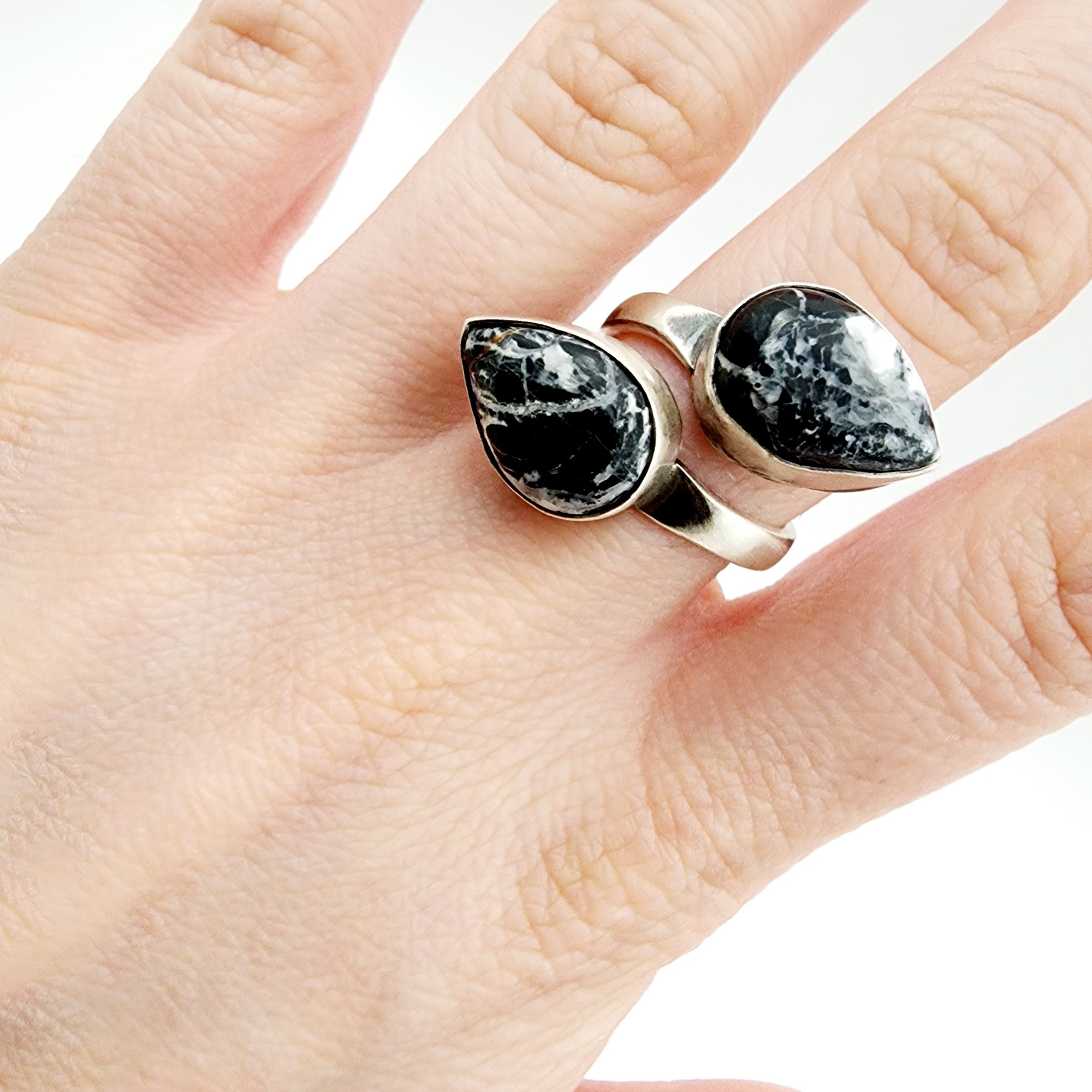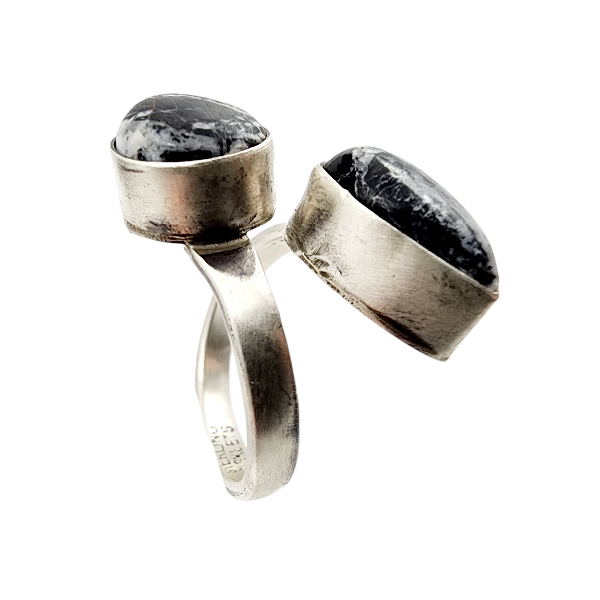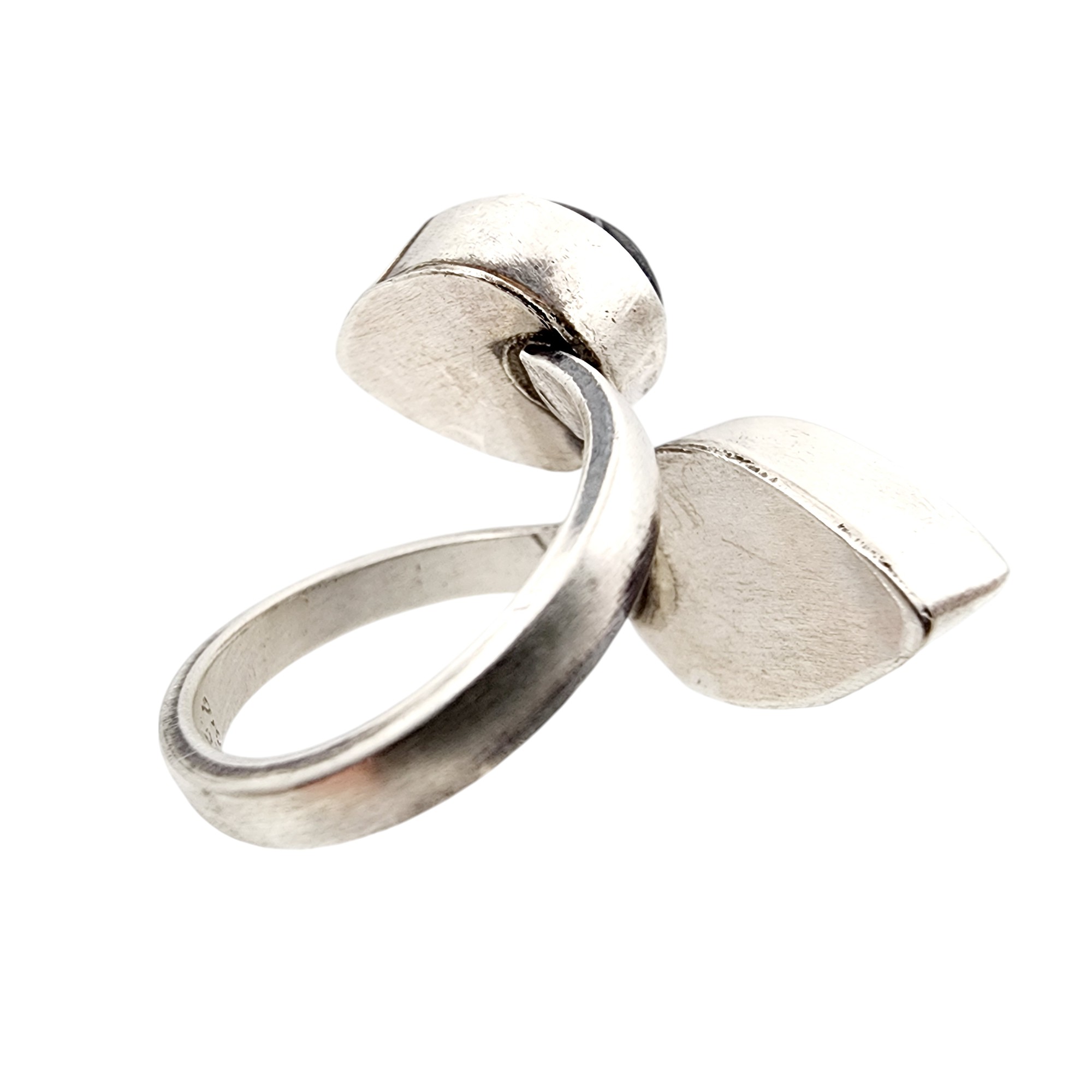 Bessie Skeets Navajo Sterling White Buffalo Turquoise Bypass Ring Adjustable 7.3g