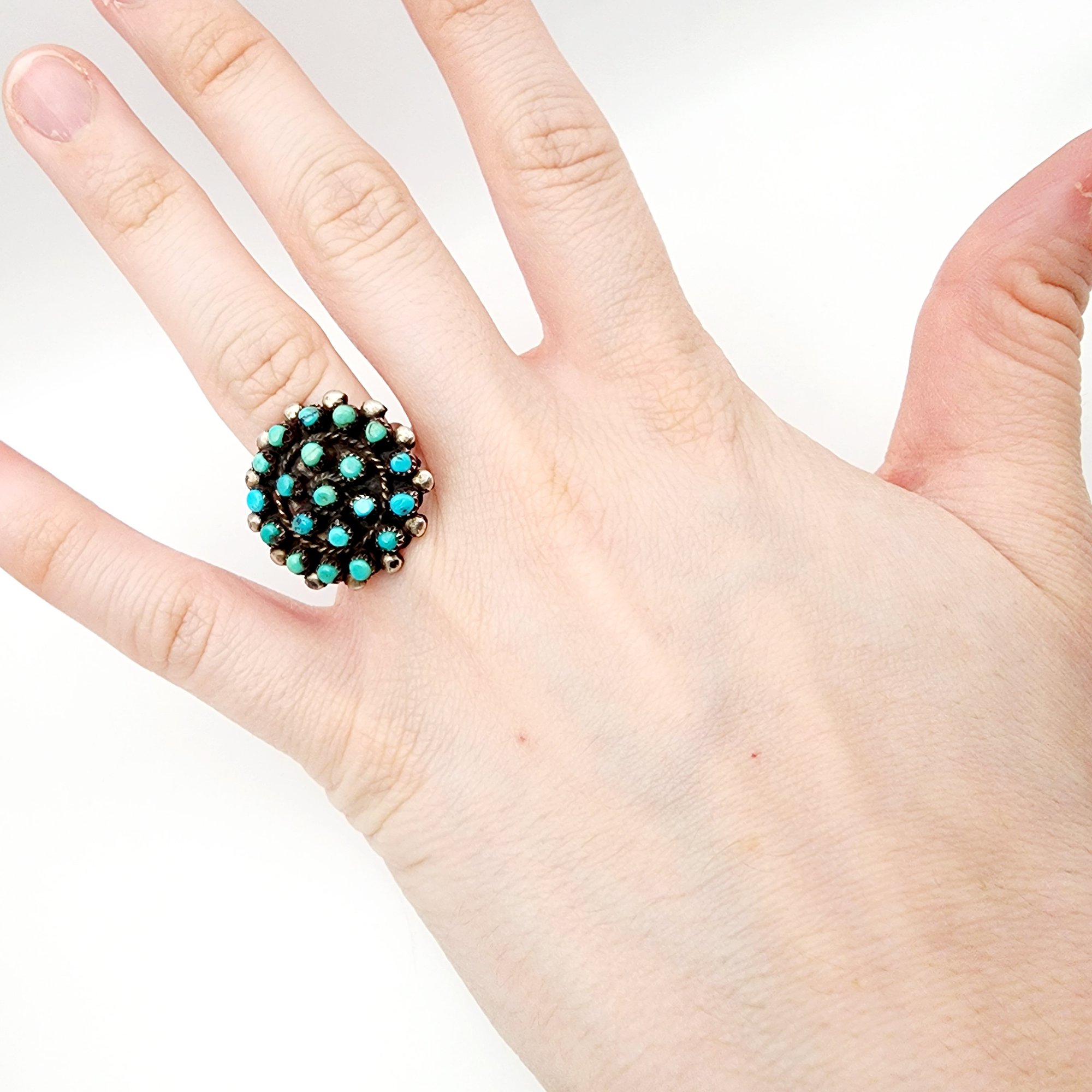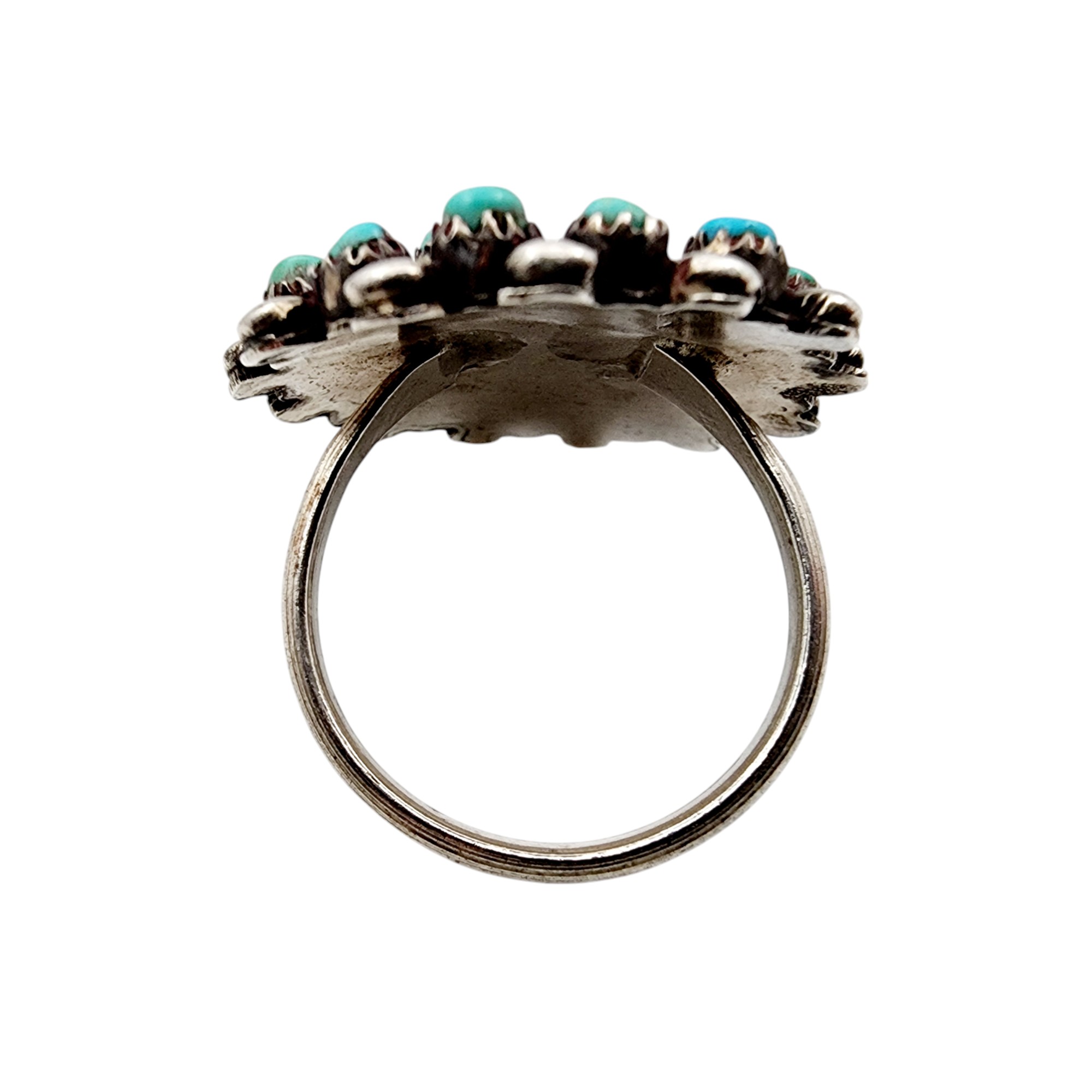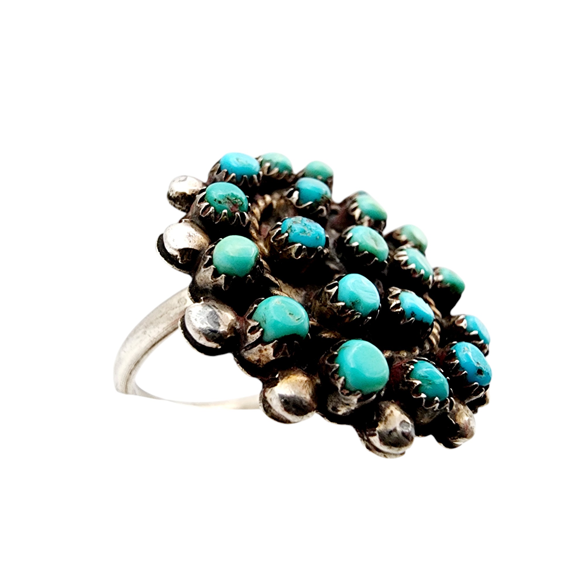 Vintage Zuni Sterling Turquoise Cluster Dome Ring Sz 8 6.3g