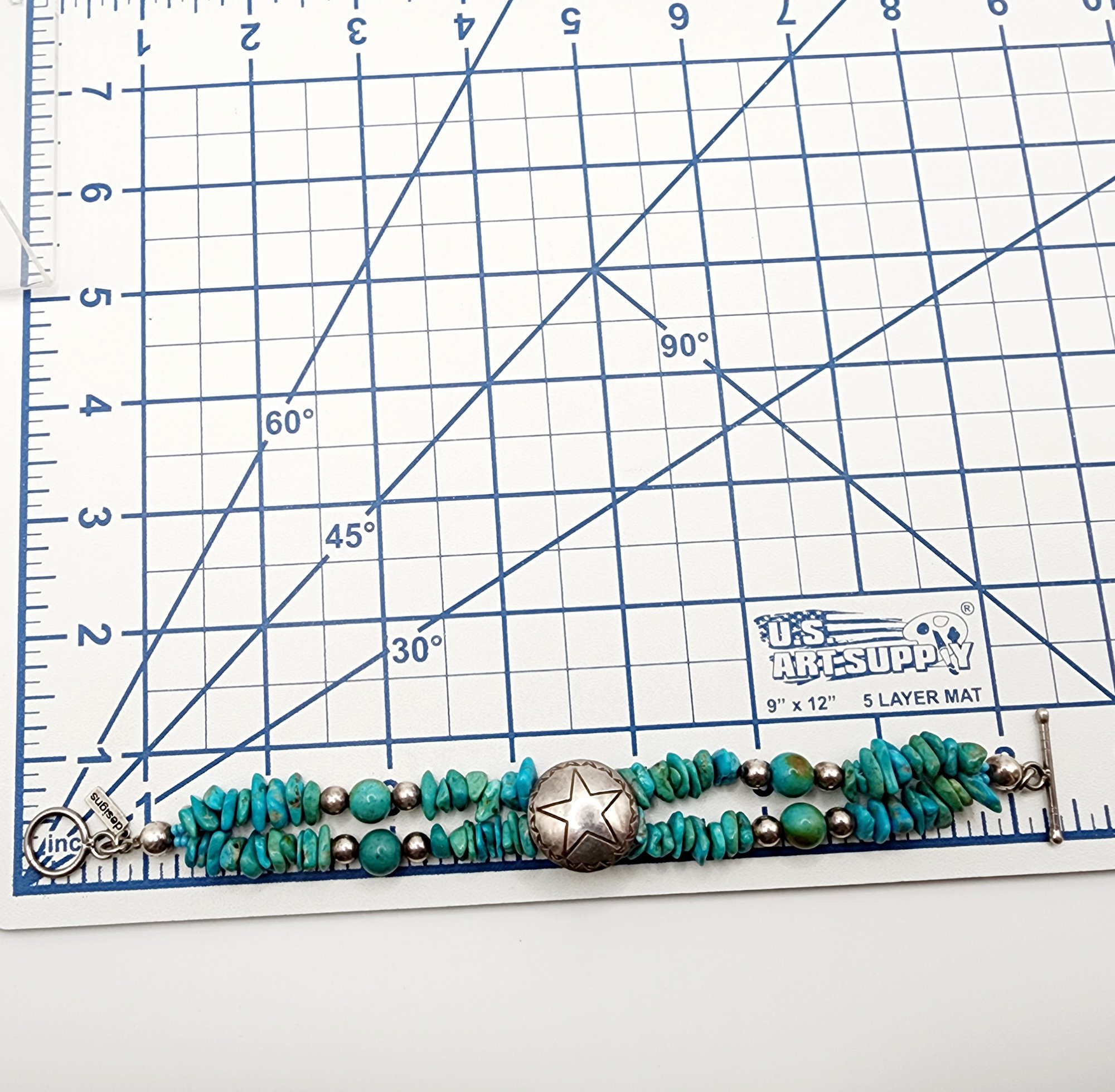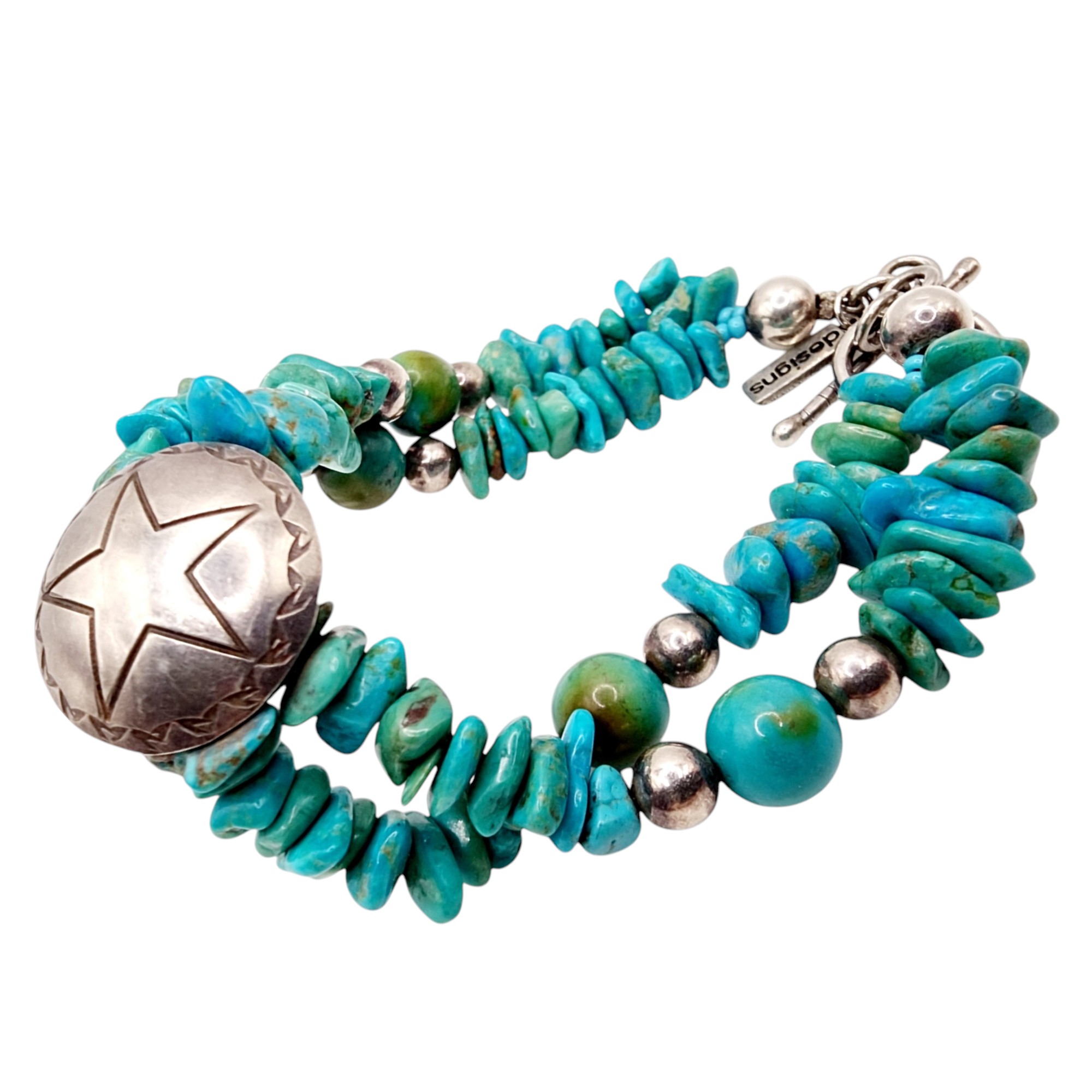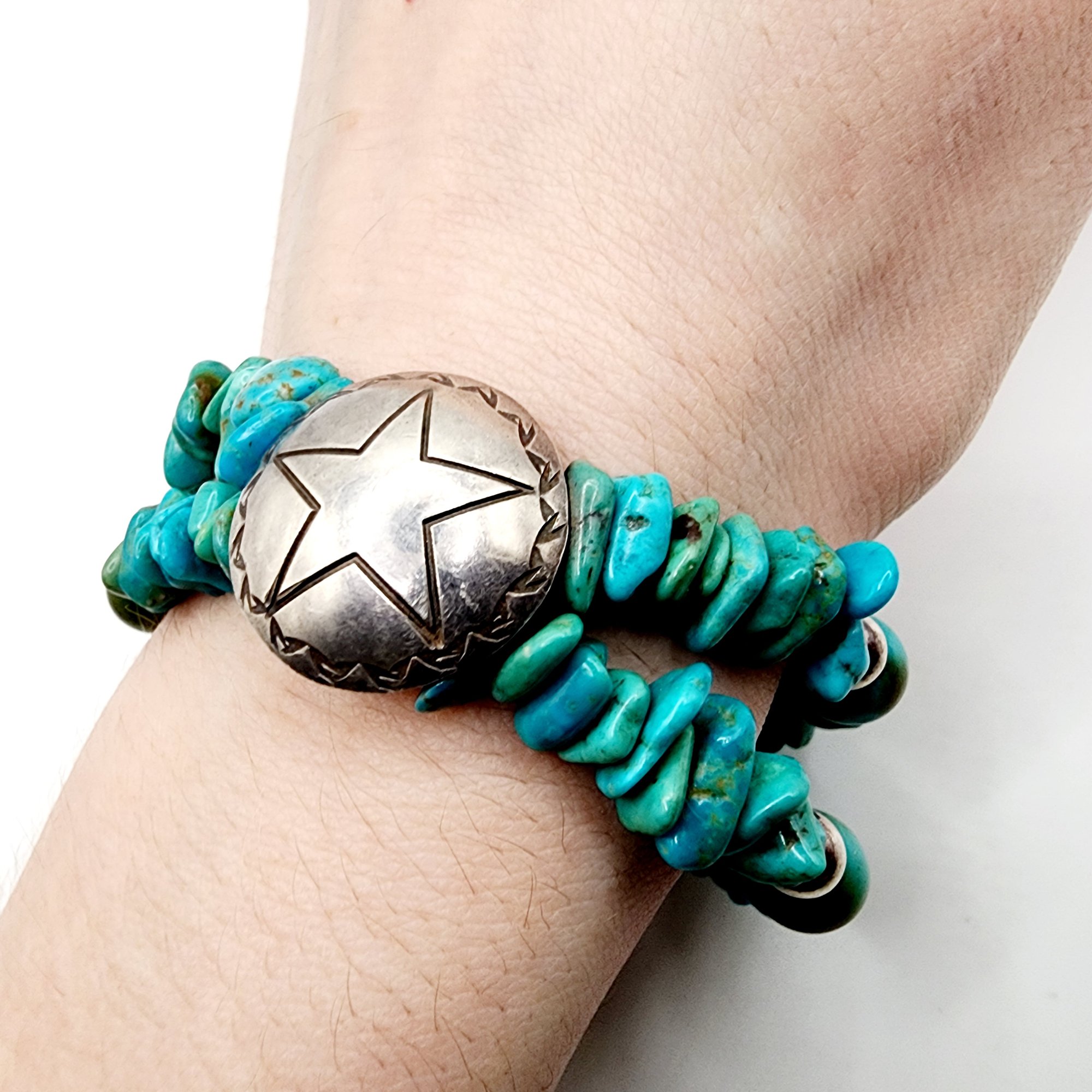 Paige Wallace Southwest Anglo Sterling Turquoise Chunk Concho Bracelet 31.5g