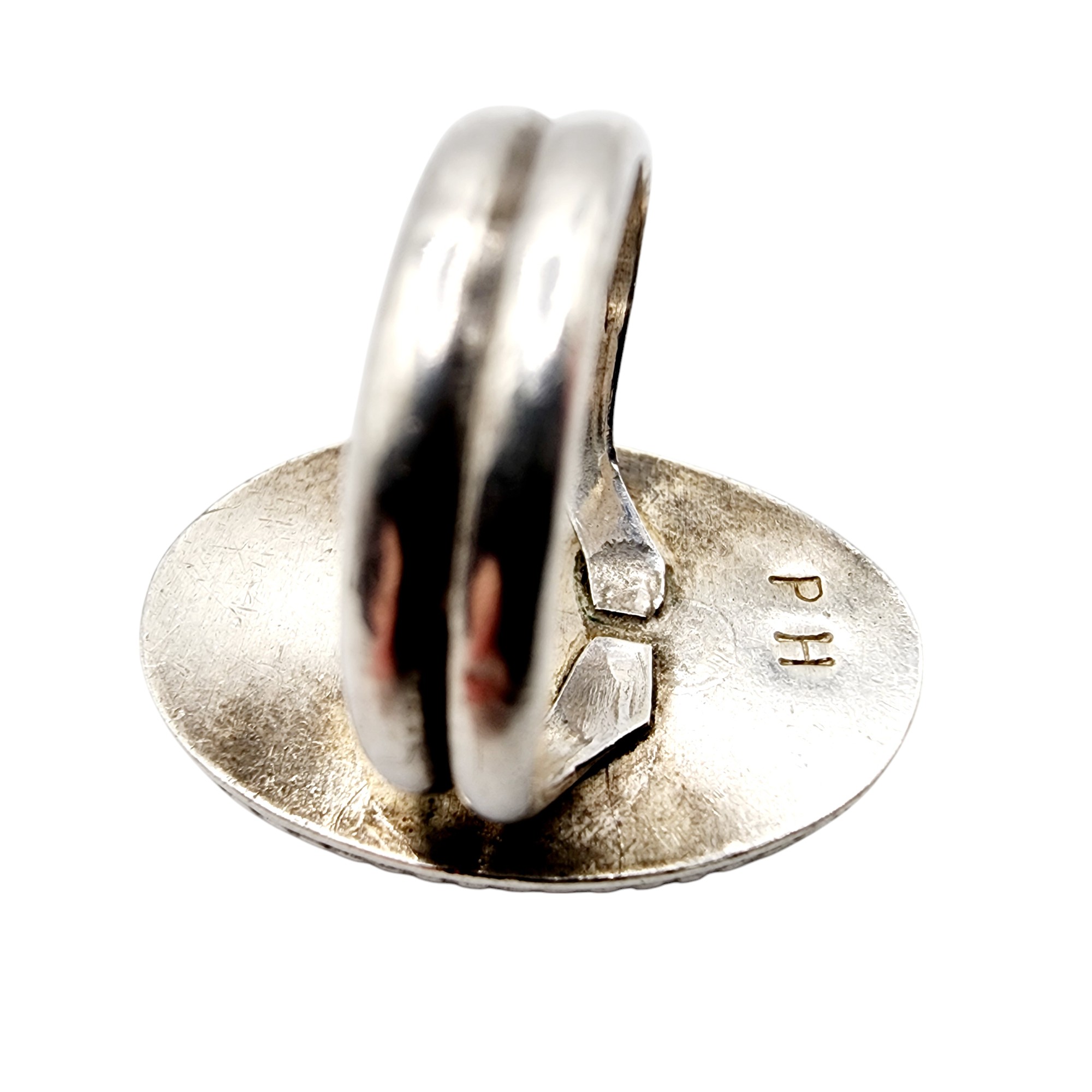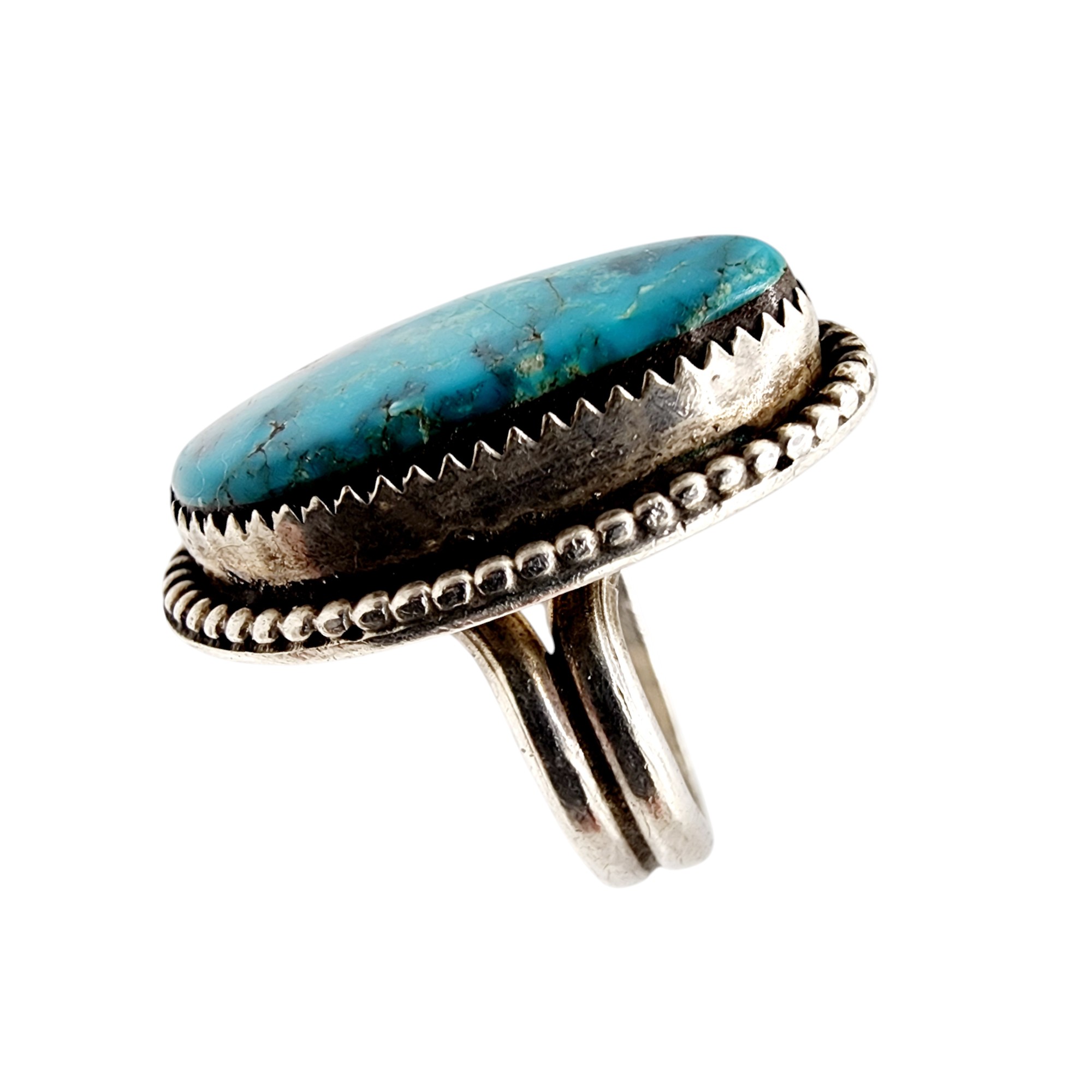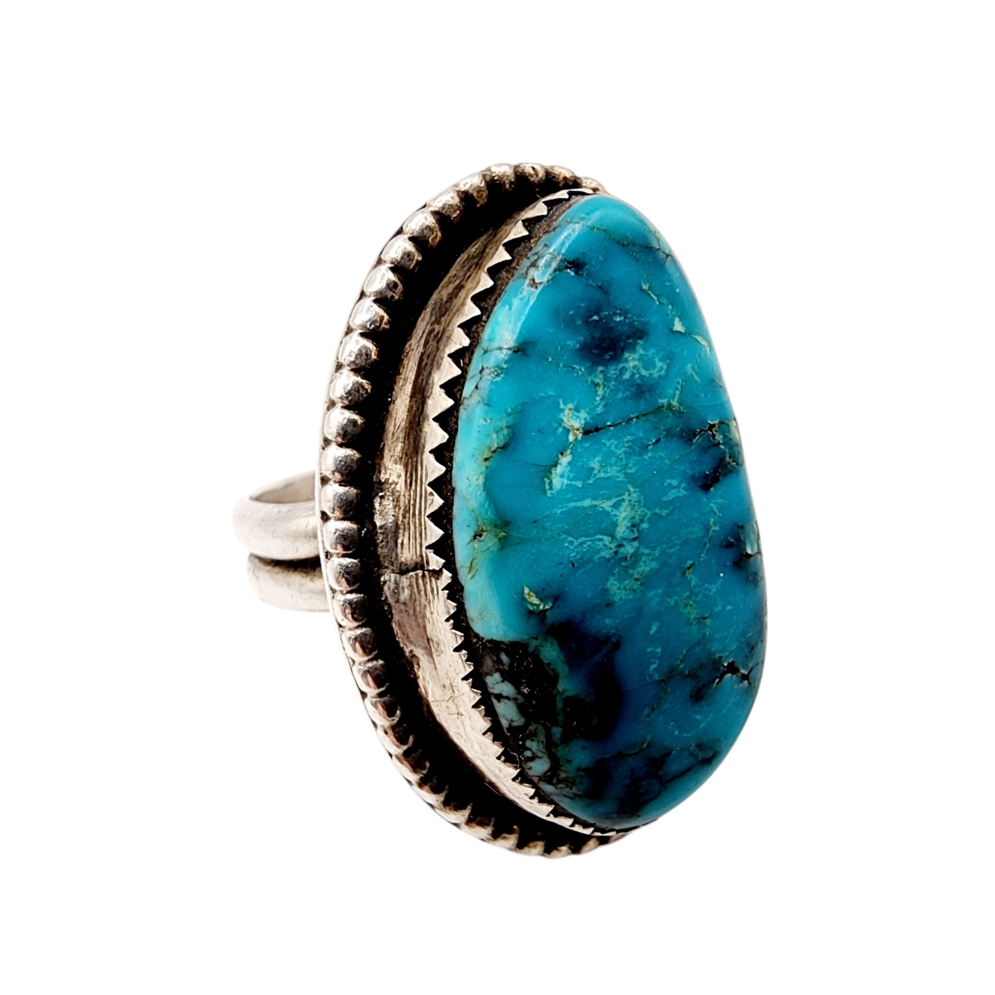 Vintage Navajo Signed ‘PH’ Big Sterling Turquoise Ring Sz 8 10.5g