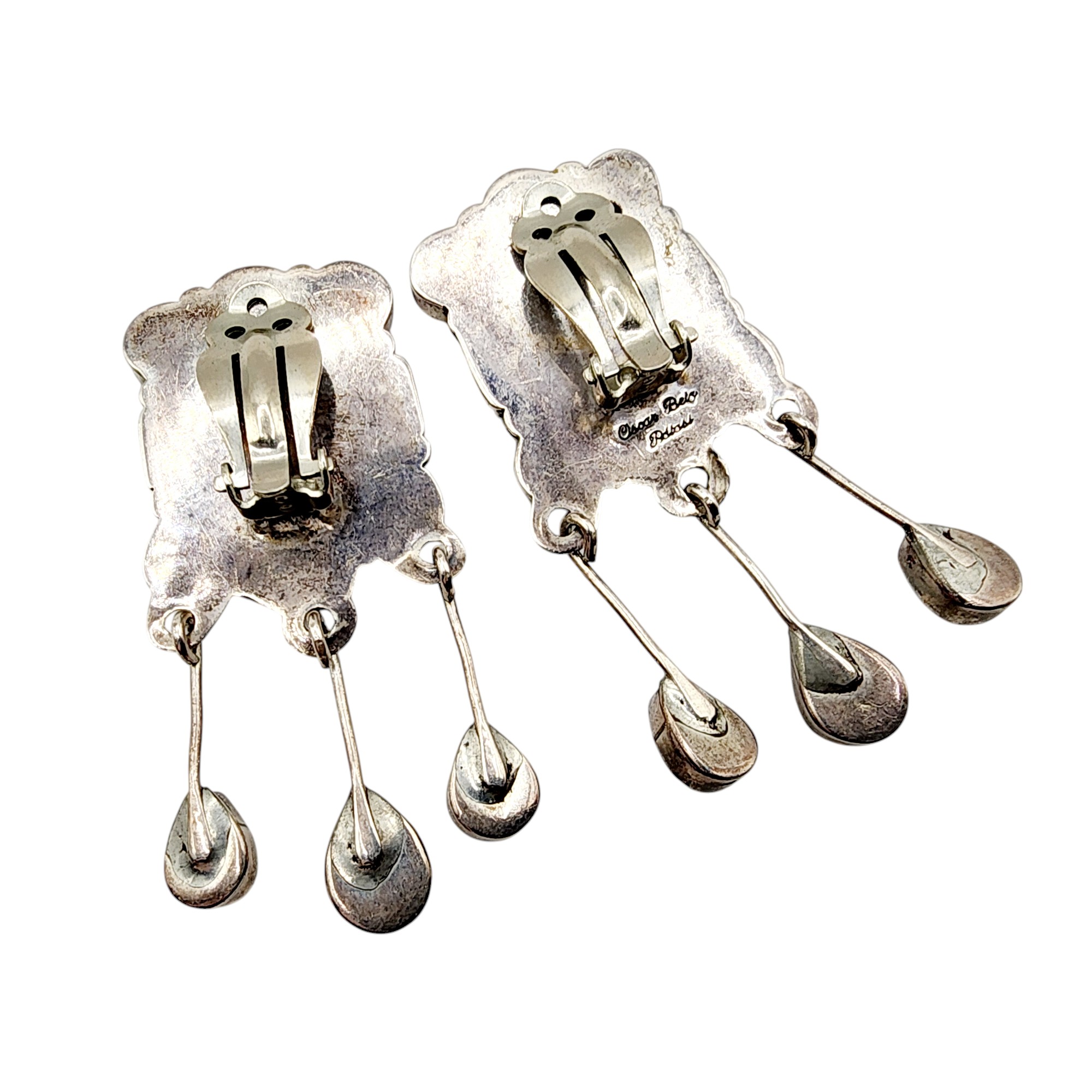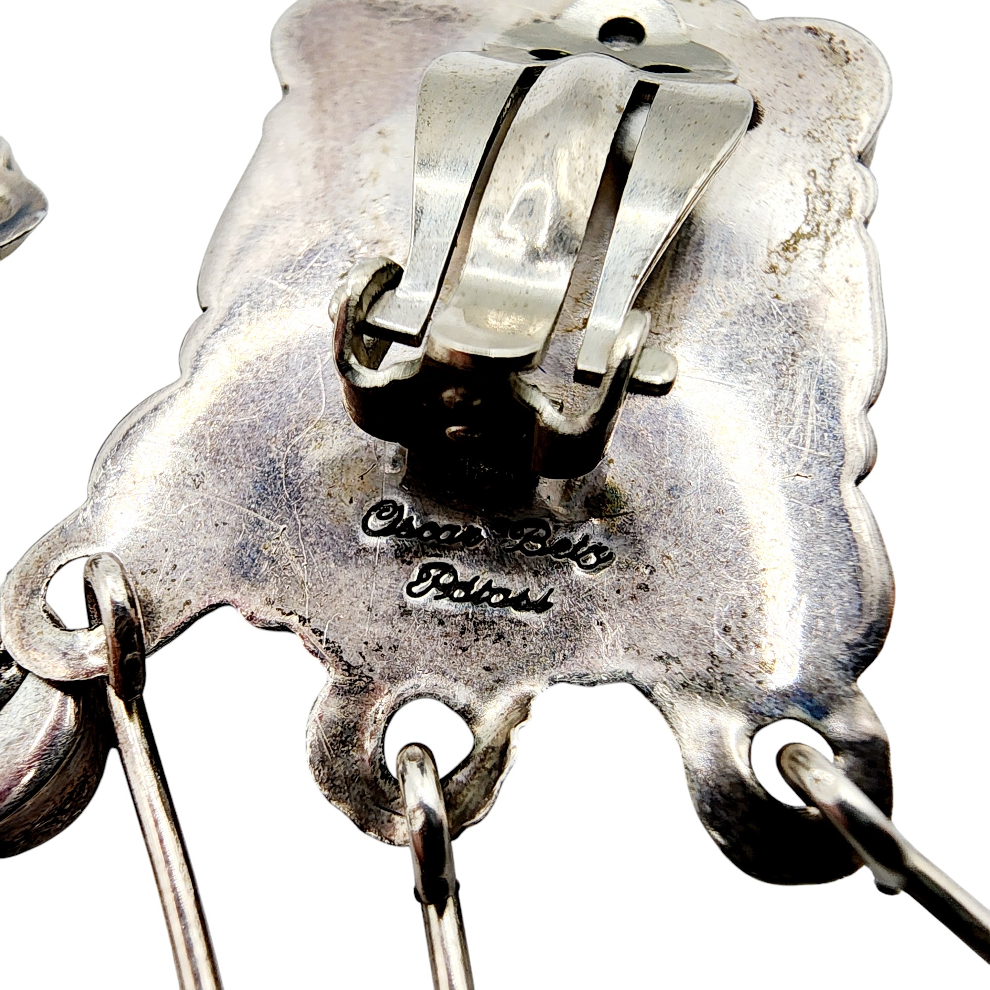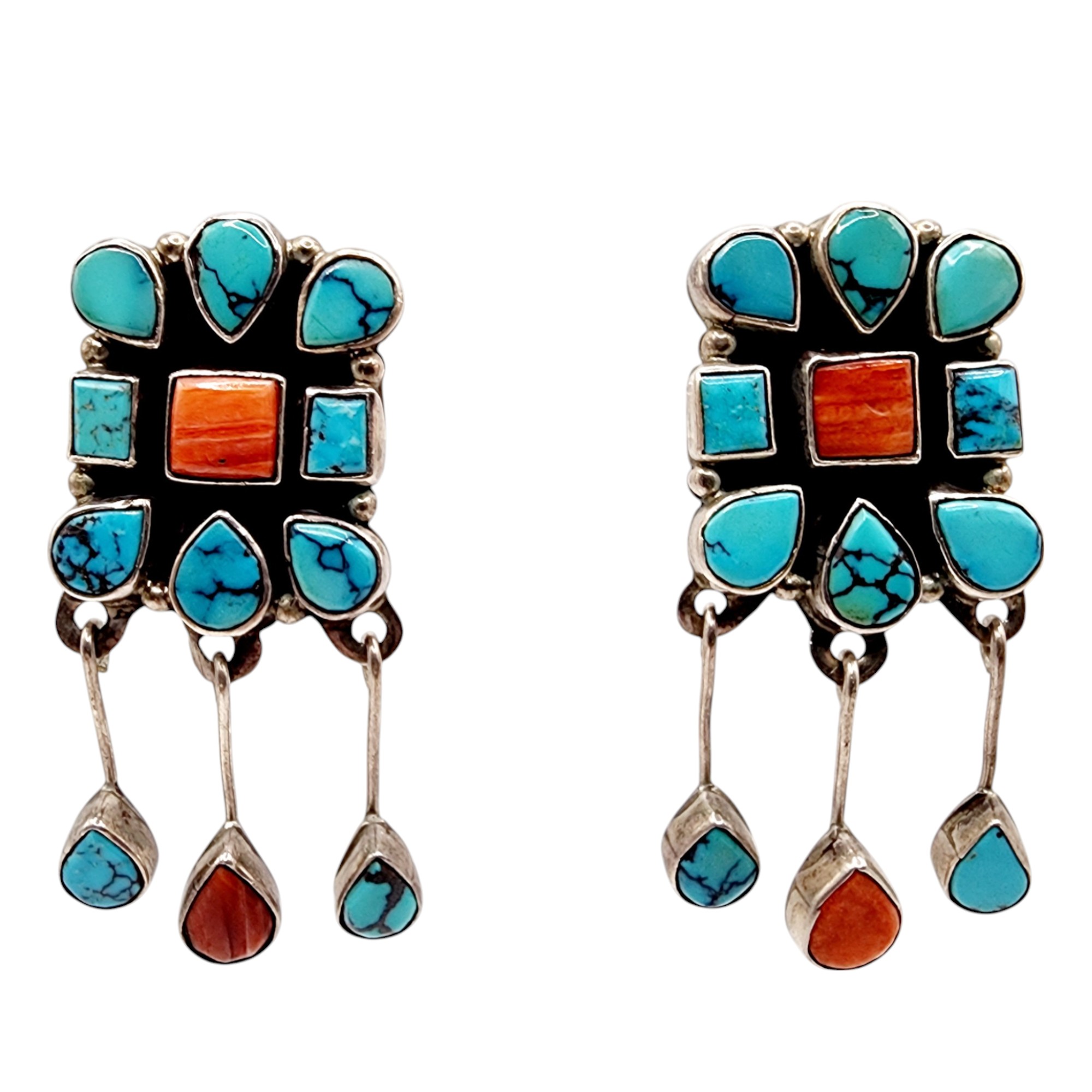 Vintage Oscar Betz Rare Incredible Sterling Turquoise Spiny Oyster Cluster Dangle Earrings 20.5g