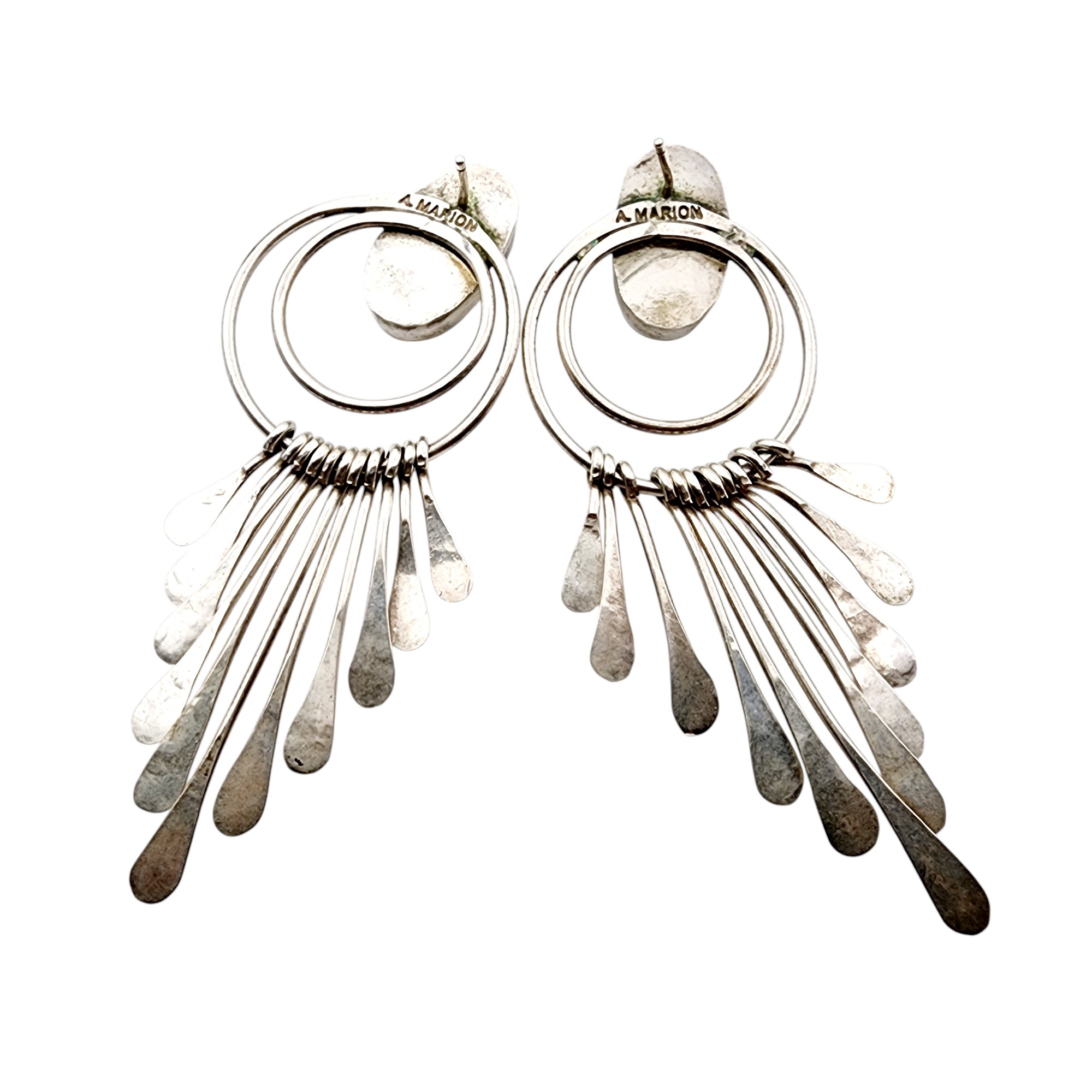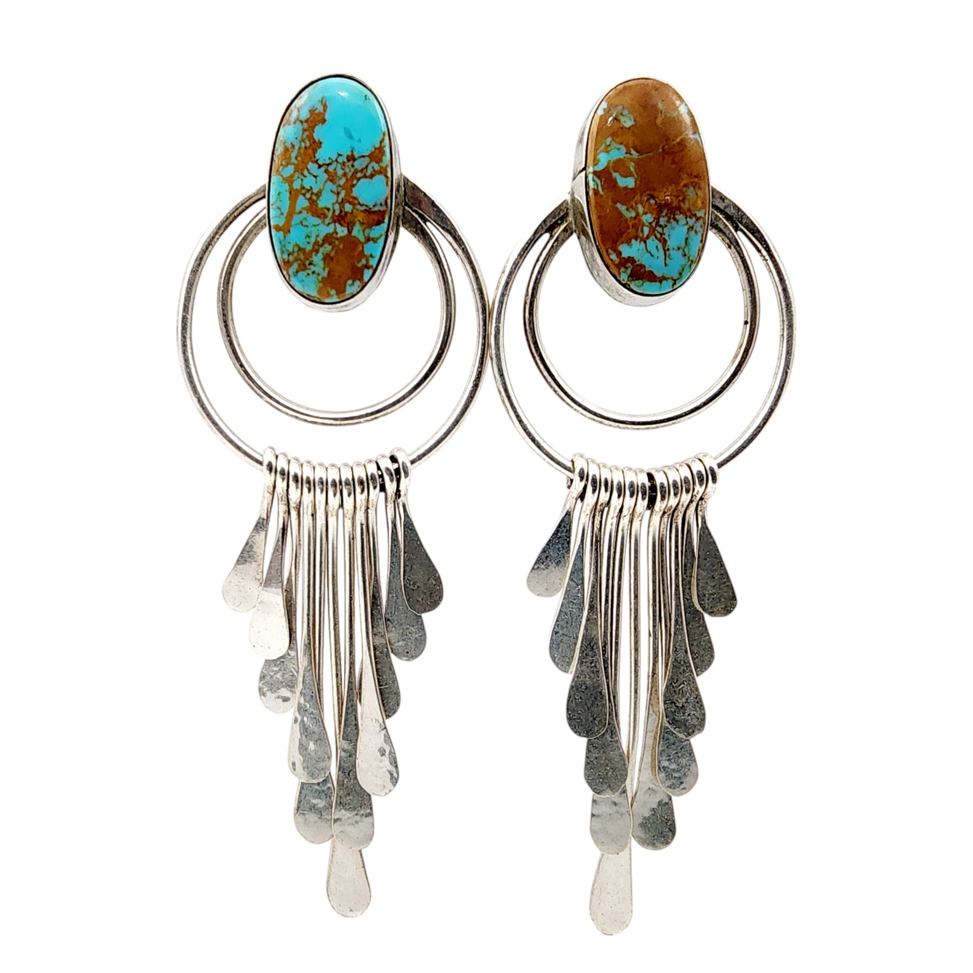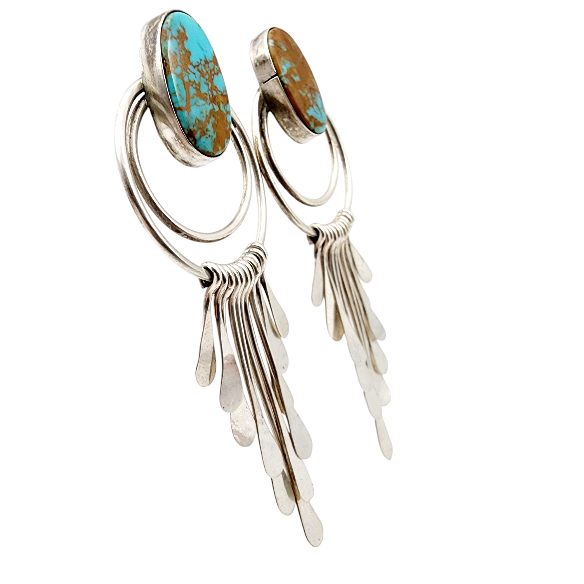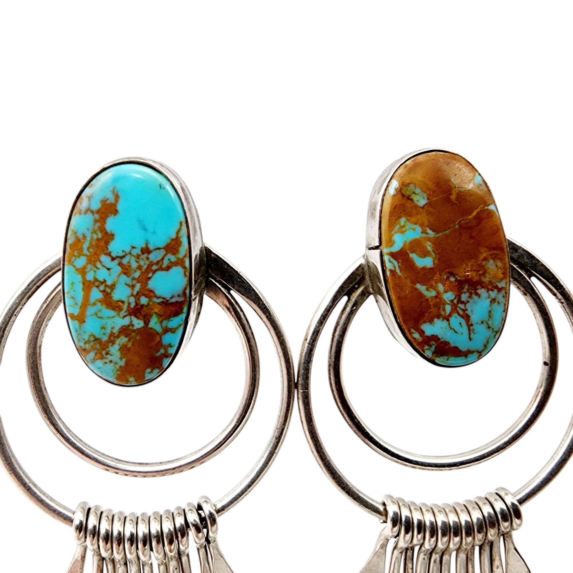 Andy Marion Navajo Sterling Turquoise Fringe Earrings 12.3g