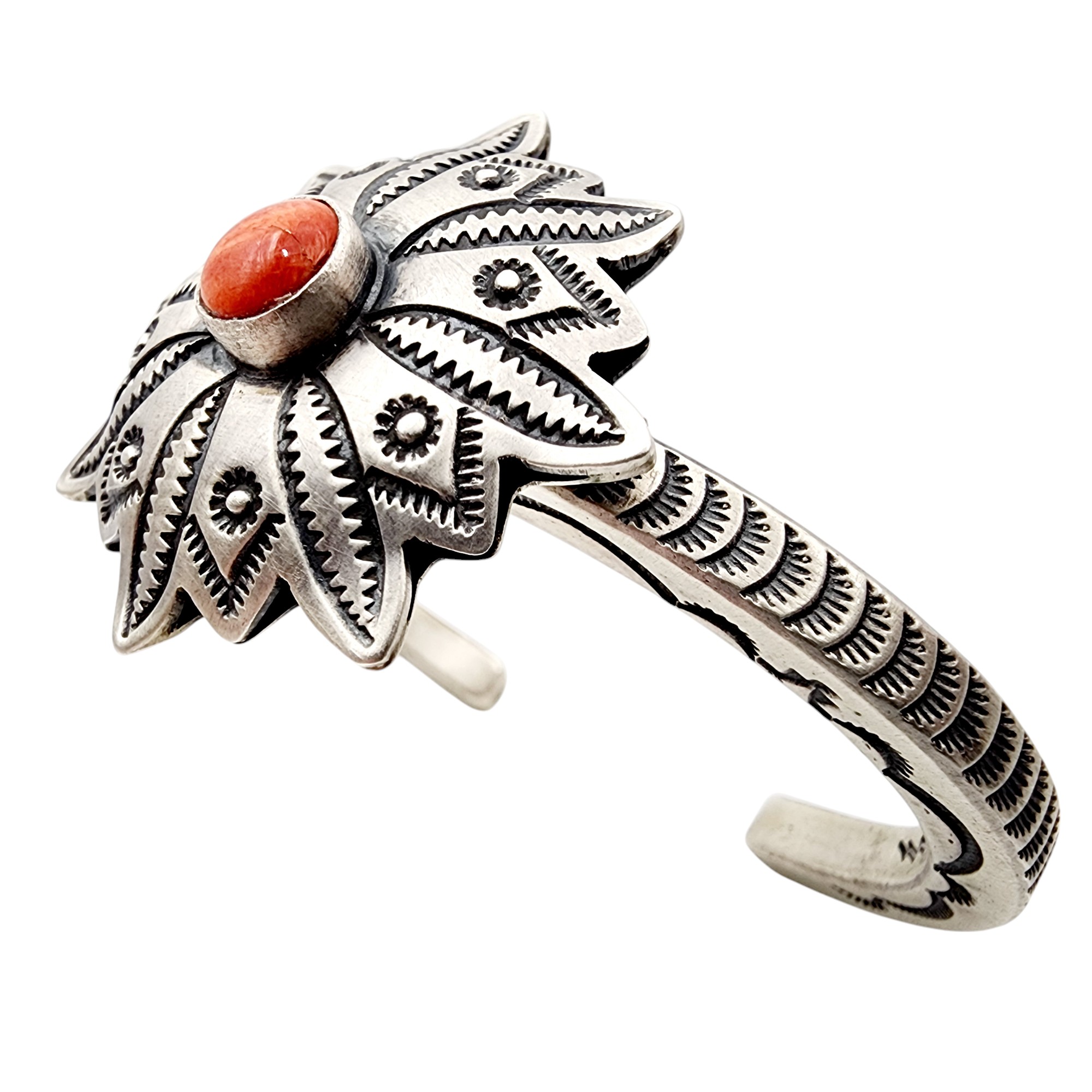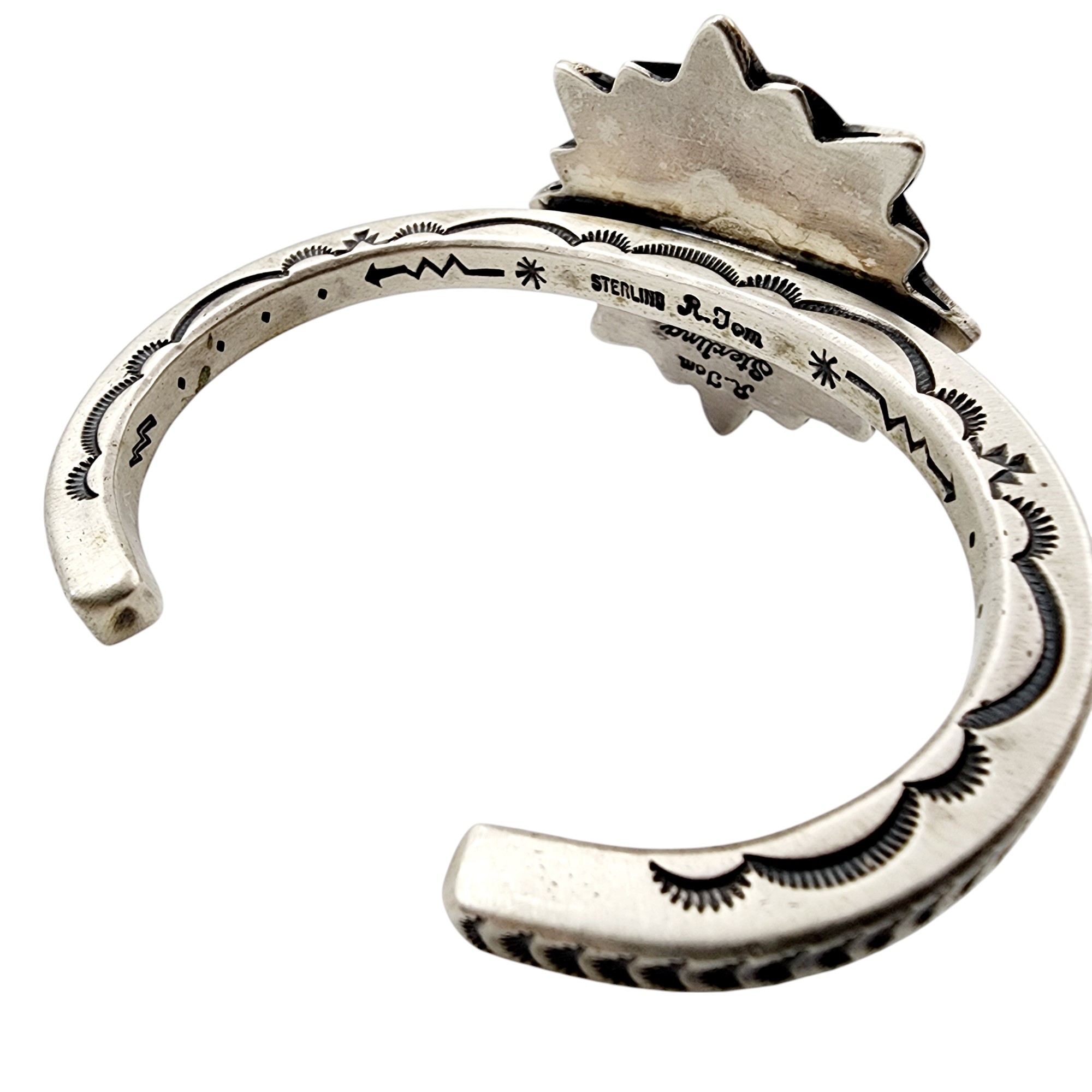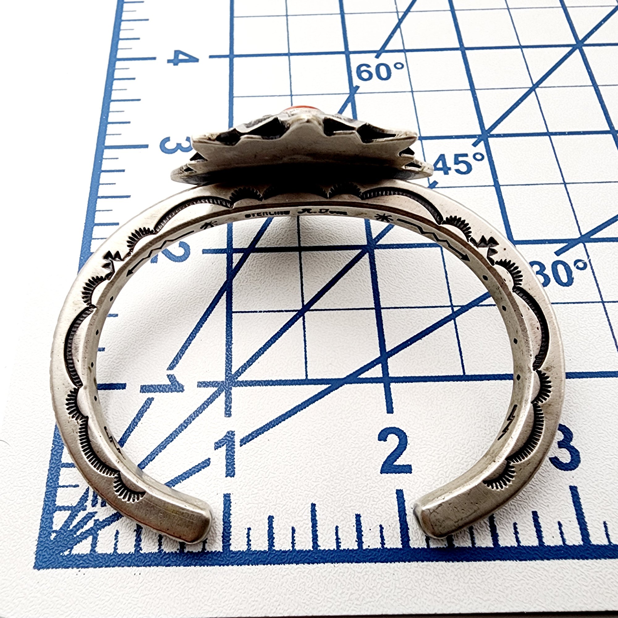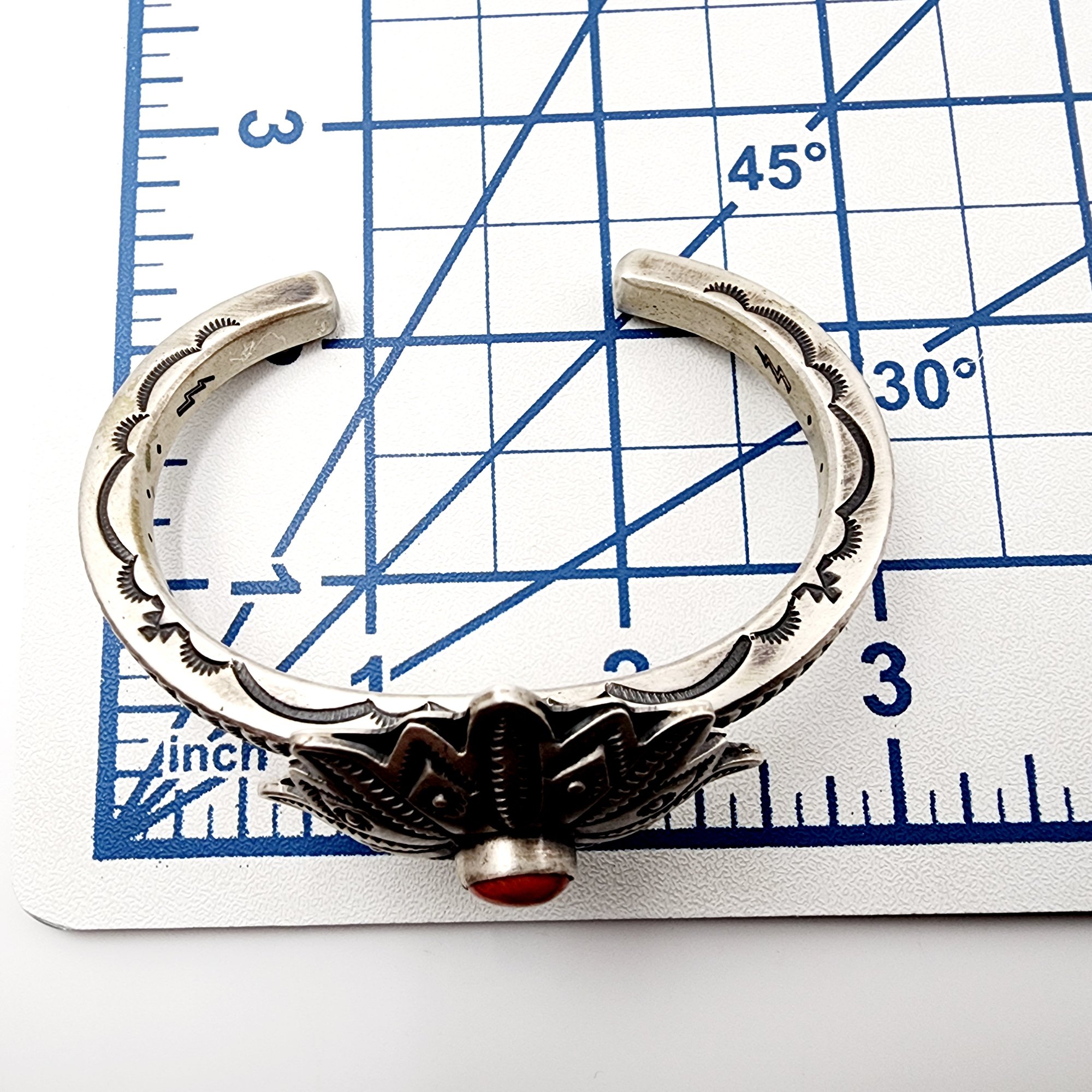 Beautiful Ronald Tom Navajo Coral Stamped Heavy Gauge Sterling Cuff Bracelet 60.8g