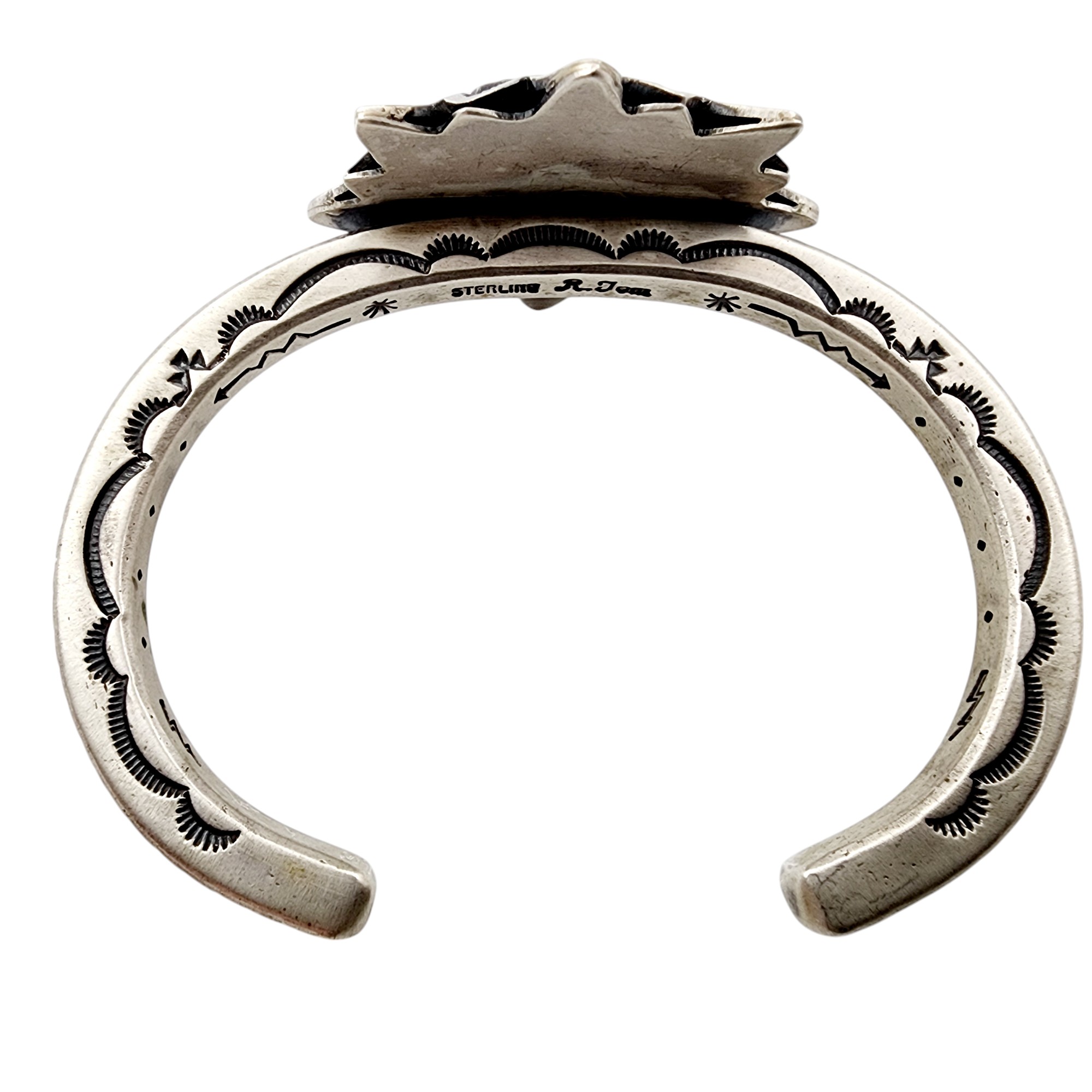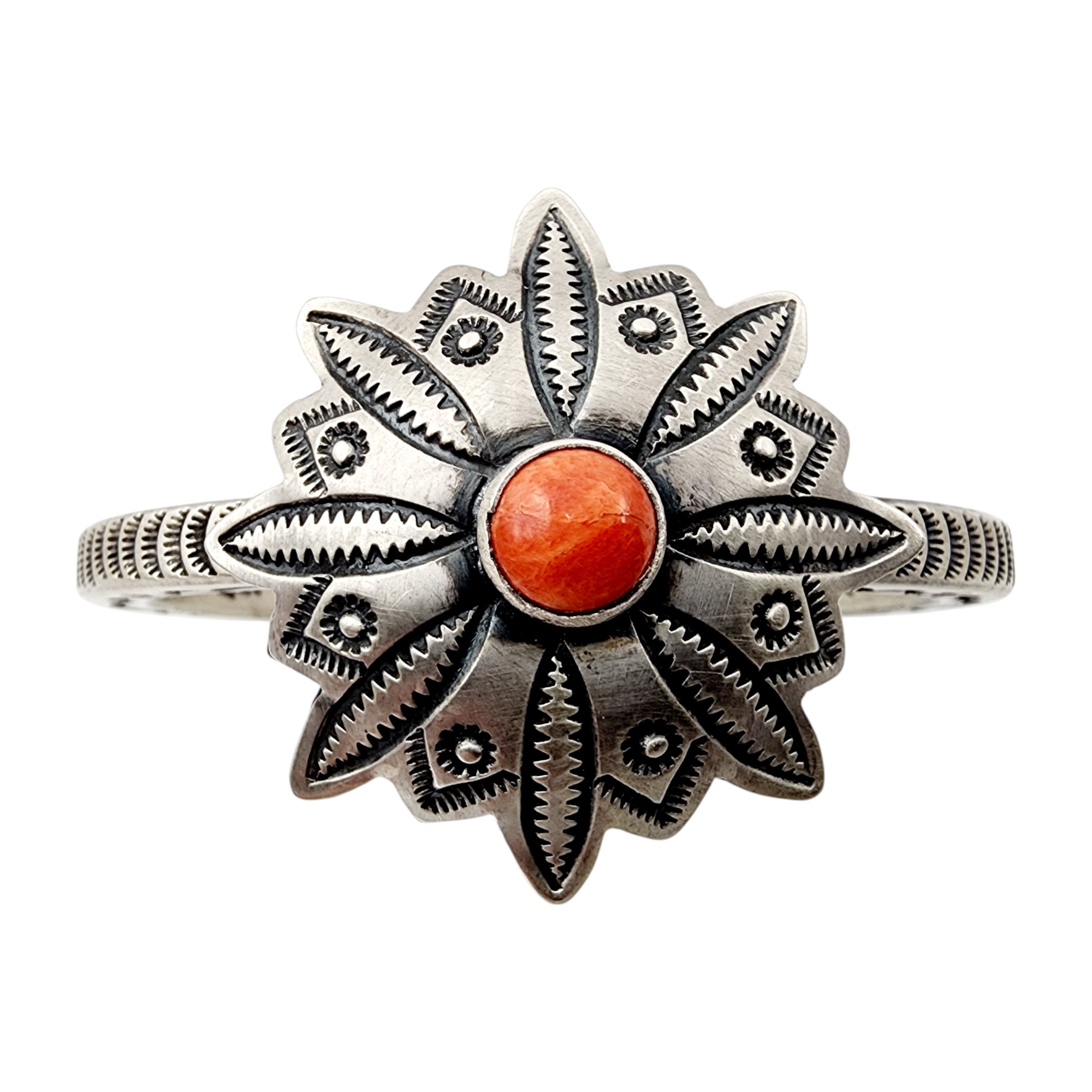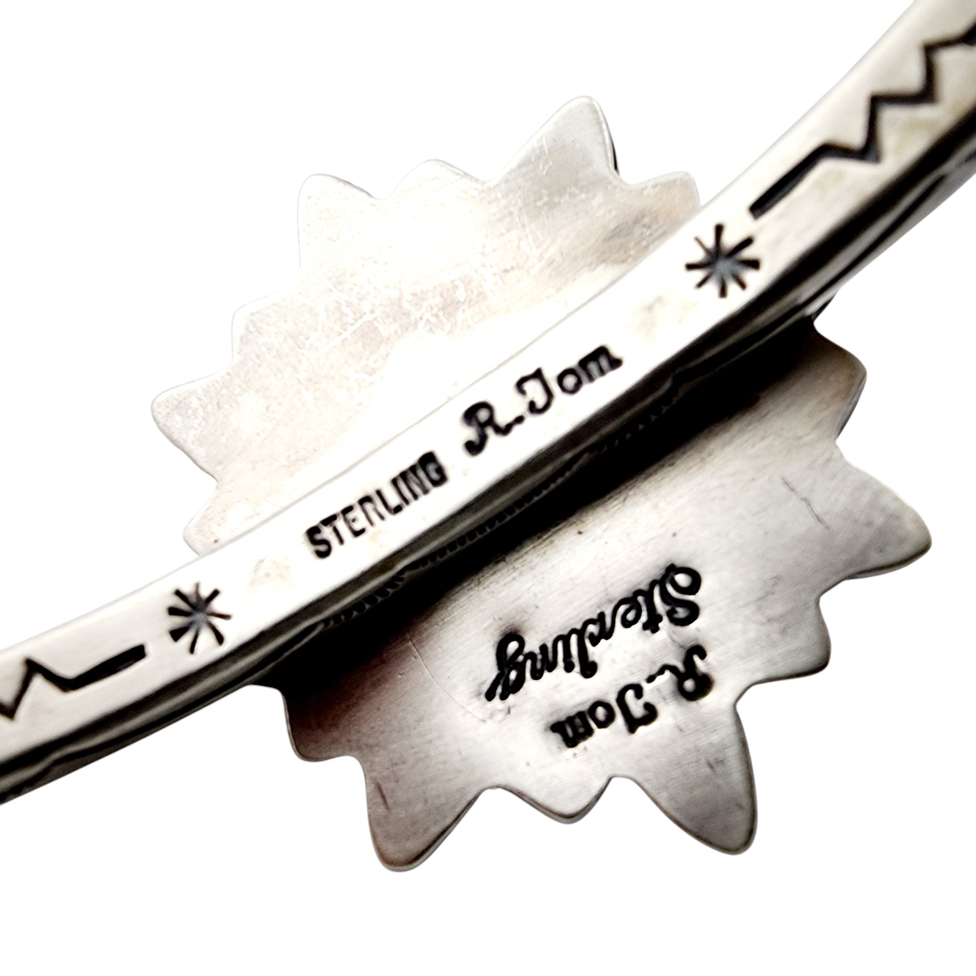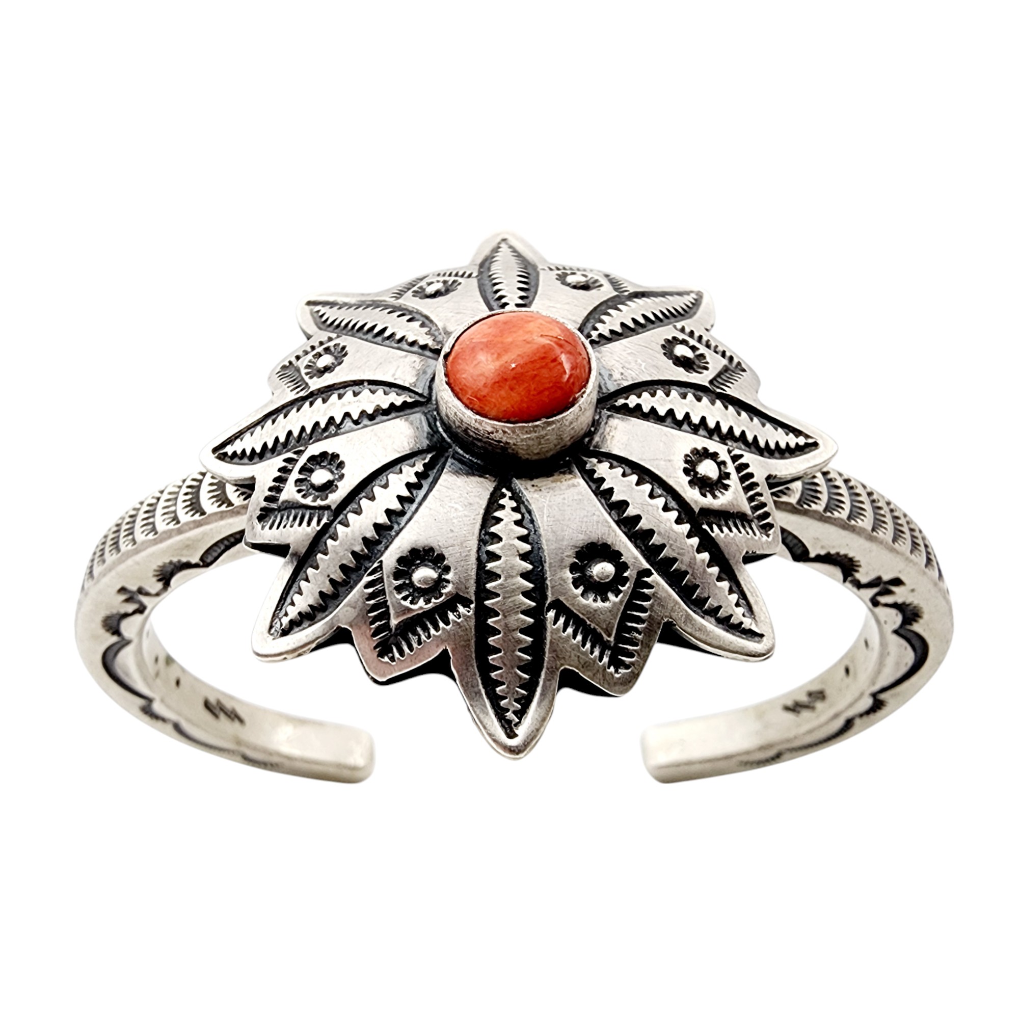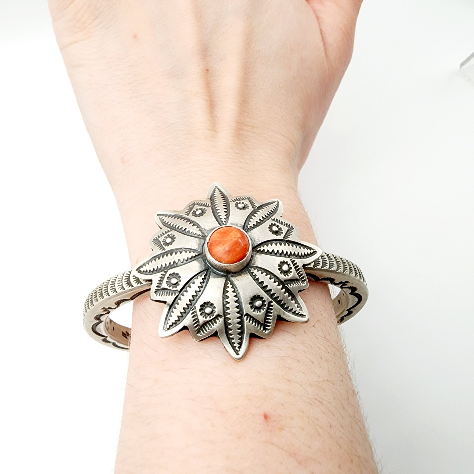 Beautiful Ronald Tom Navajo Coral Stamped Heavy Gauge Sterling Cuff Bracelet 60.8g