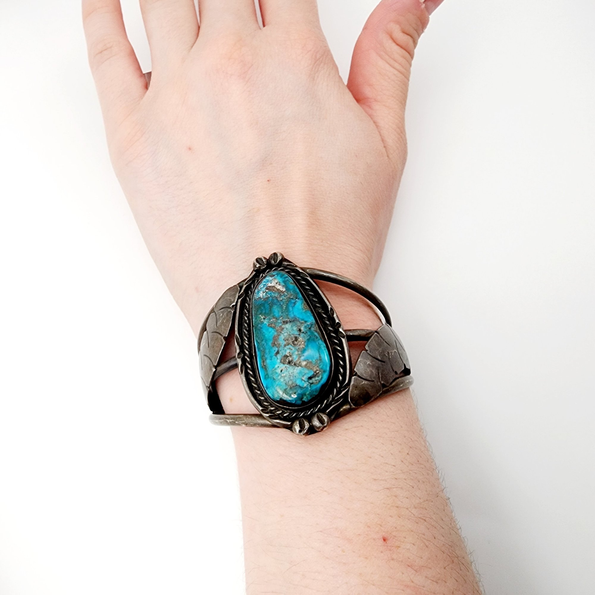 Vintage Roger Skeet Navajo Sterling Turquoise Cuff 39.4g