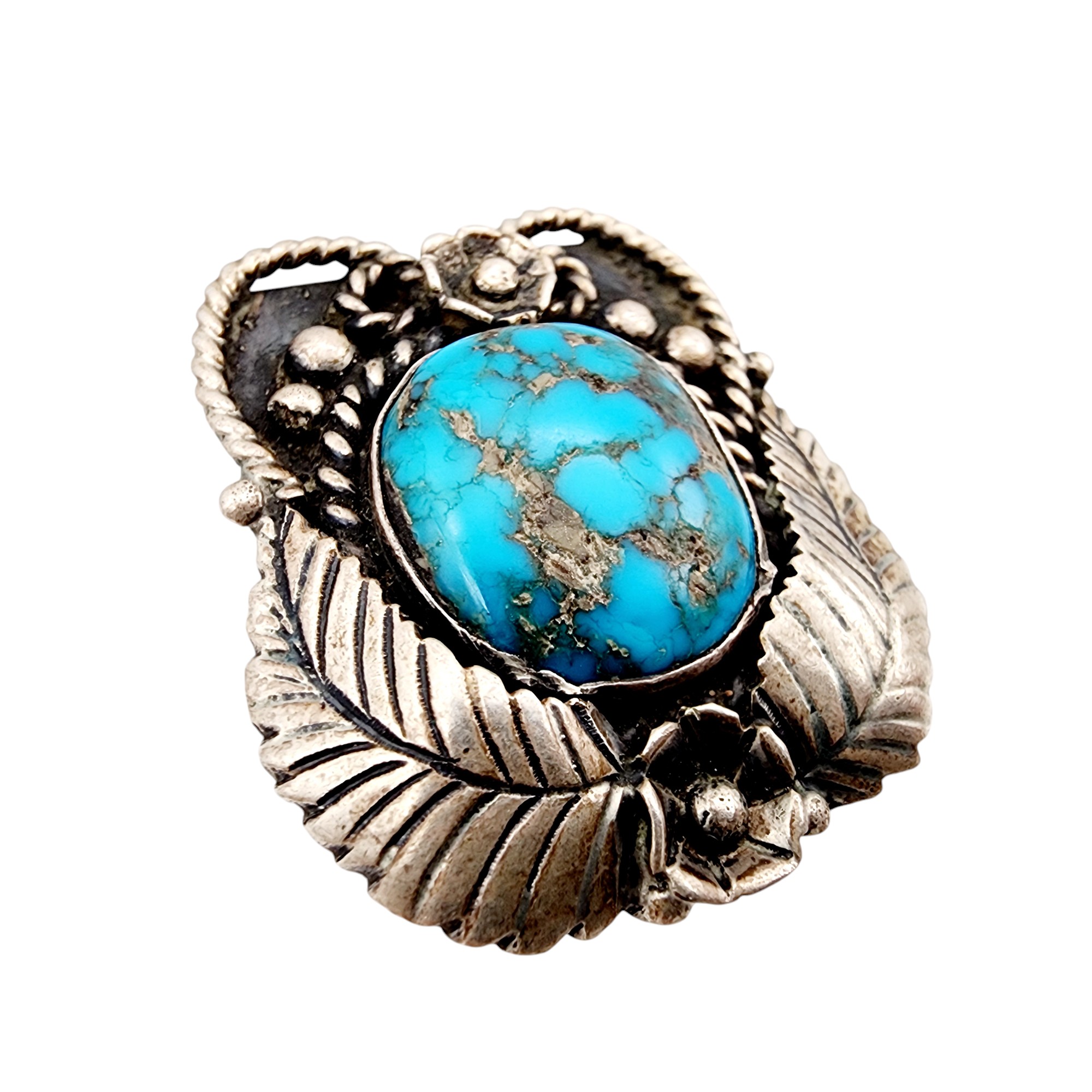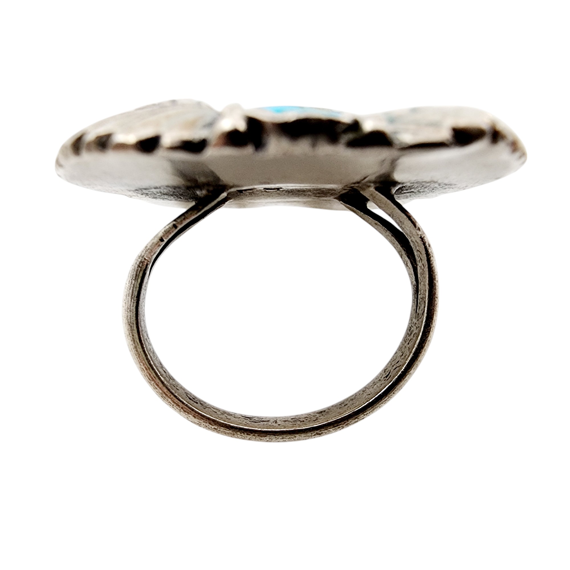 Signed ‘ES’ Navajo Sterling Turquoise Ring Sz 7.5 11.9g