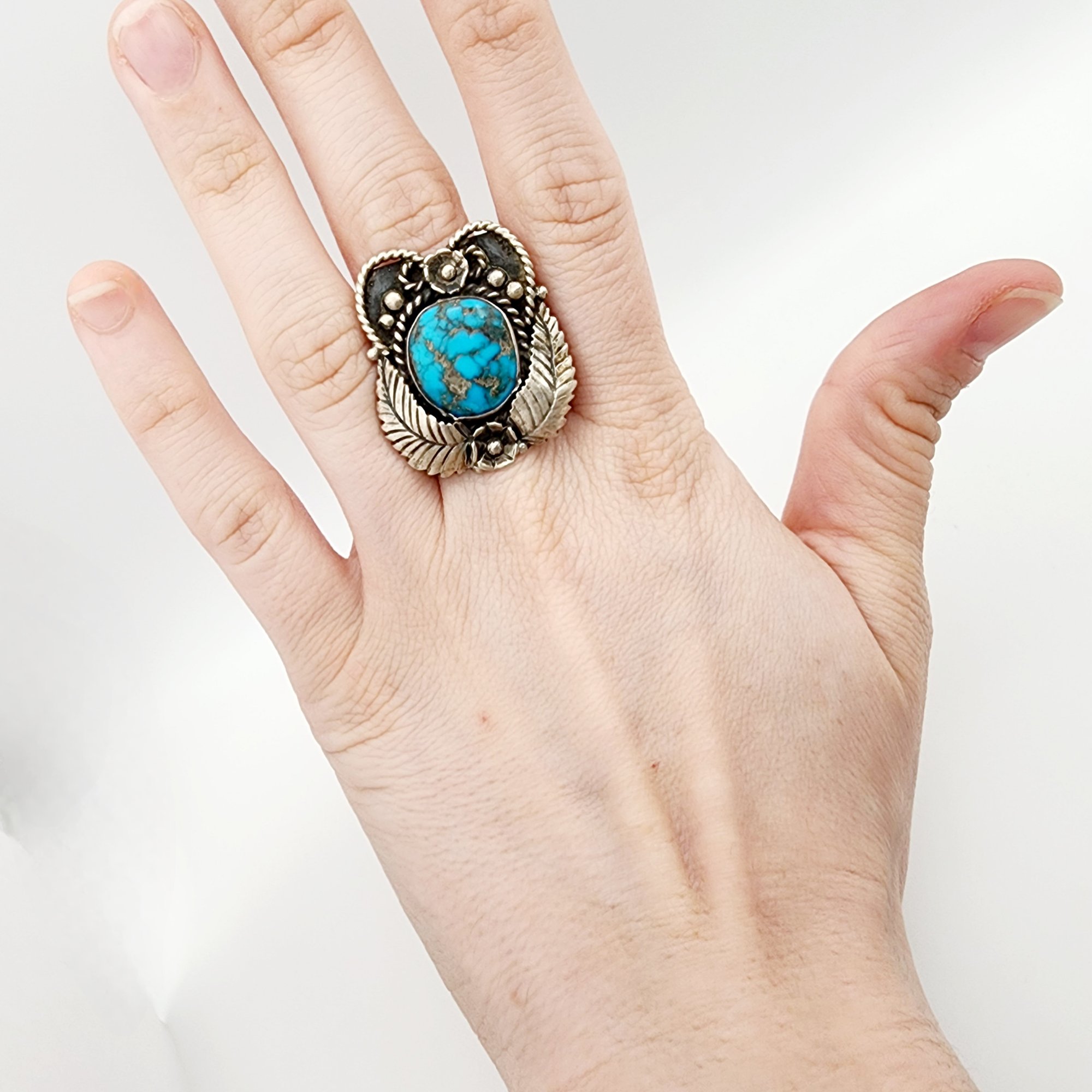 Signed 'ES' Navajo Sterling Turquoise Ring Sz 7.5 11.9g