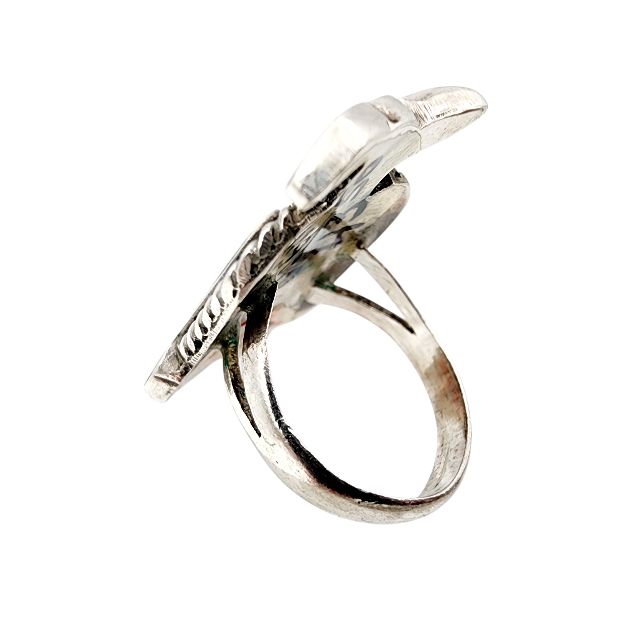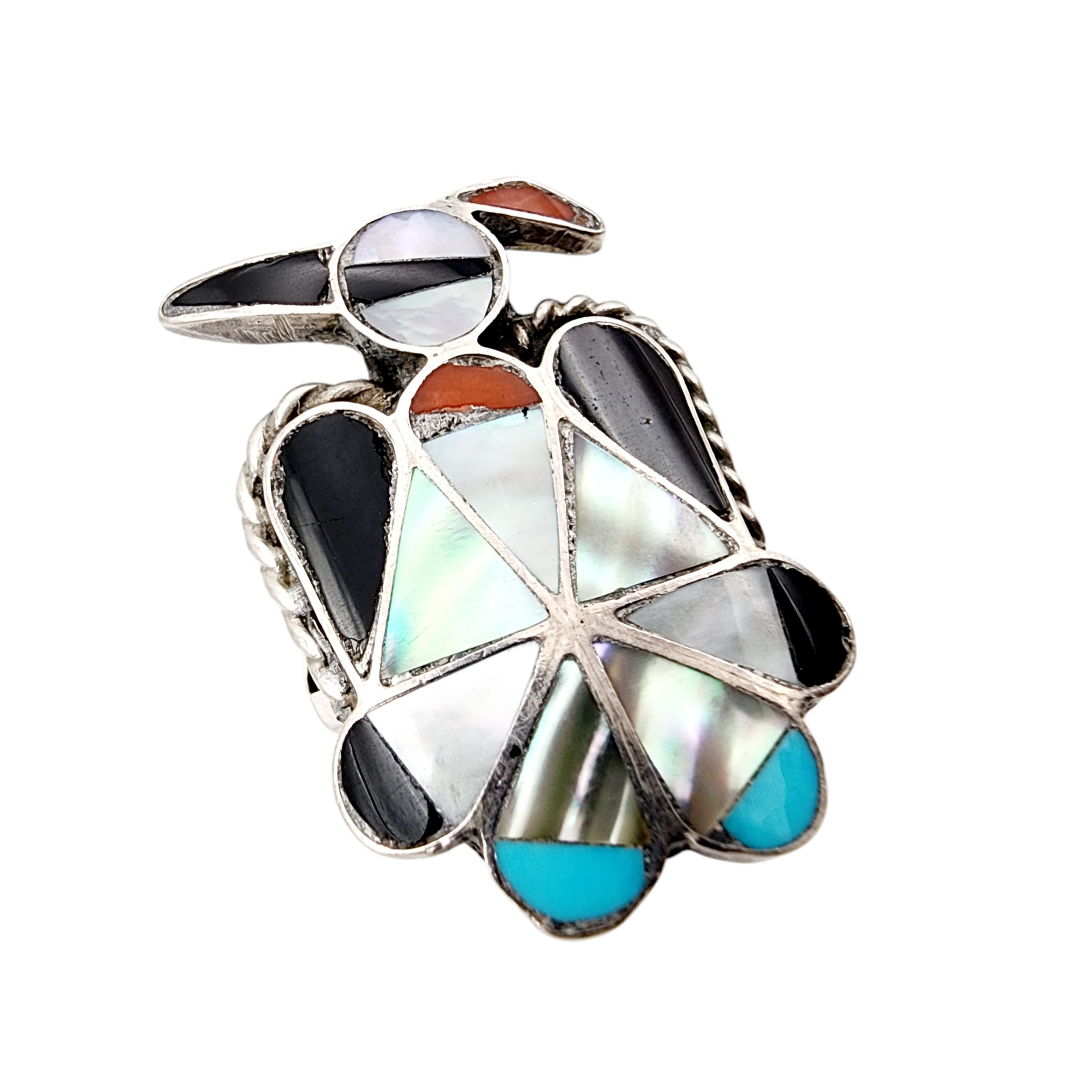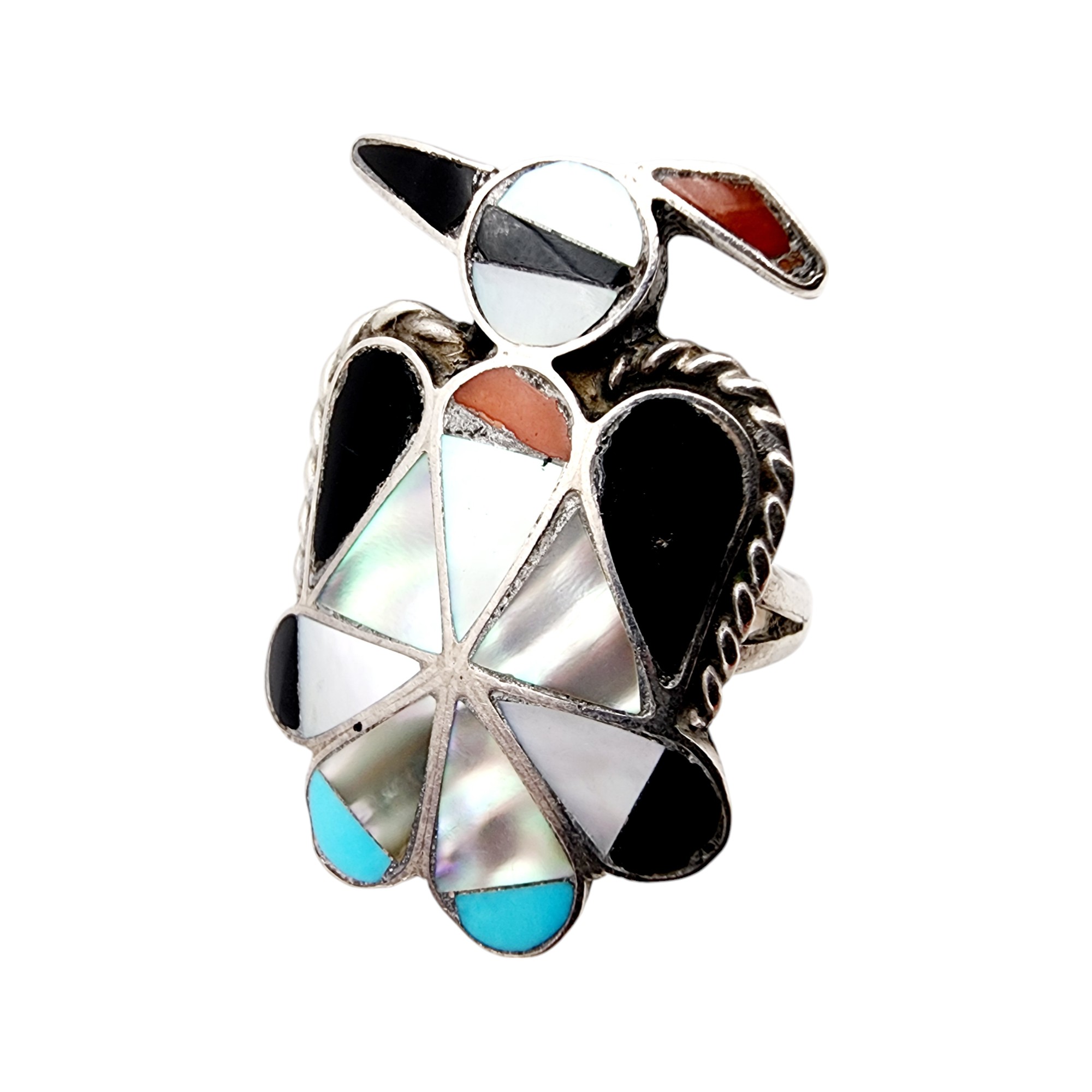 Vintage Zuni Sterling Inlay Thunderbird Ring Sz 7.5 7g