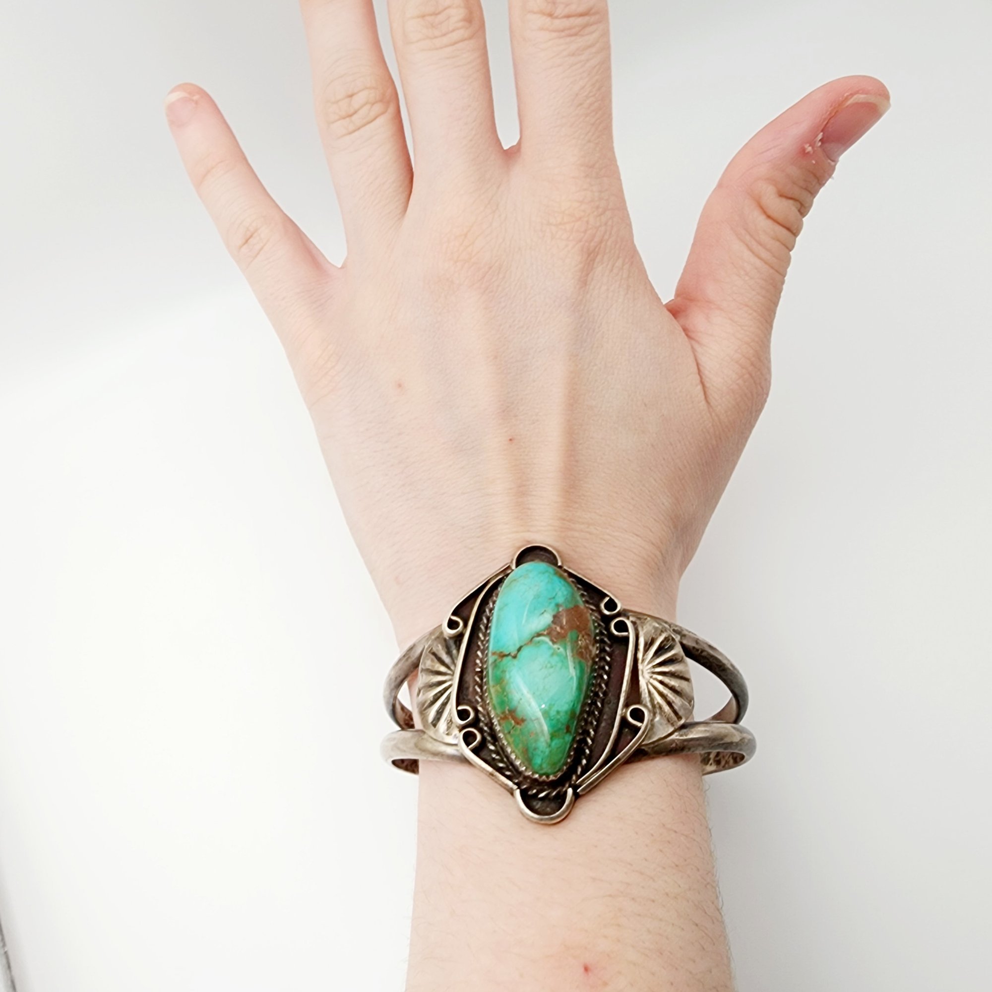 Vintage Navajo Sterling Turquoise Cab Cuff Bracelet 57.3g