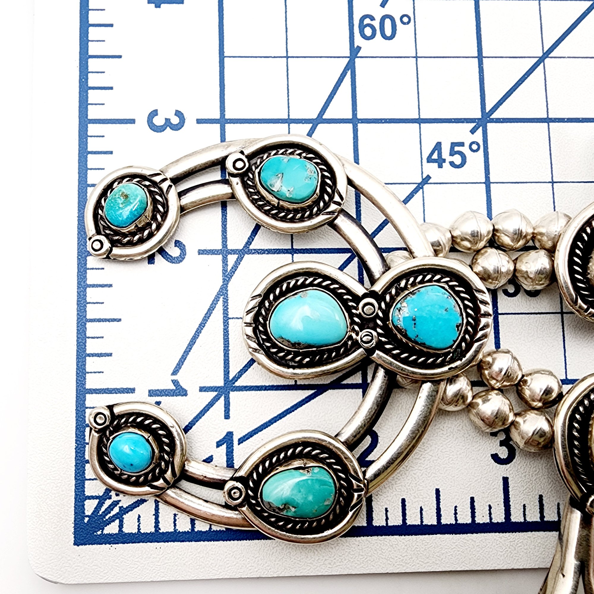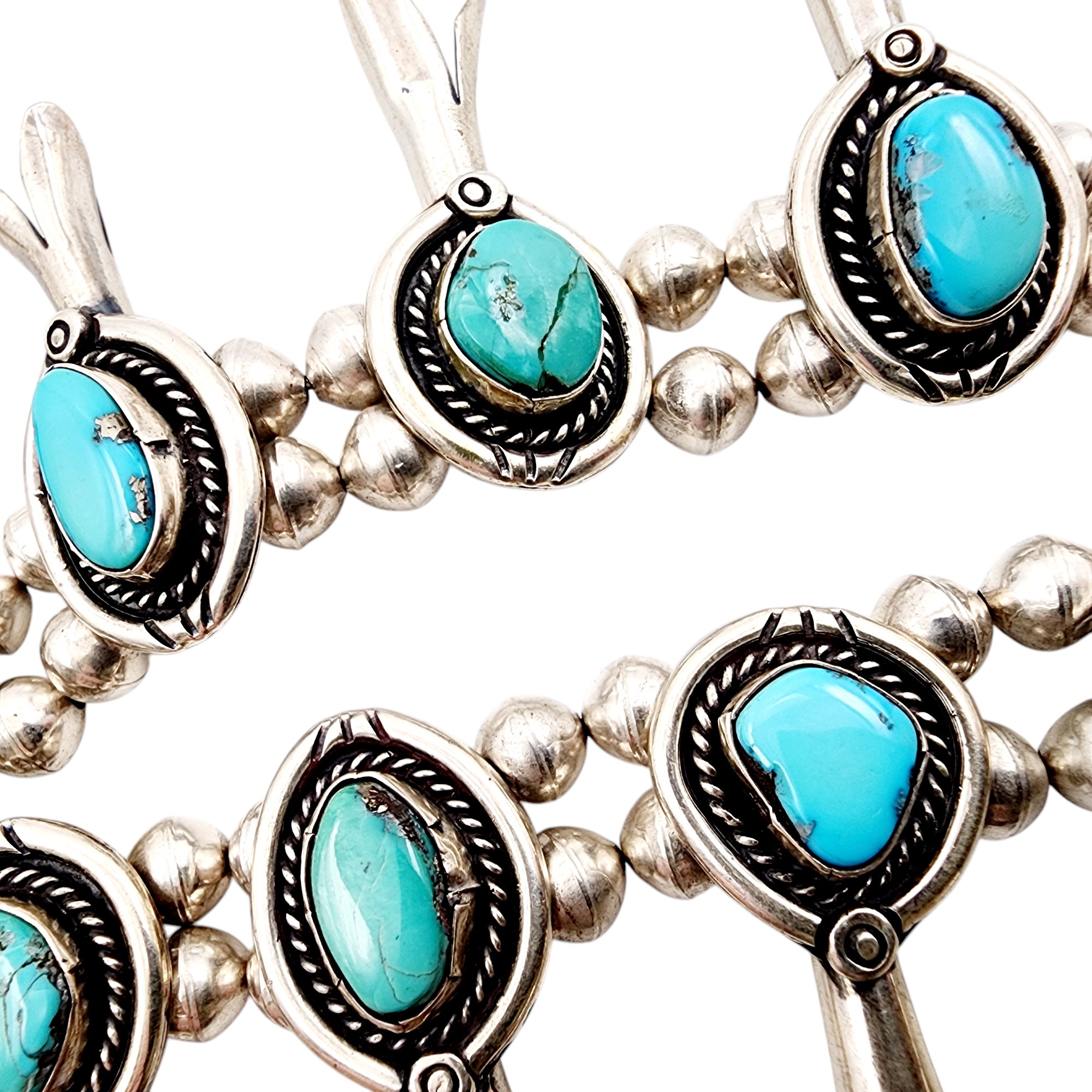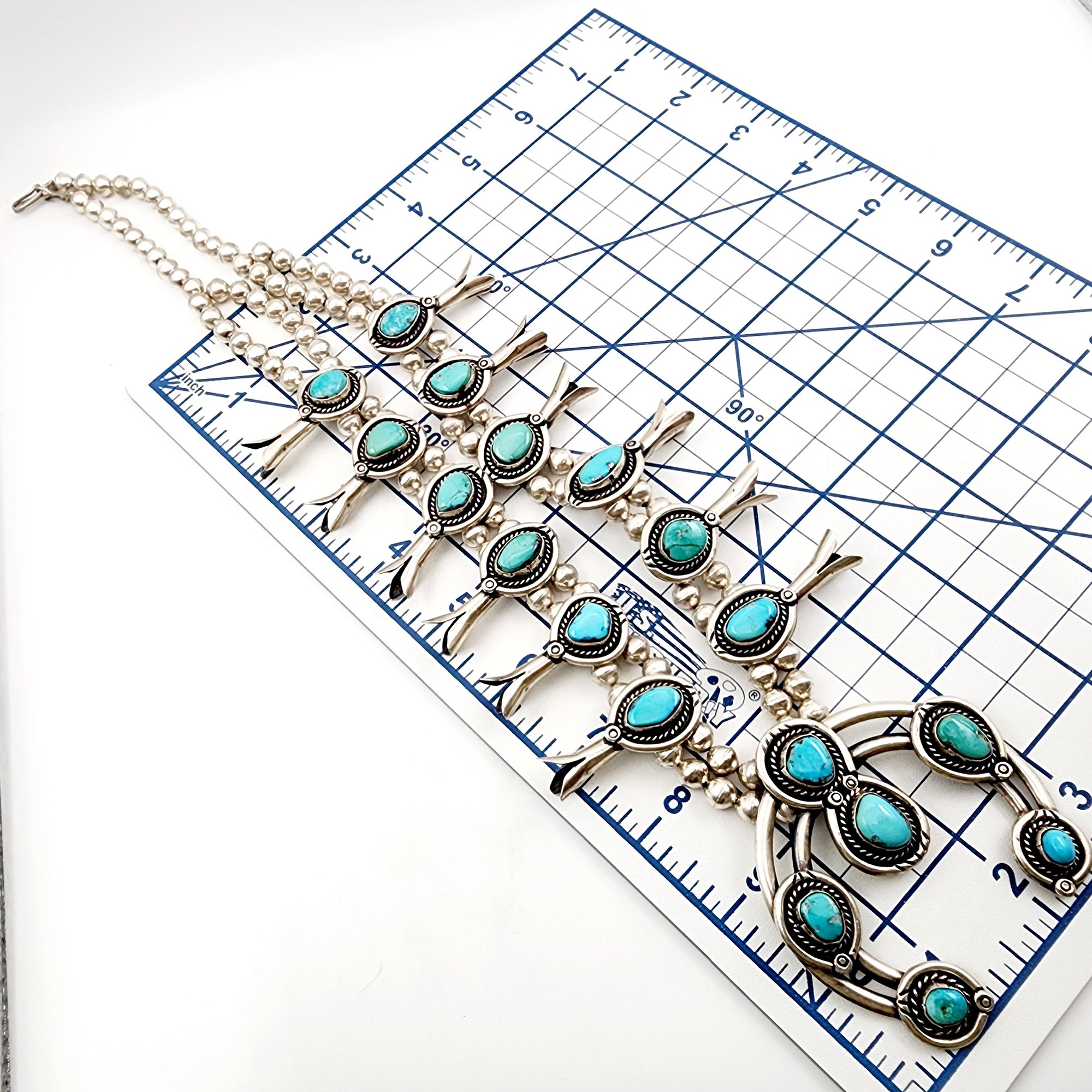 Vintage Navajo Sterling Turquoise Squash Blossom Necklace 189.3g