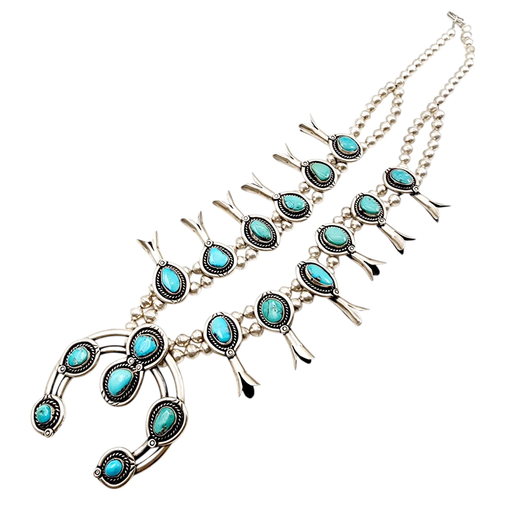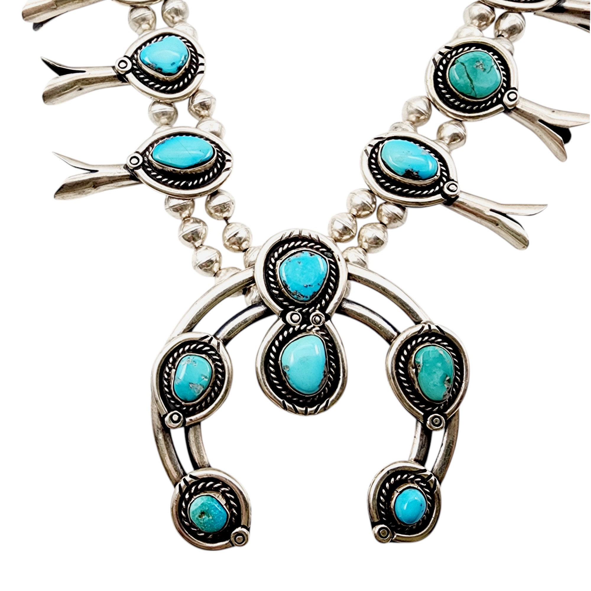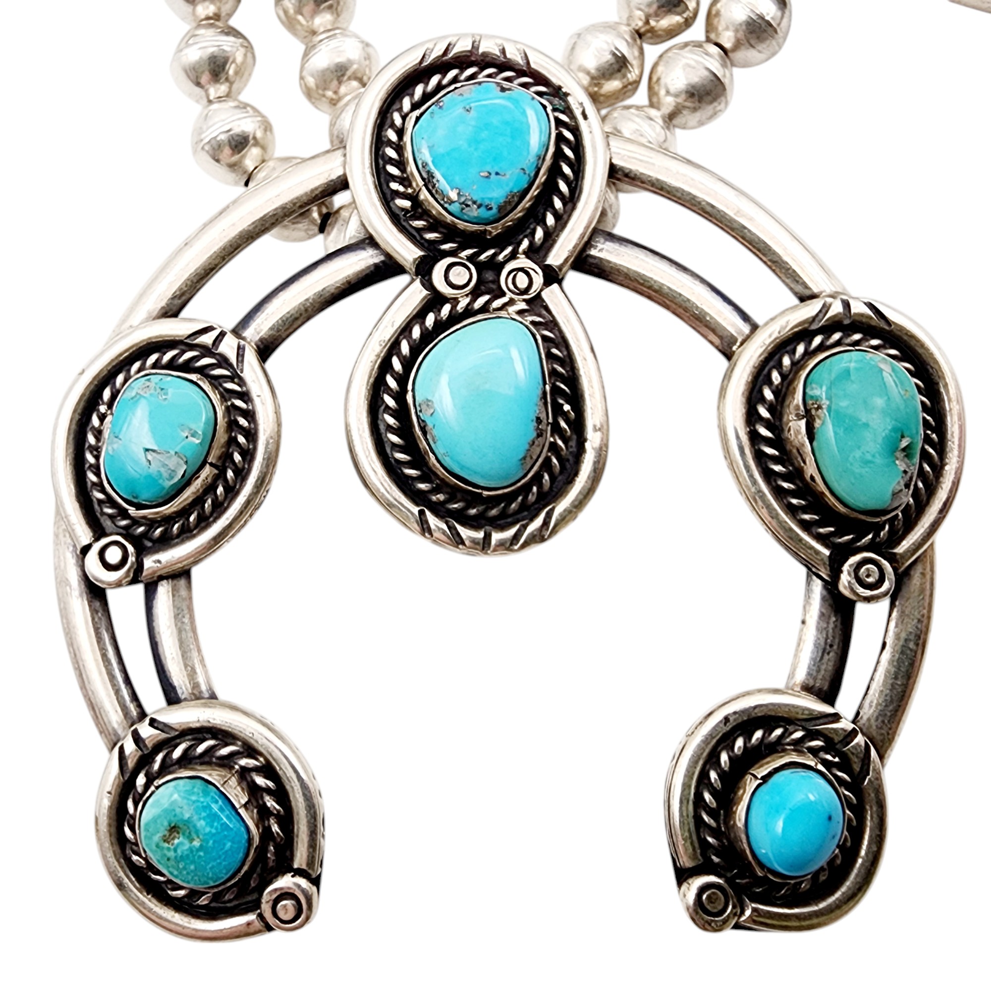 Vintage Navajo Sterling Turquoise Squash Blossom Necklace 189.3g