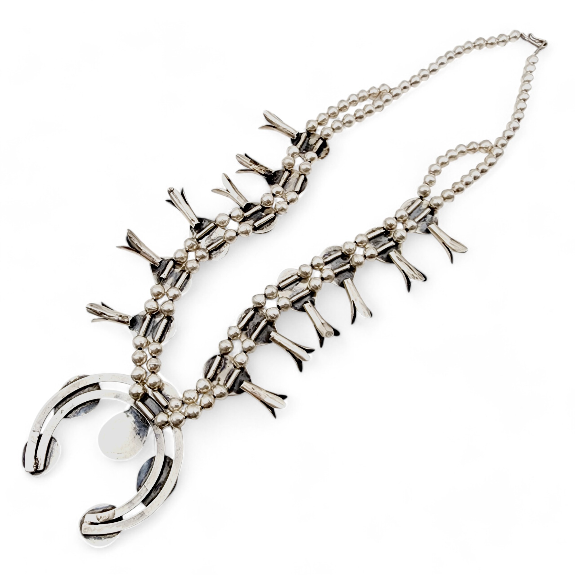 Vintage Navajo Sterling Turquoise Squash Blossom Necklace 189.3g 30