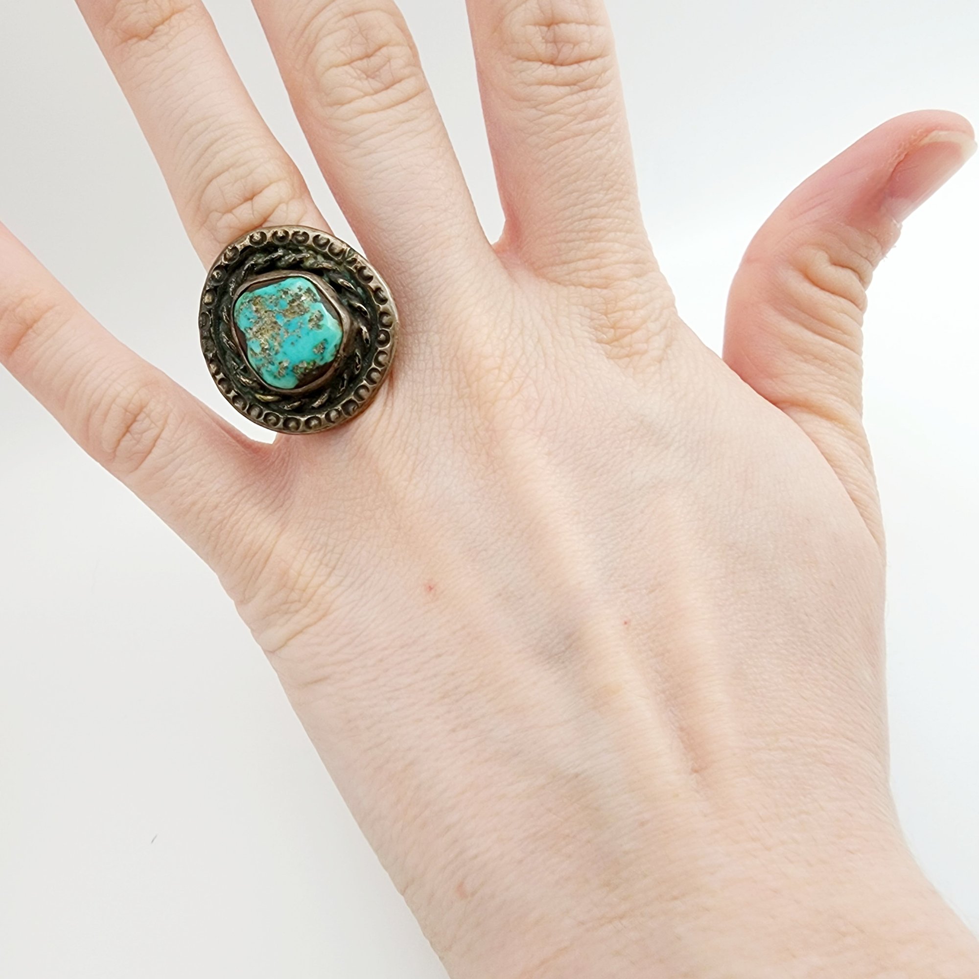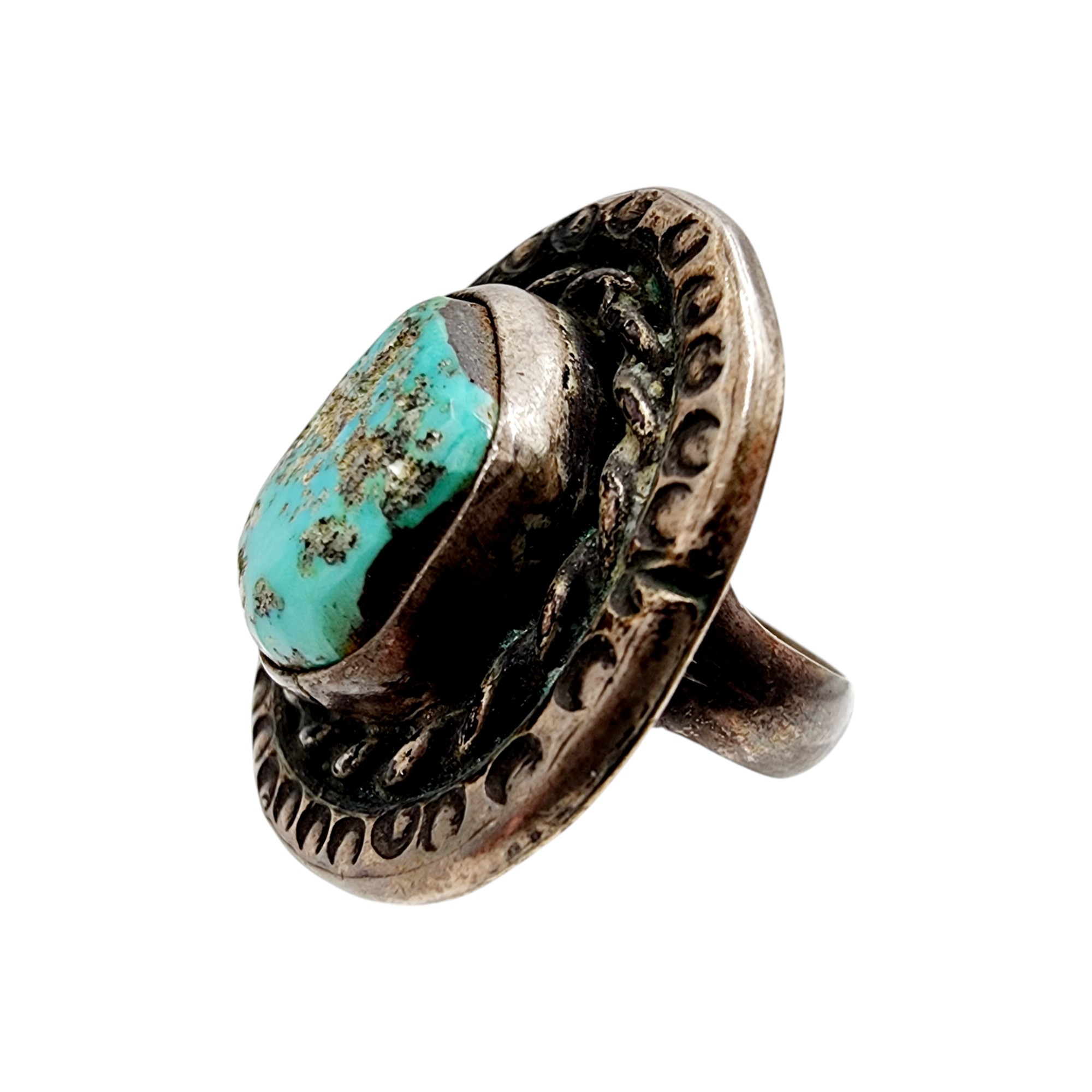 Vintage Jim Red Feather Navajo Sterling Turquoise Ring Sz 6 12.1g