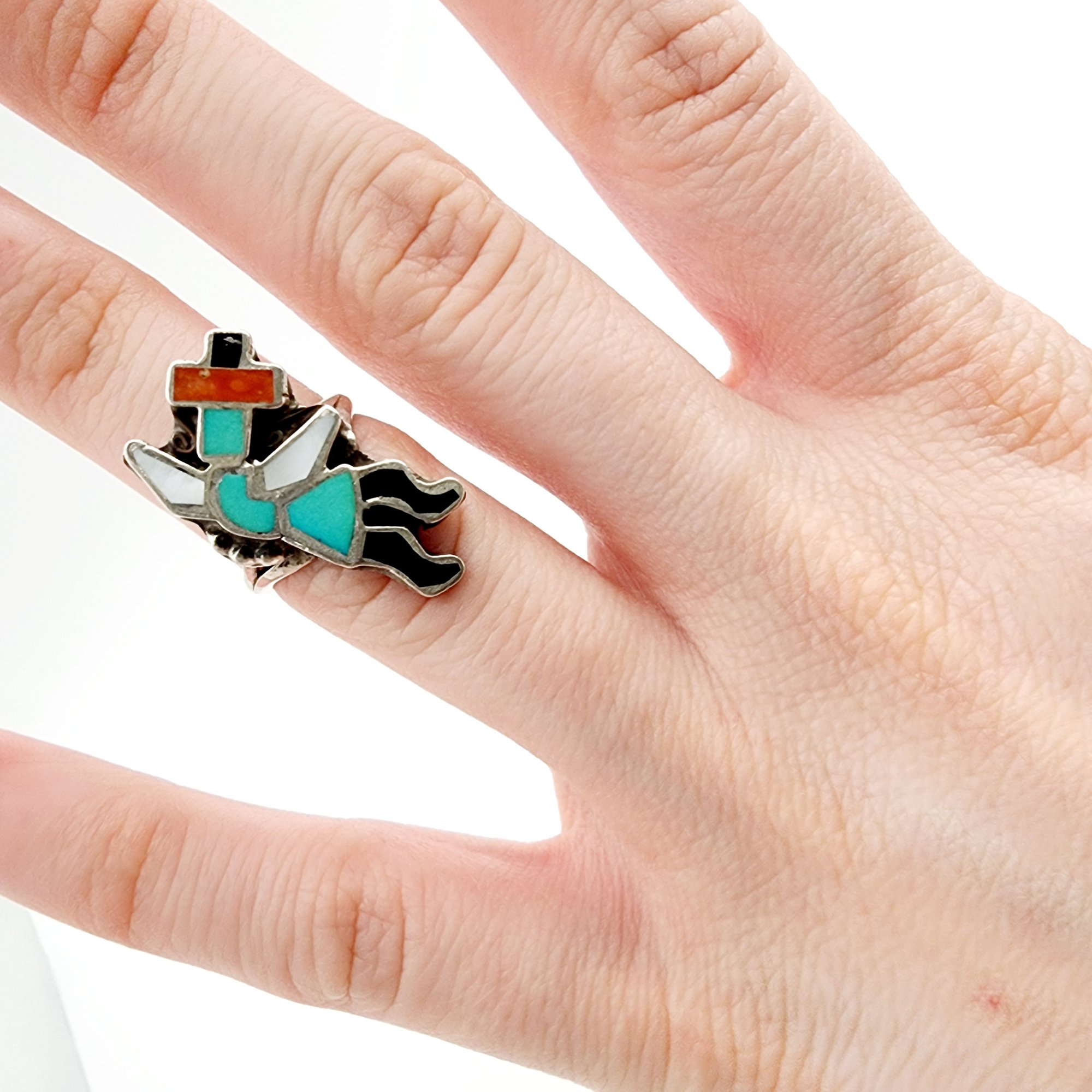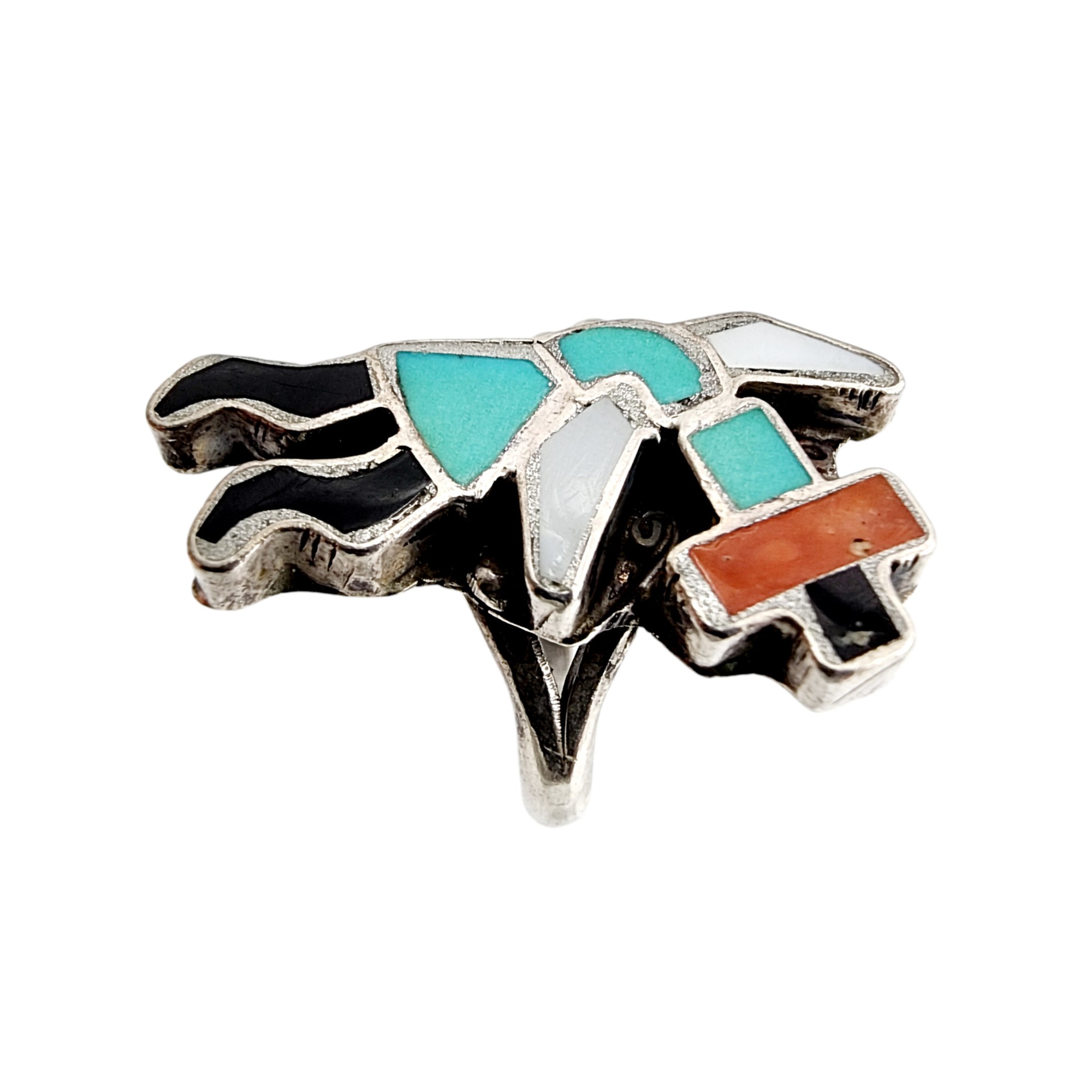 Vintage Zuni Sterling Rainbow Man Inlay Ring Sz 5 4.4g