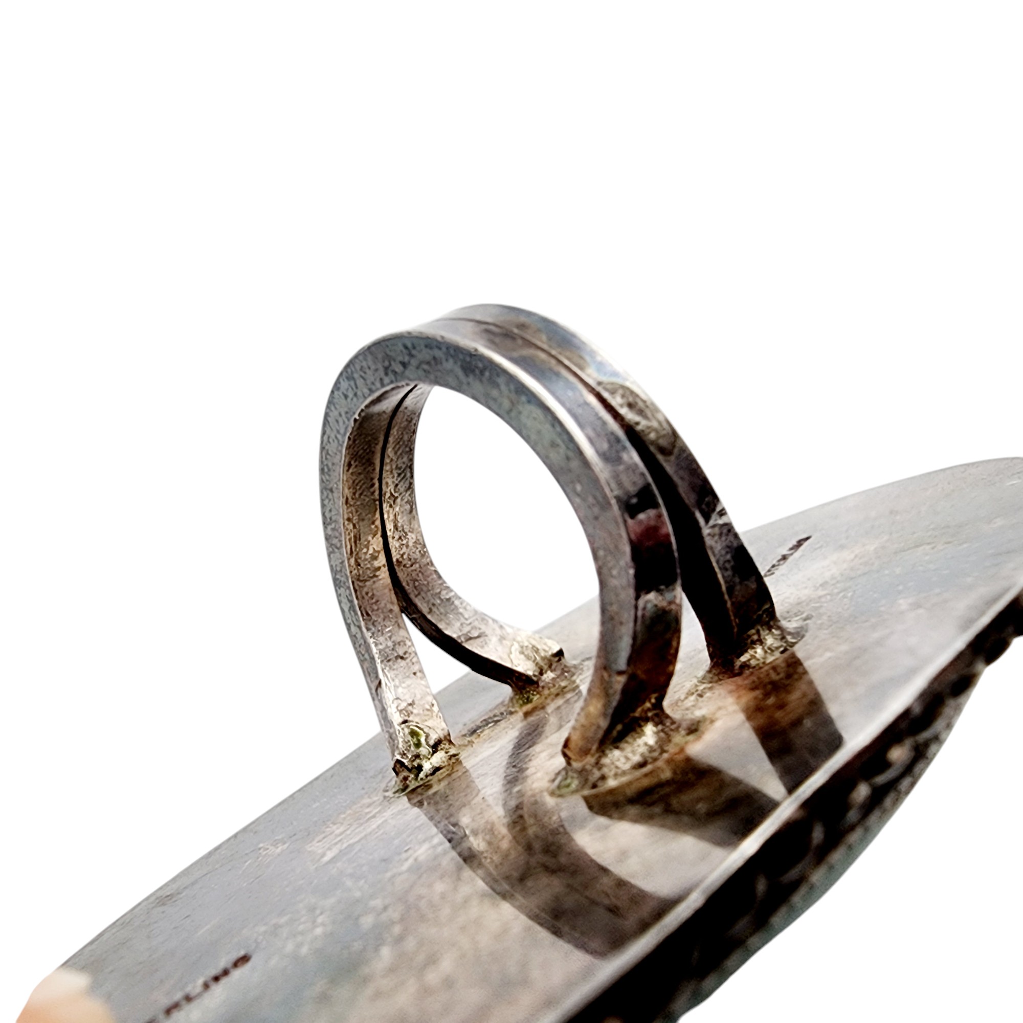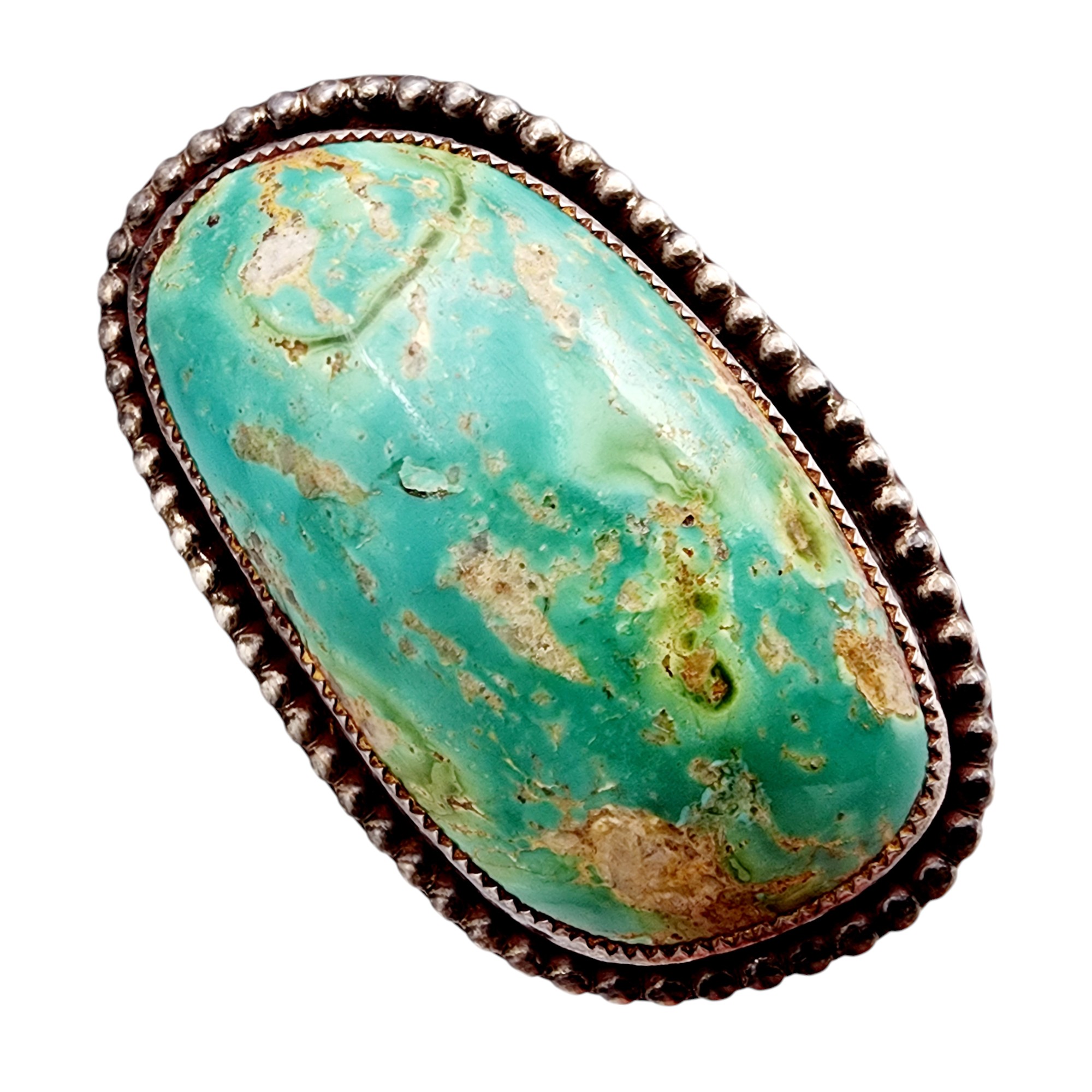 Gigantic Navajo Sterling Turquoise Ring Sz 8.5 61.4g imperfection in turquoise see close up pictures