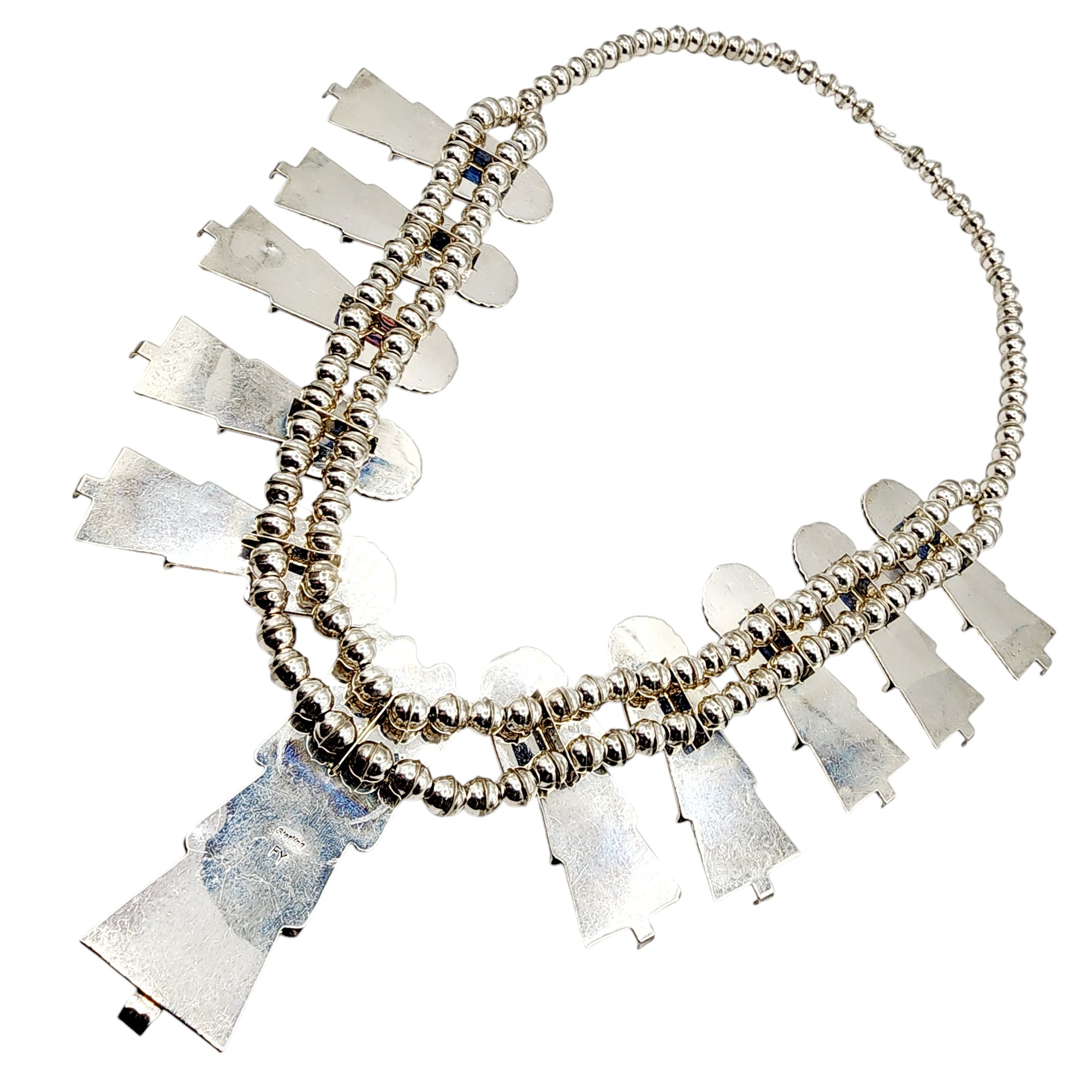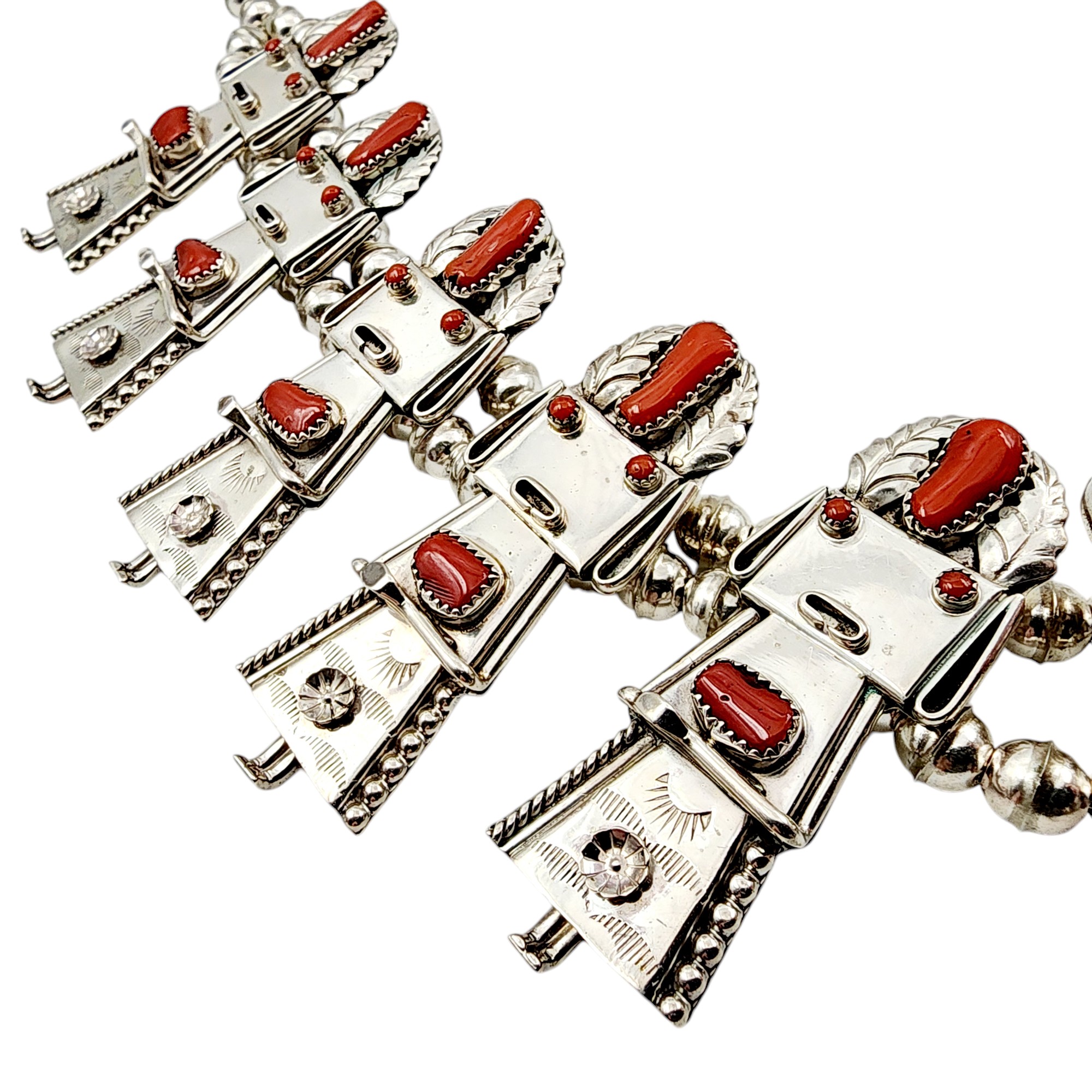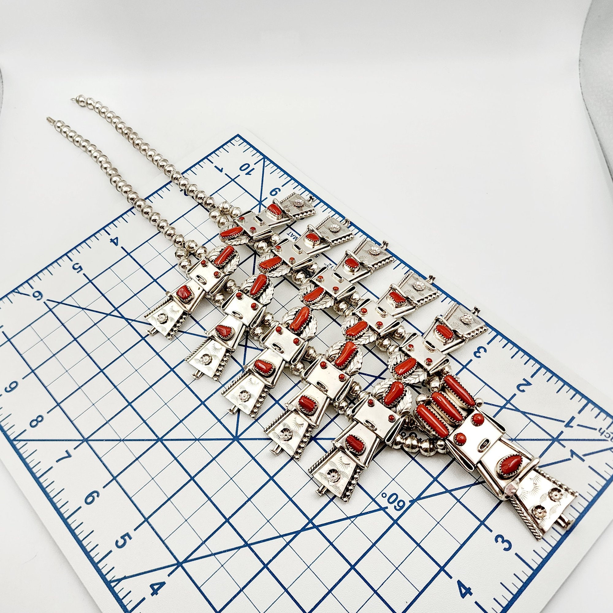 Incredible Frank Yazzie Navajo Sterling Coral Kachina Doll Necklace 173.1g