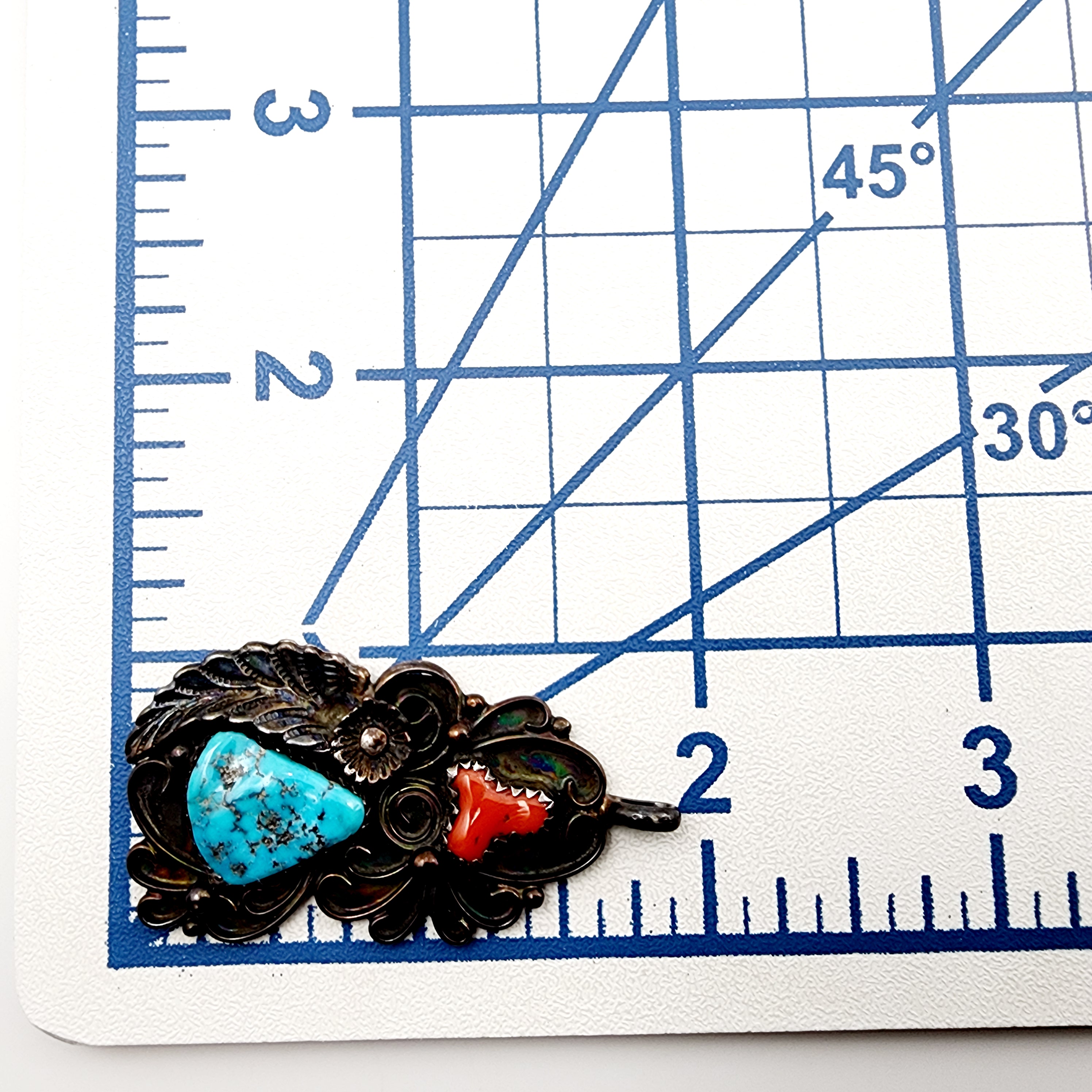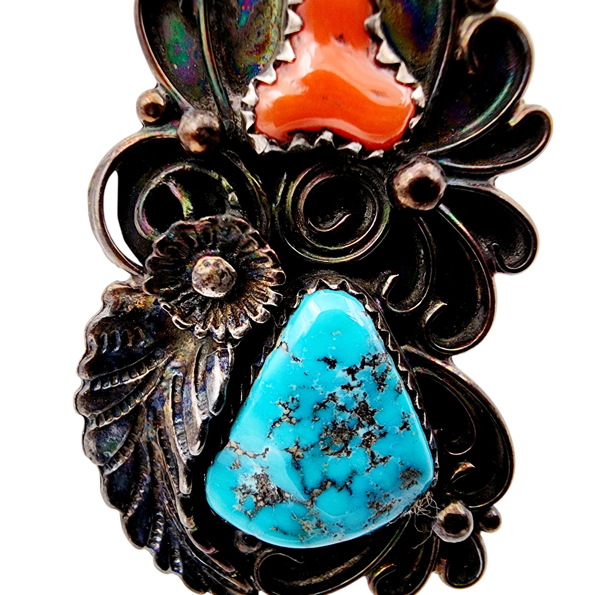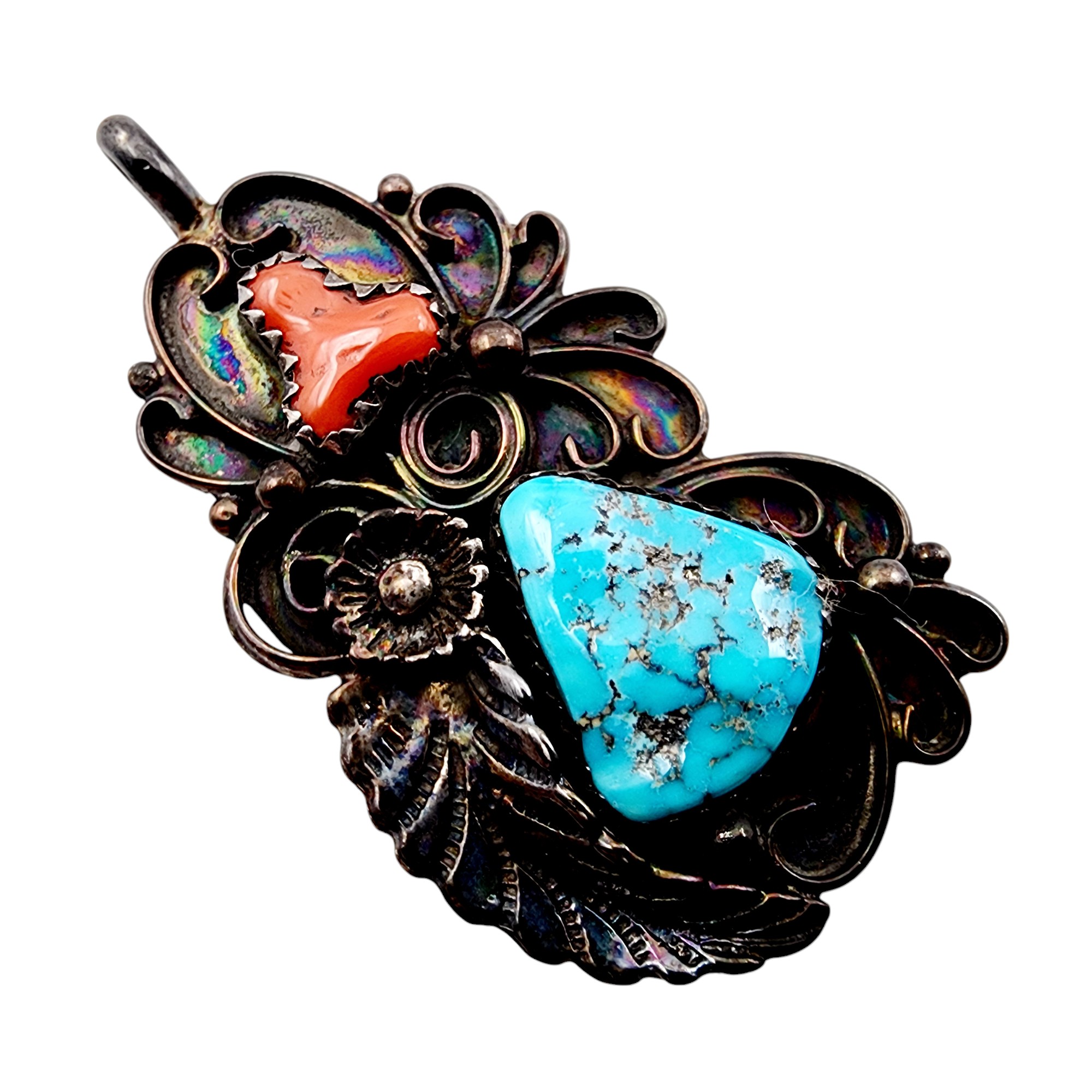 Vintage Navajo Sterling Turquoise Coral Pendant 9.6g