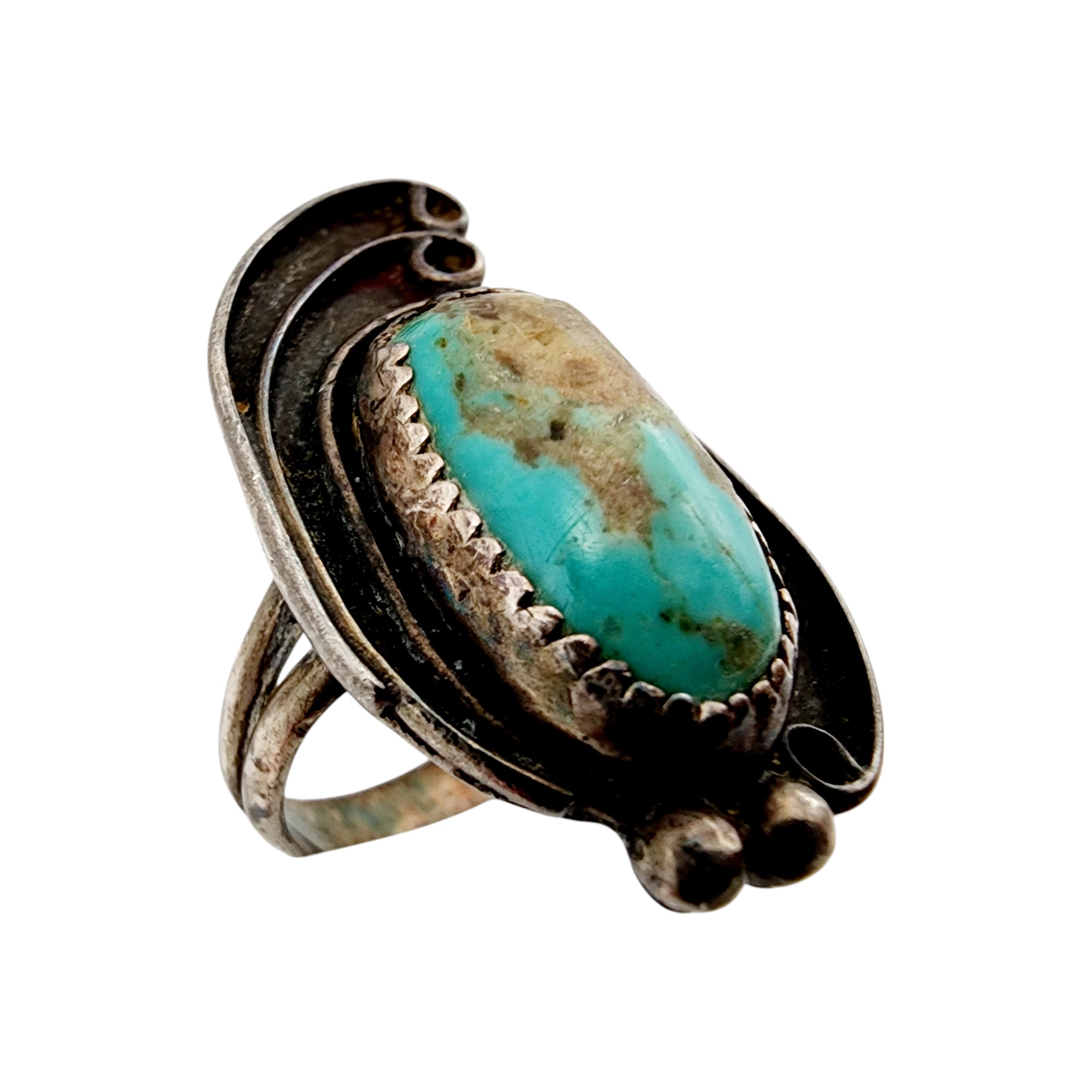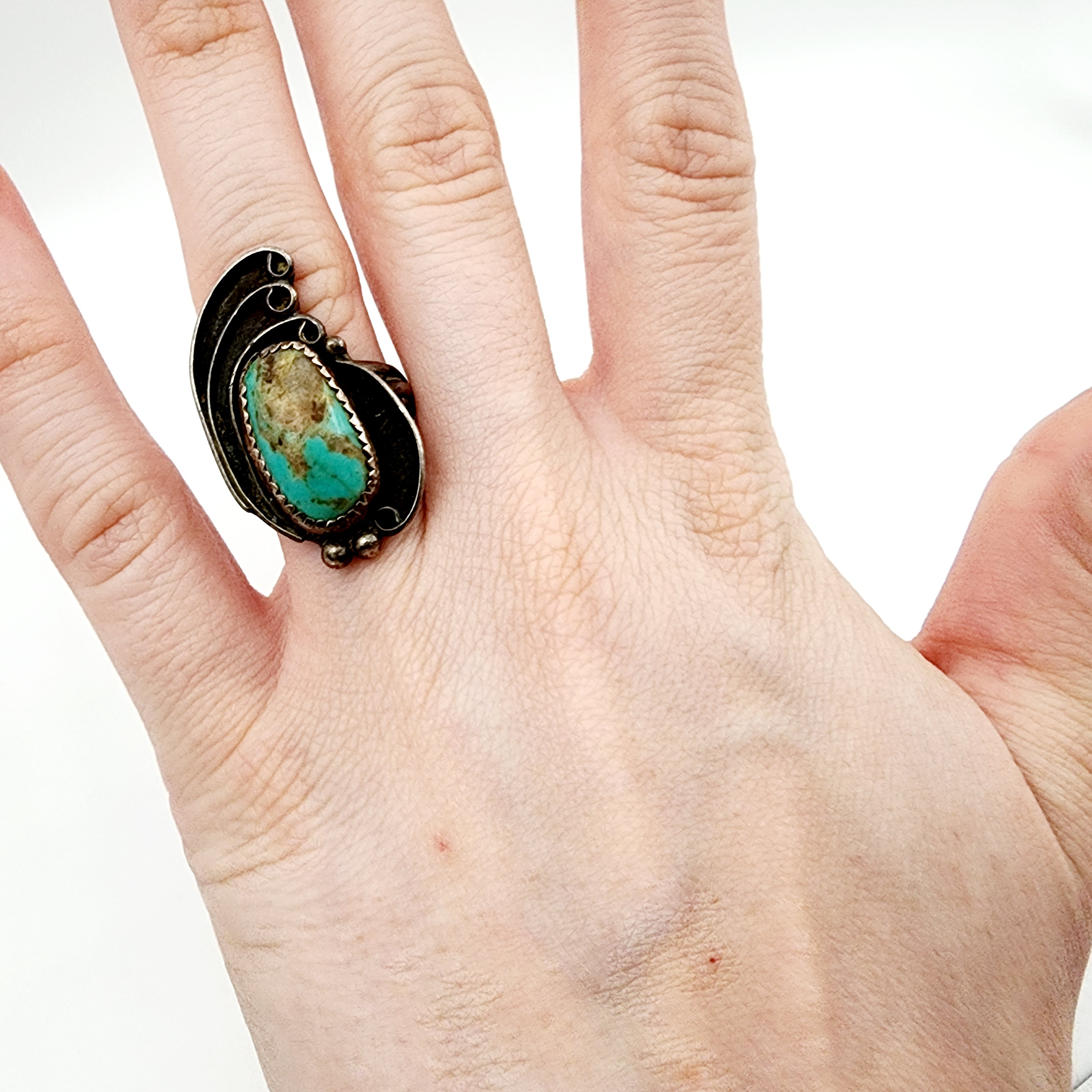 Vintage Navajo Sterling Turquoise Ring Sz 7.5 7.3g