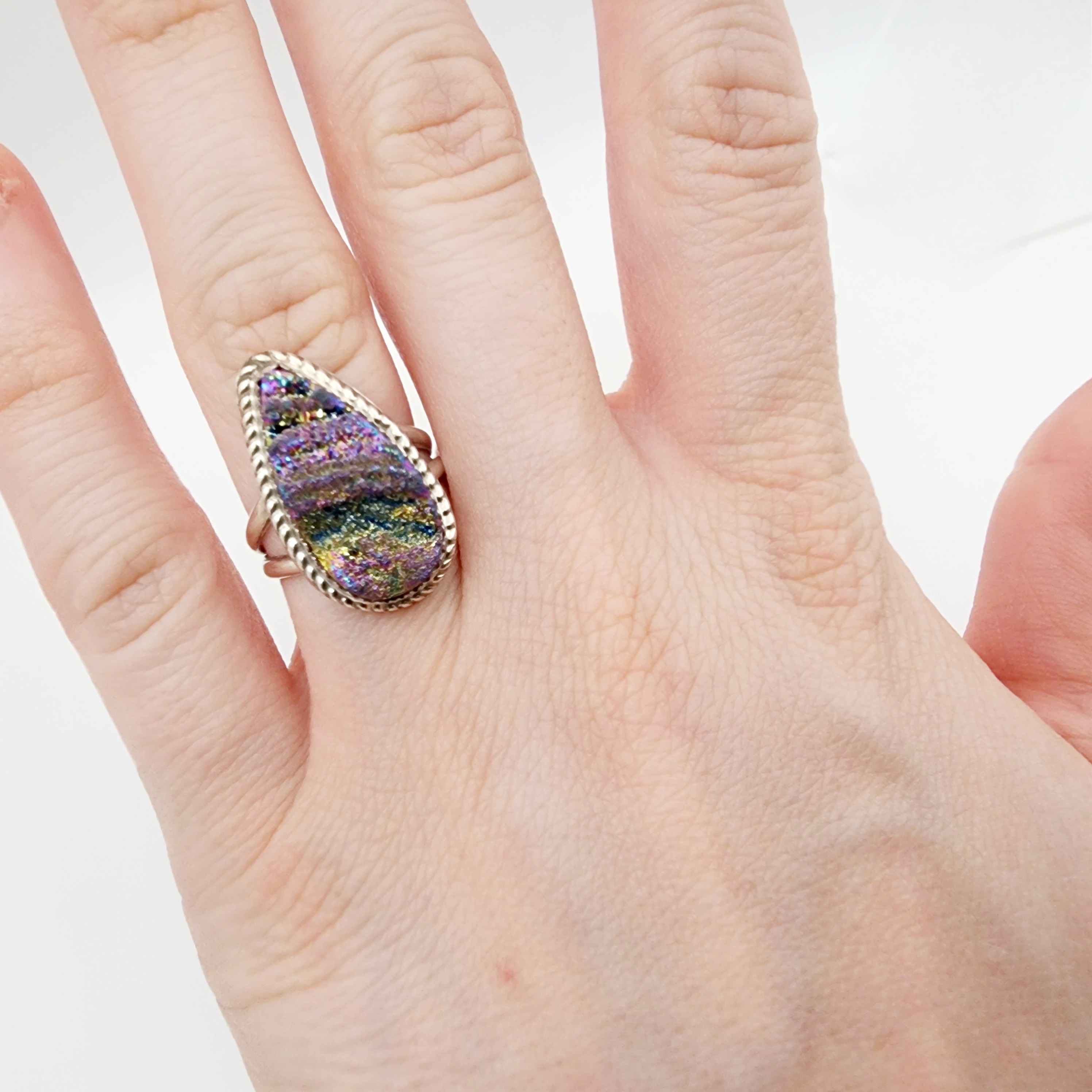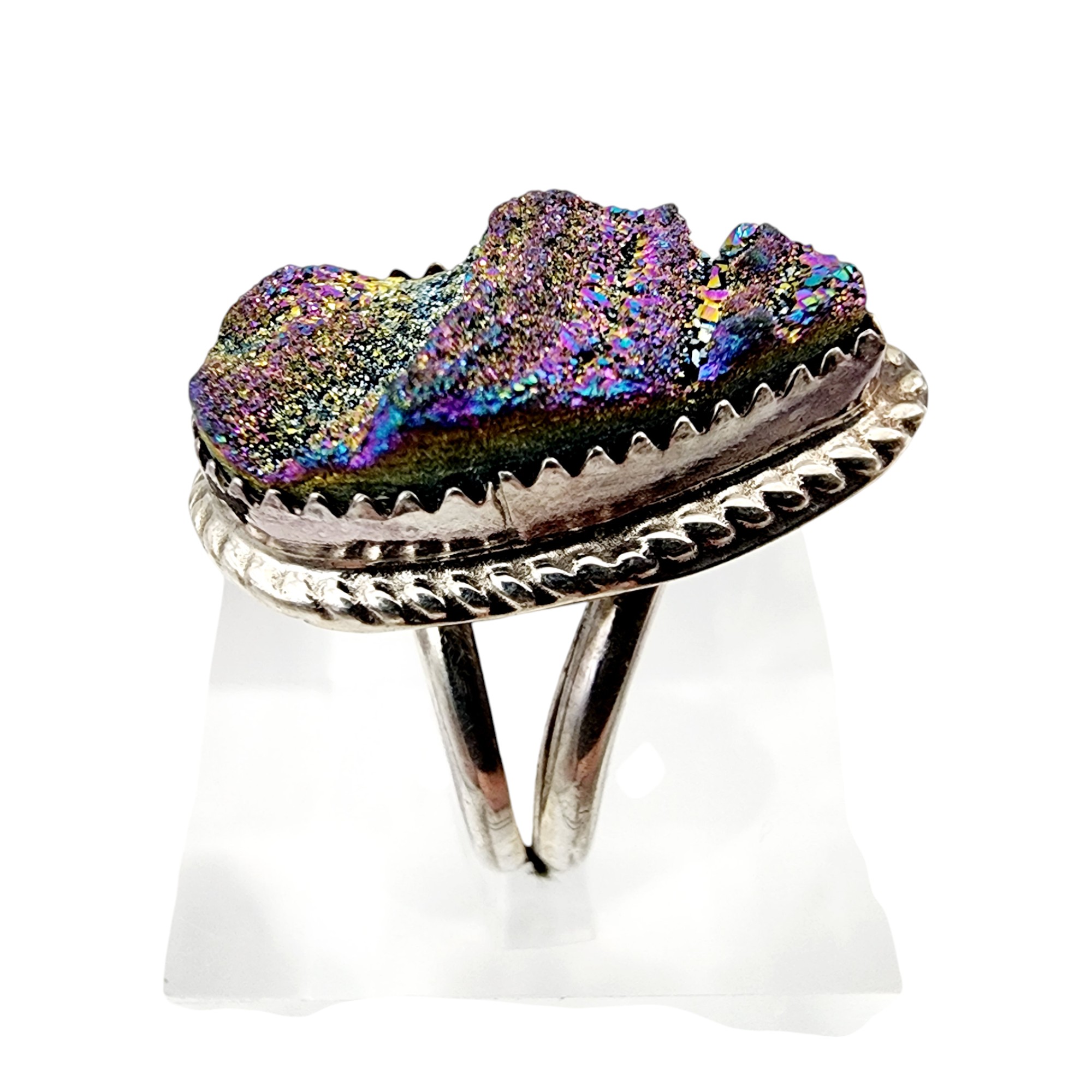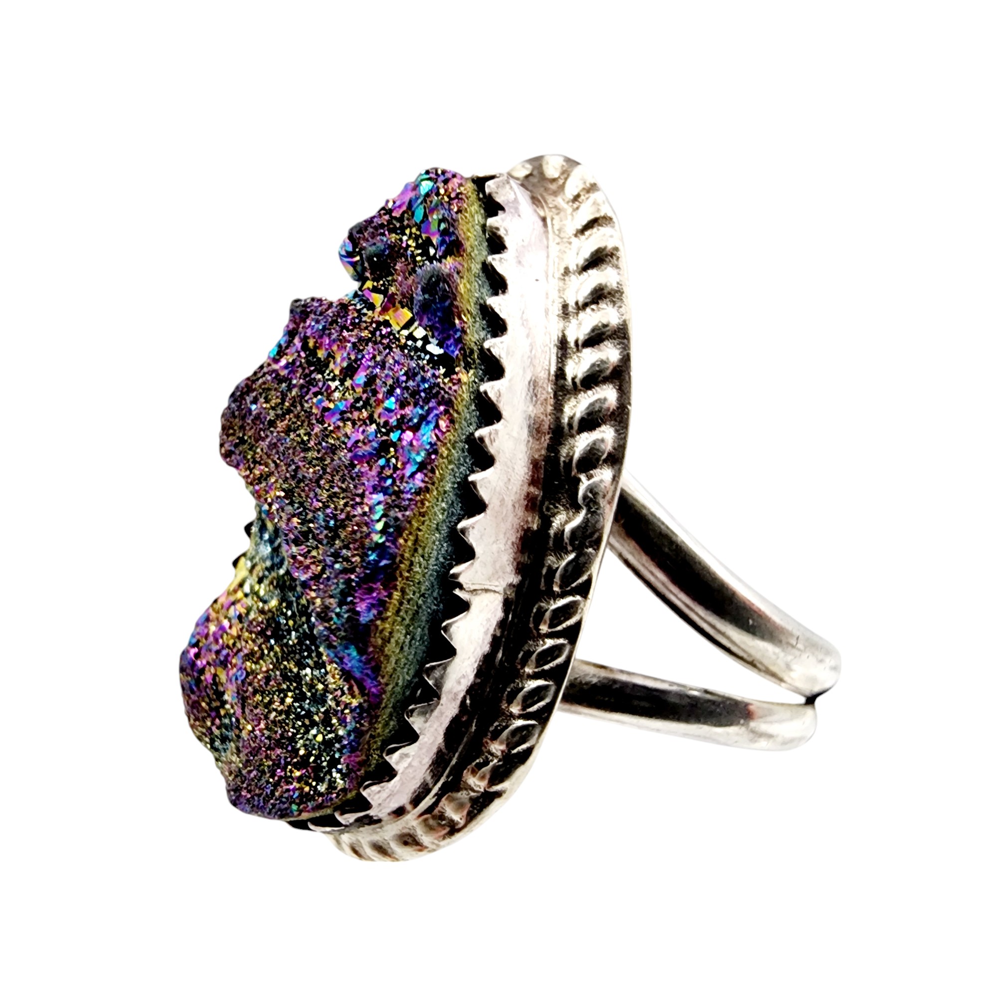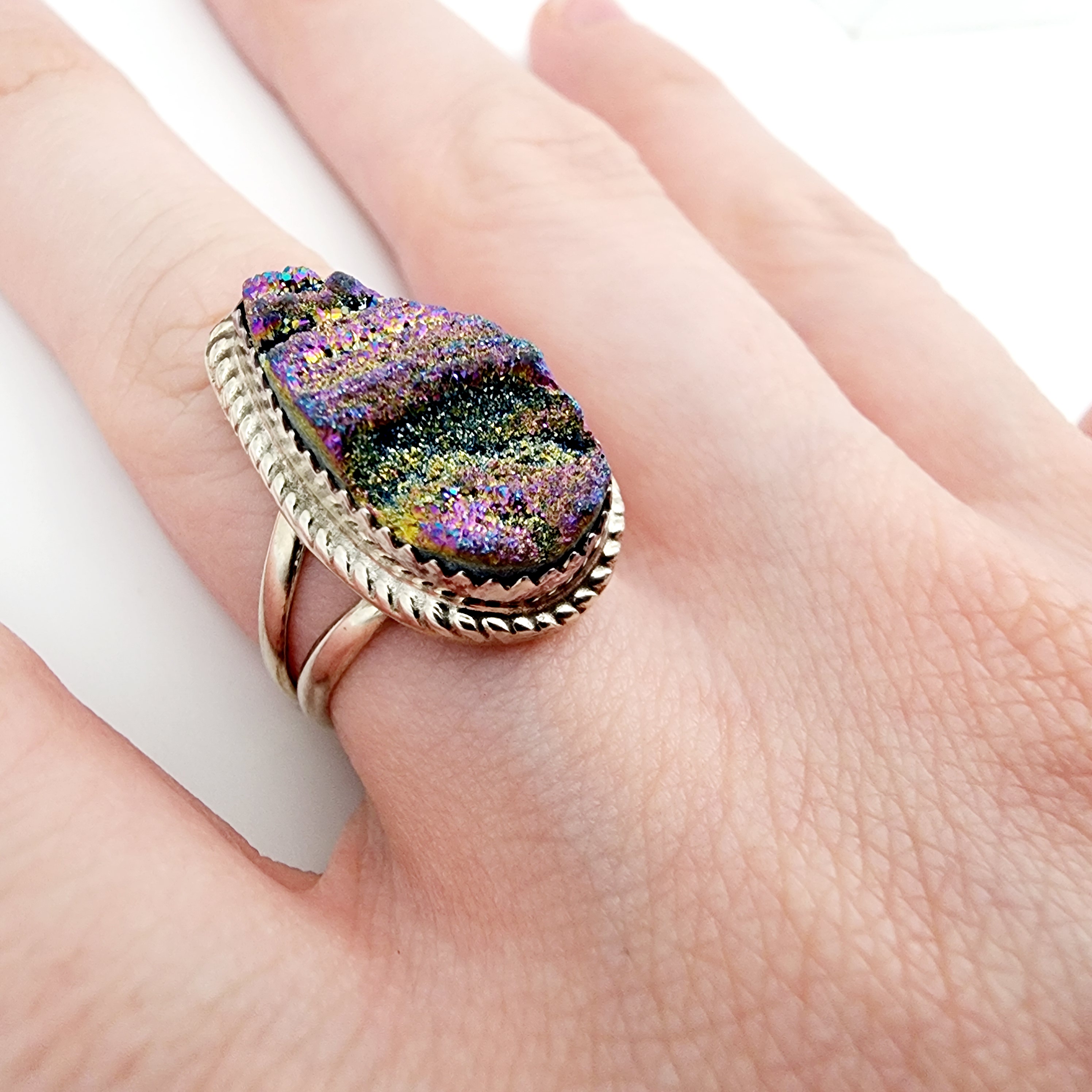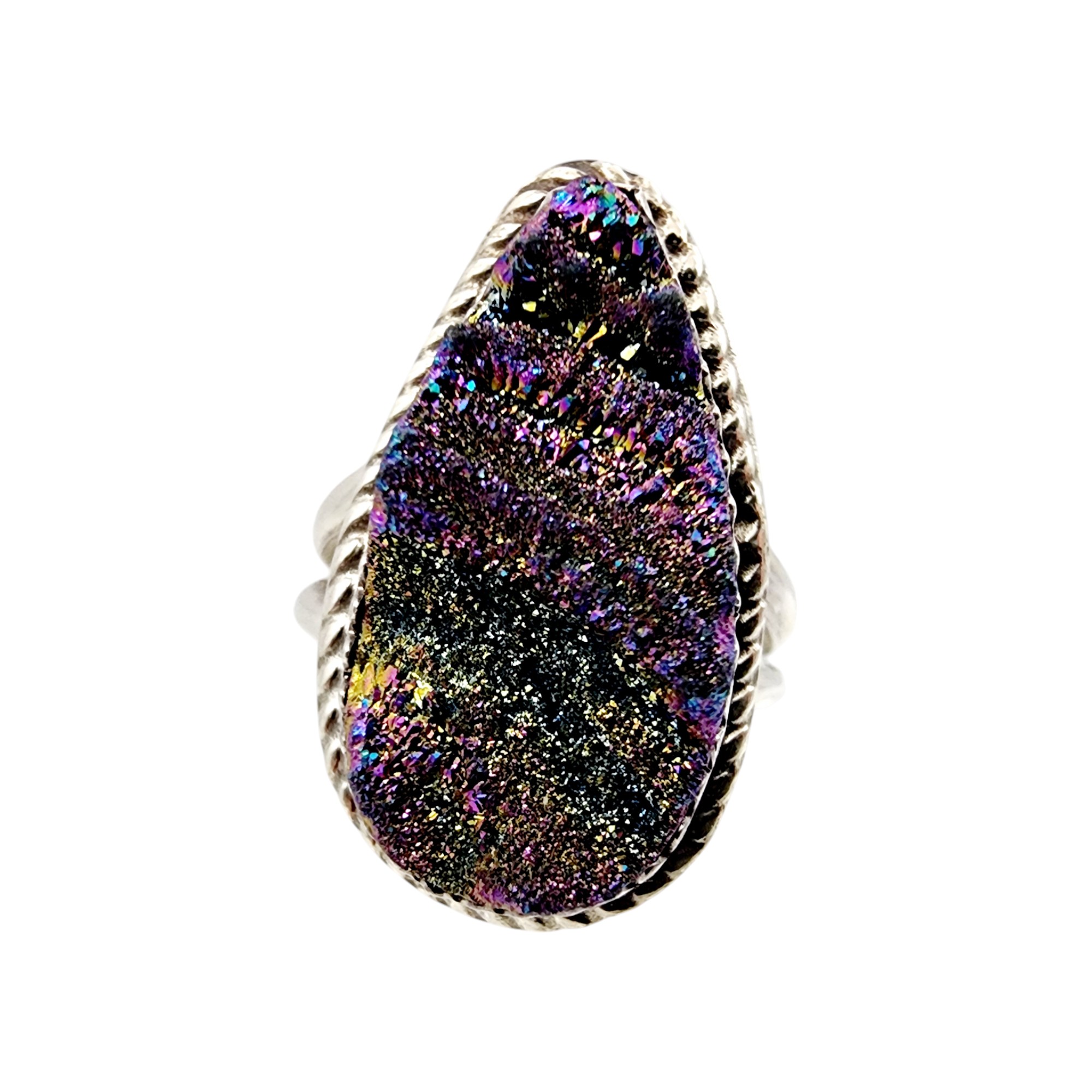 Navajo ‘JB’ Signed Sterling Druzy Ring Sz 7 5.8g