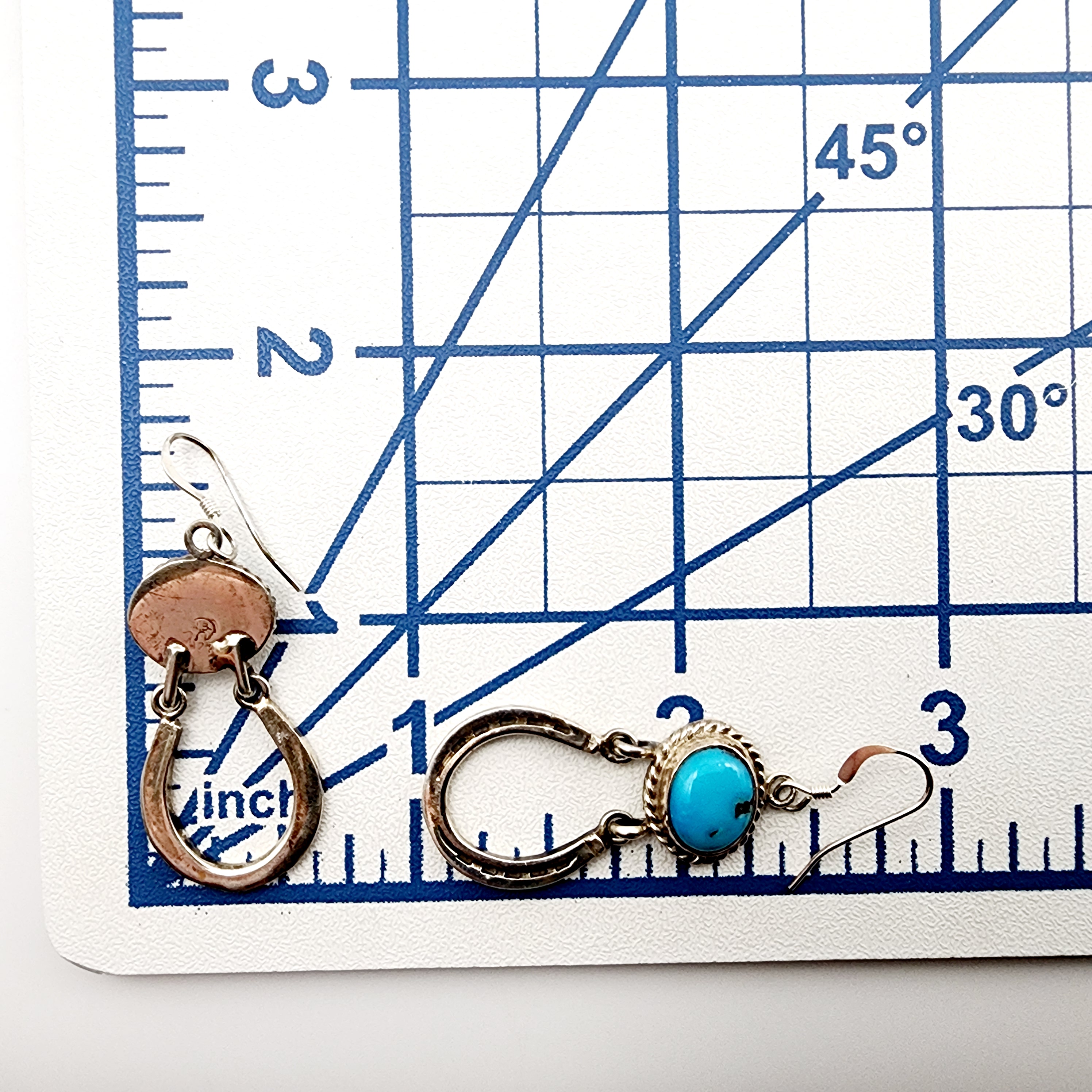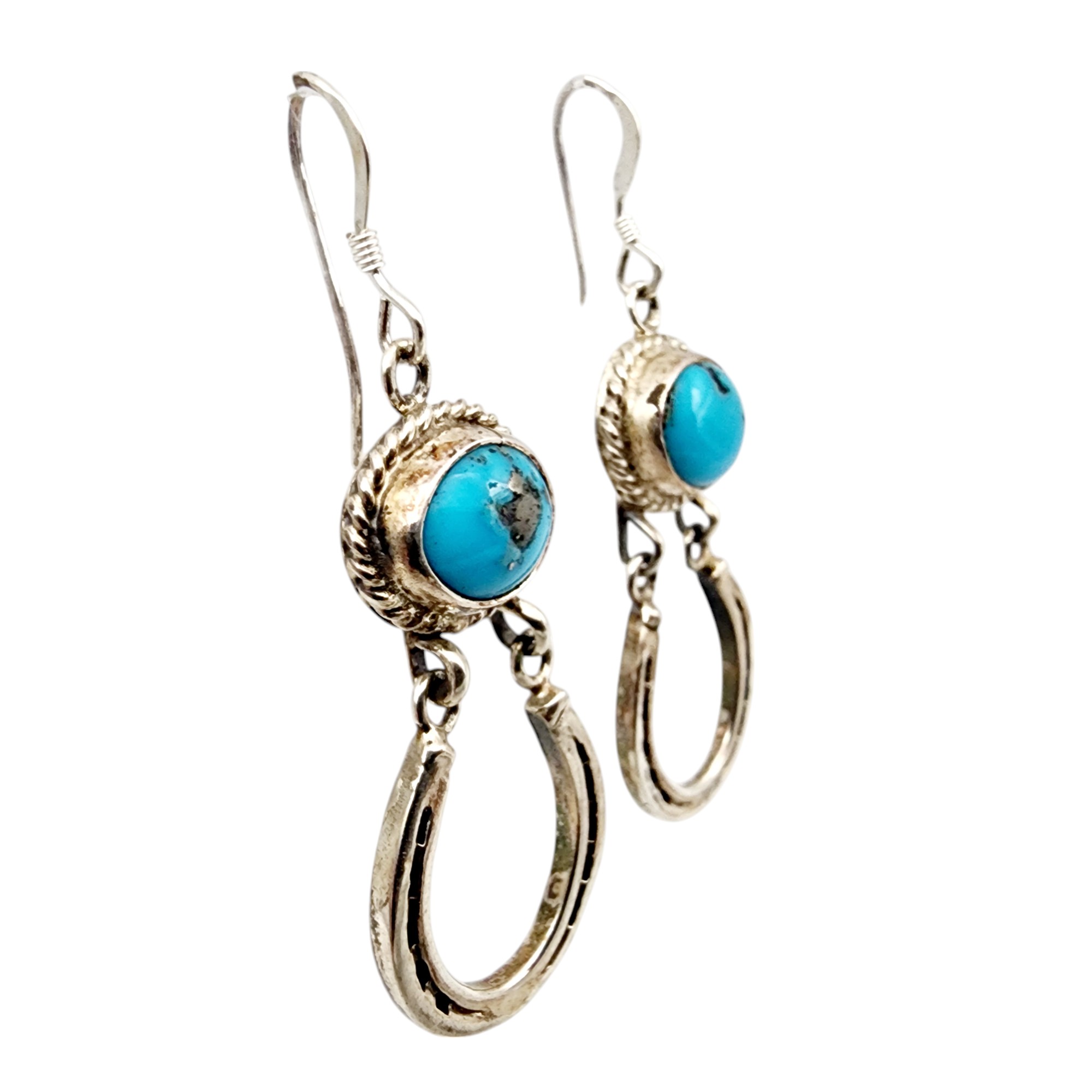 Running Bear Sterling Turquoise Horseshoe Earrings 7.2g