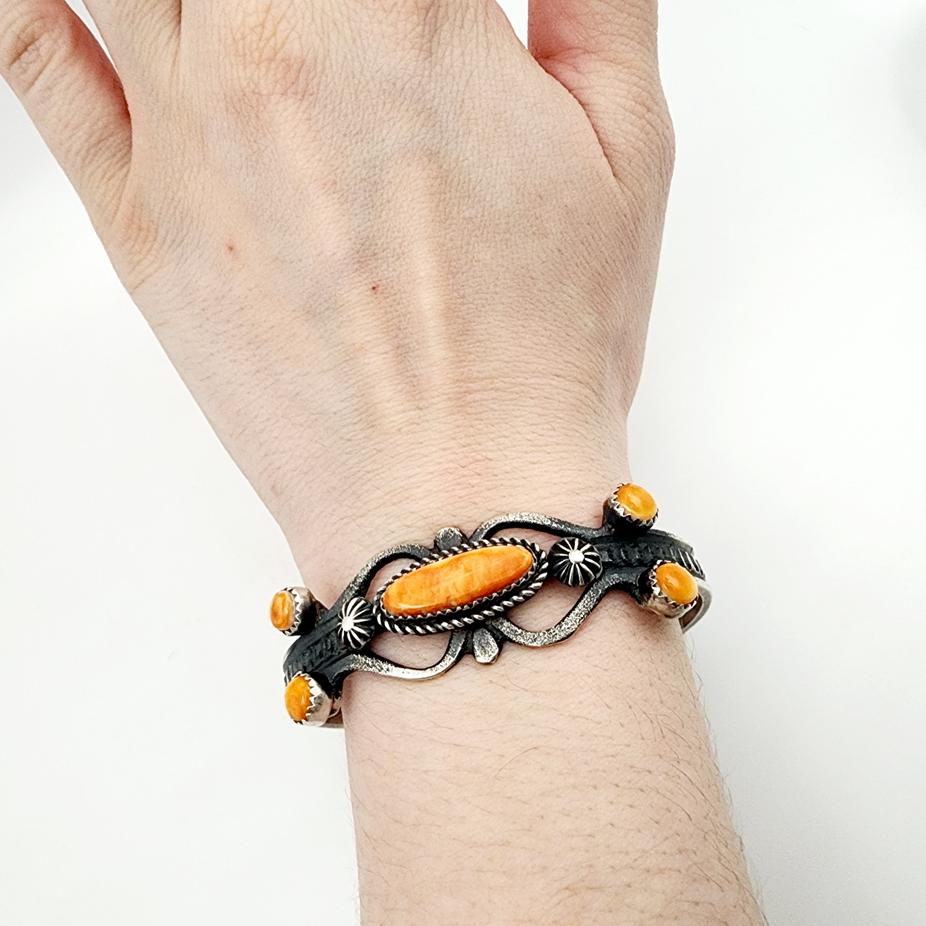 Eva & Linberg Billah Navajo Spiny Oyster Sterling Cuff Bracelet 25.3g