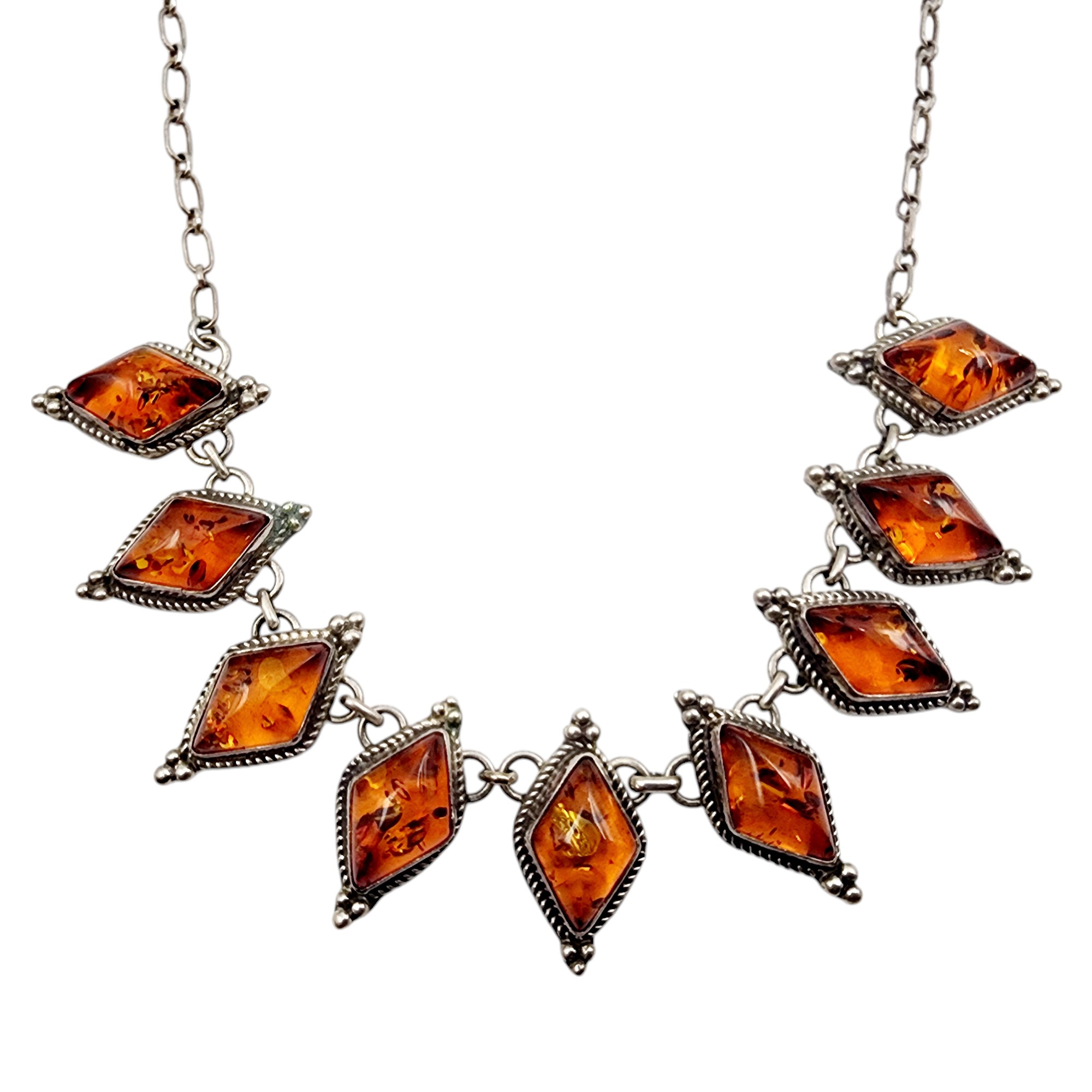 Geraldine James Navajo Amber Sterling Necklace 27.9g