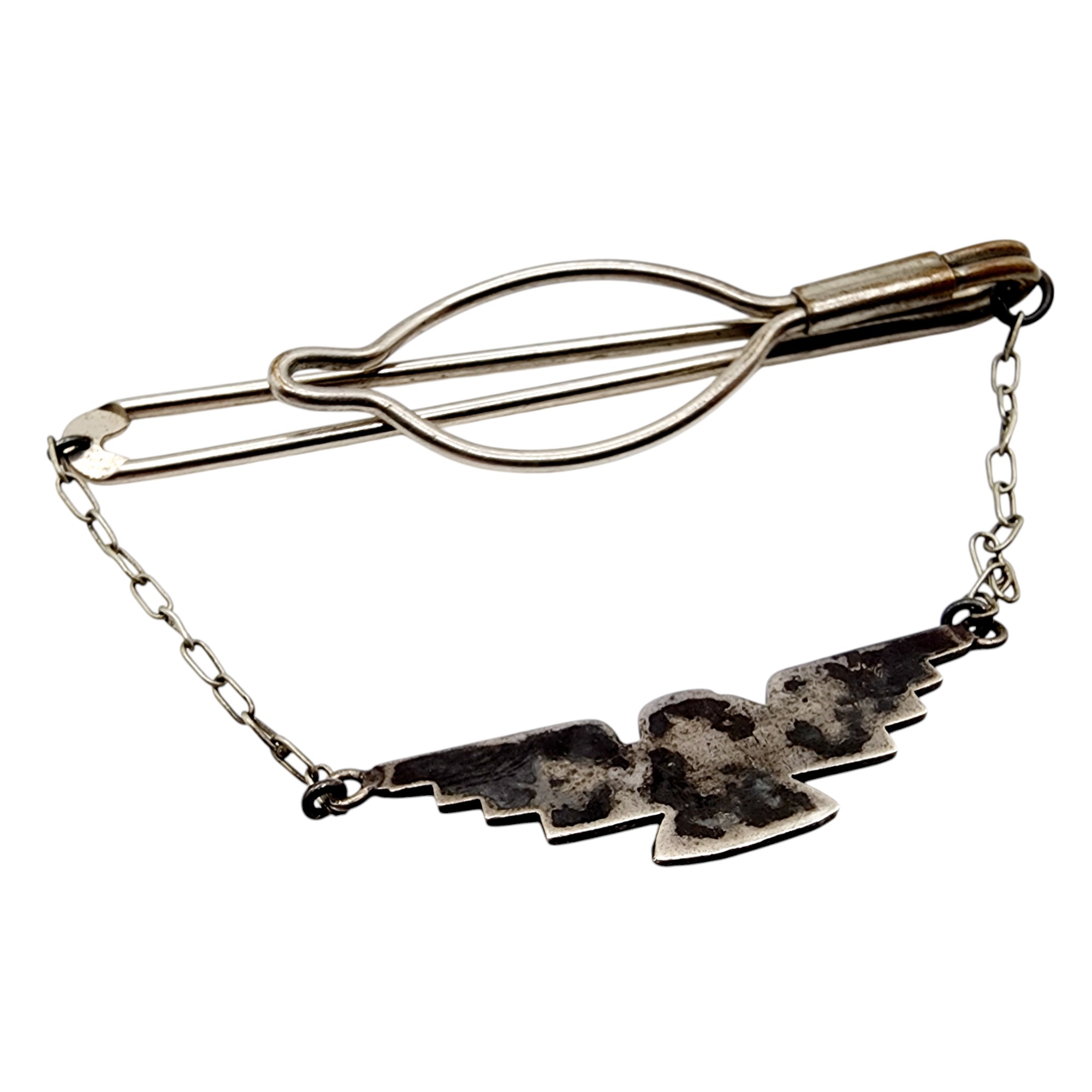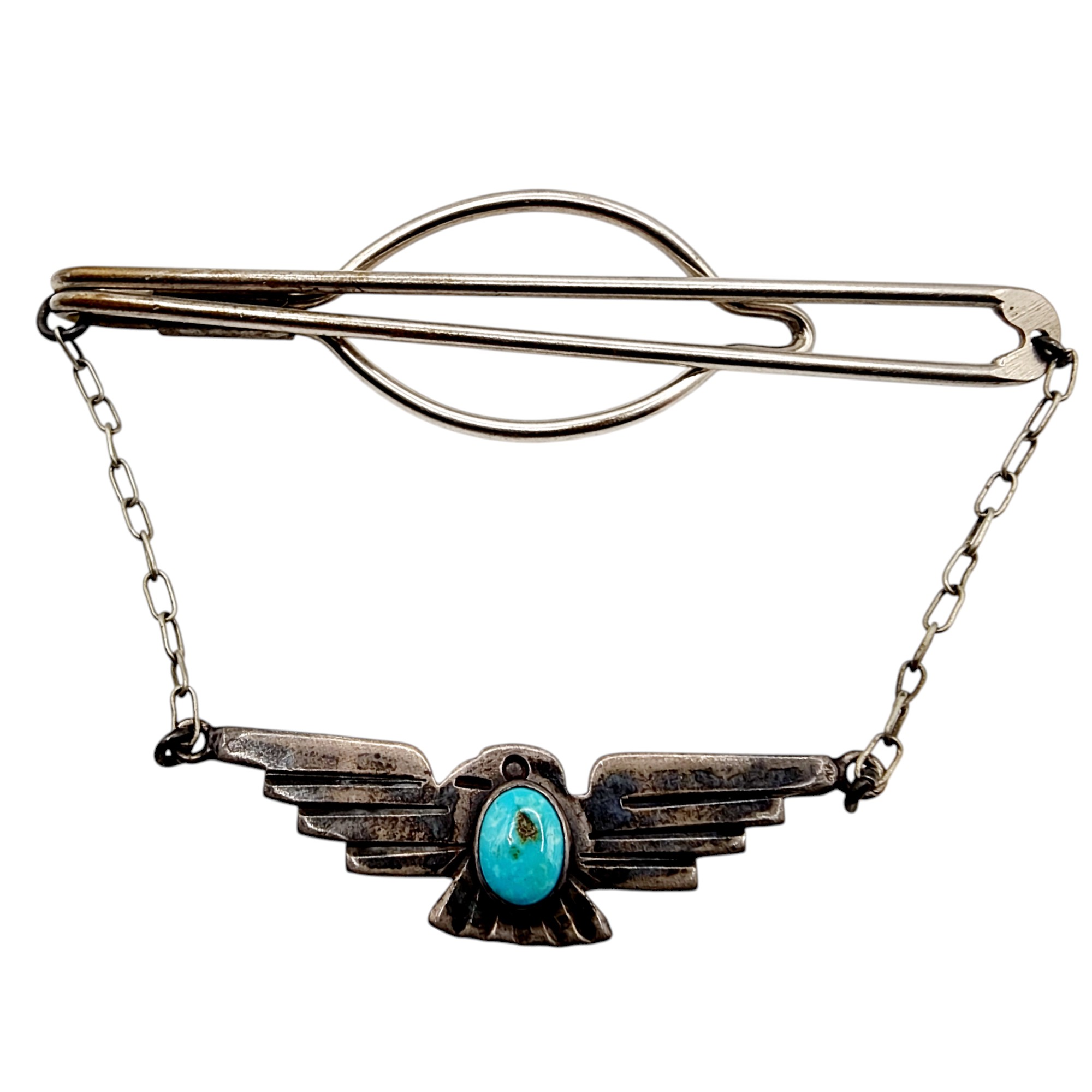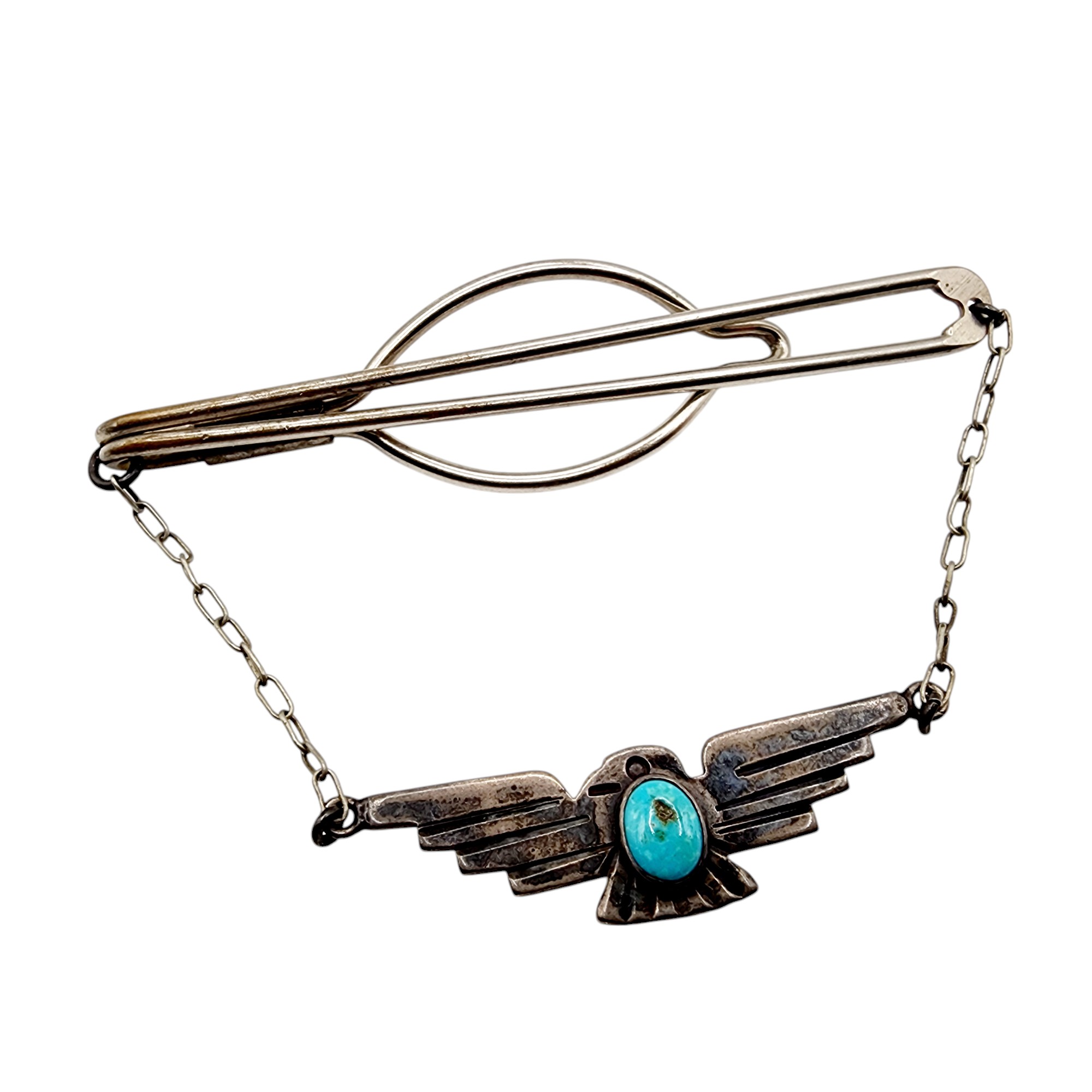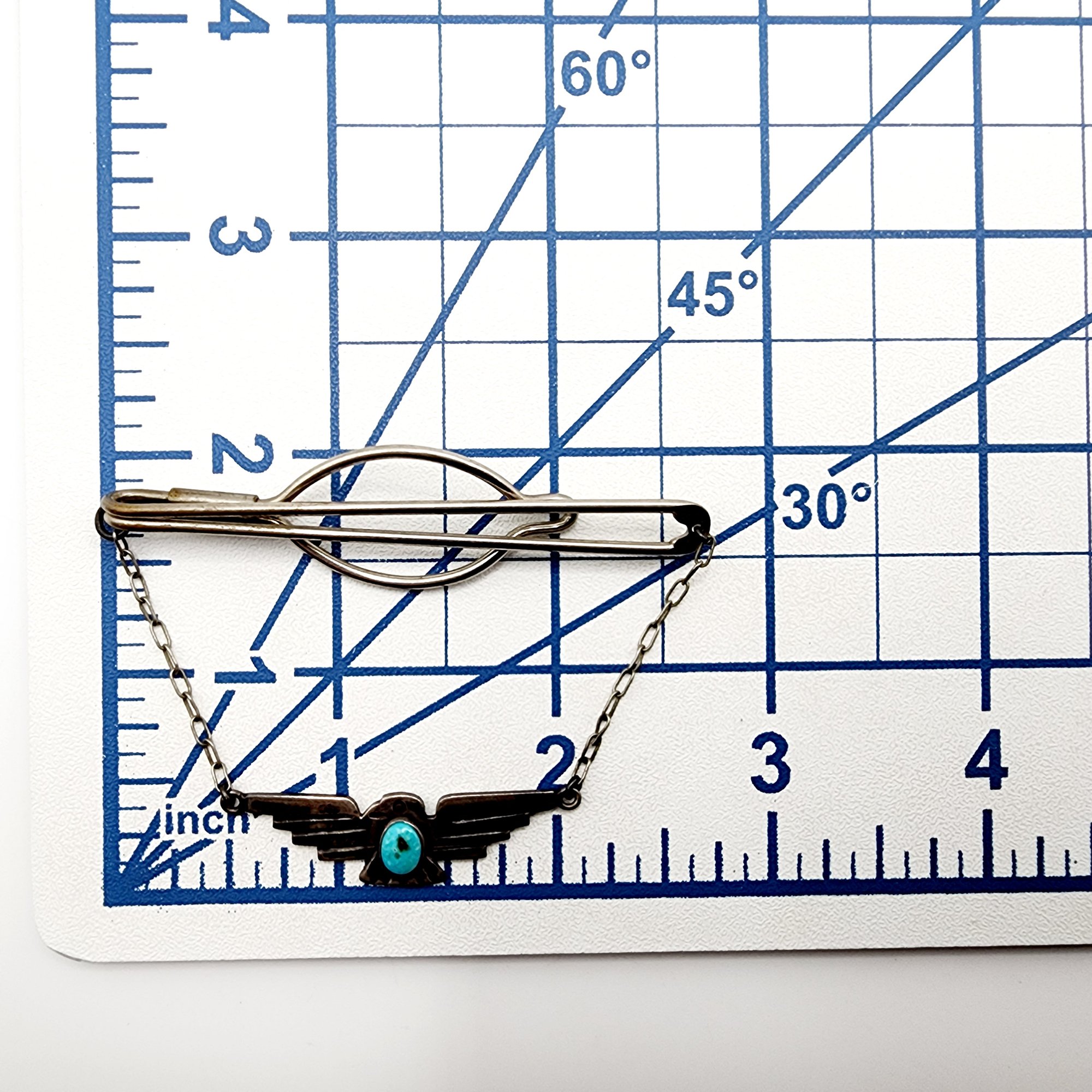 Vintage Fred Harvey Era Sterling Turquoise Thunderbird Tie Clip 7.9g
