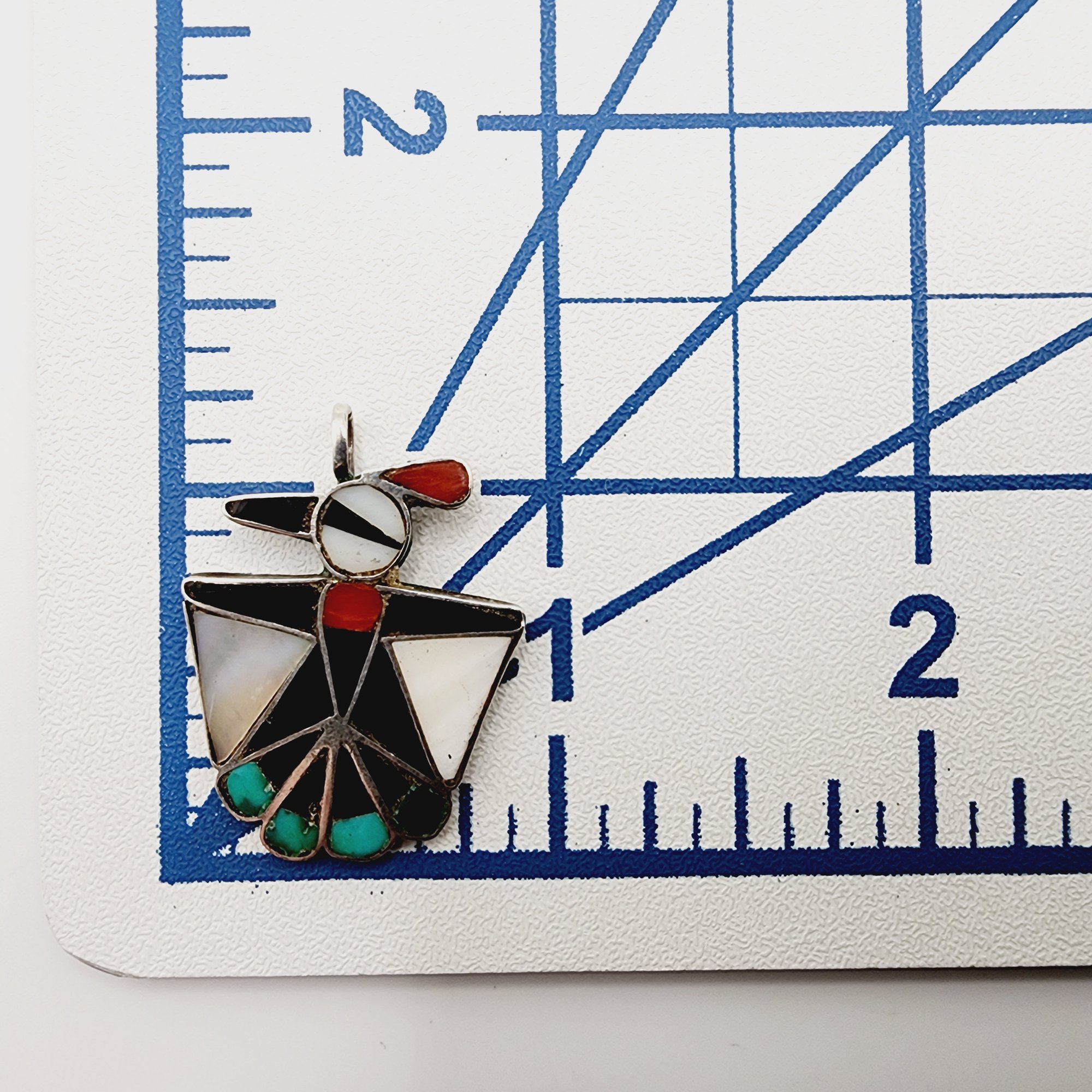 Zuni Sterling Multistone Inlay Thunderbird Pendant 3.1g