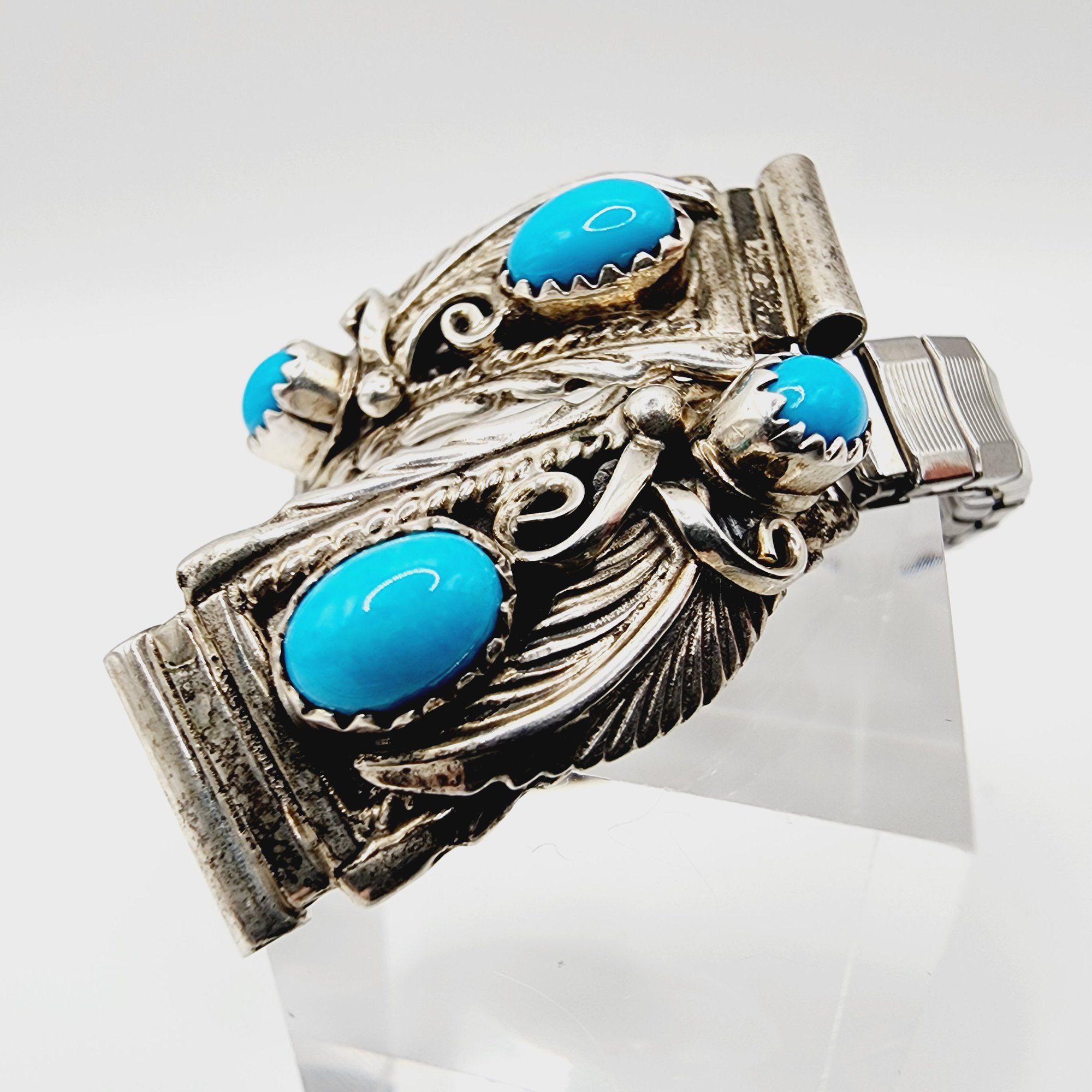 Running Bear Sterling Turquoise Watch Tips and Stainless-Steel Band 13g