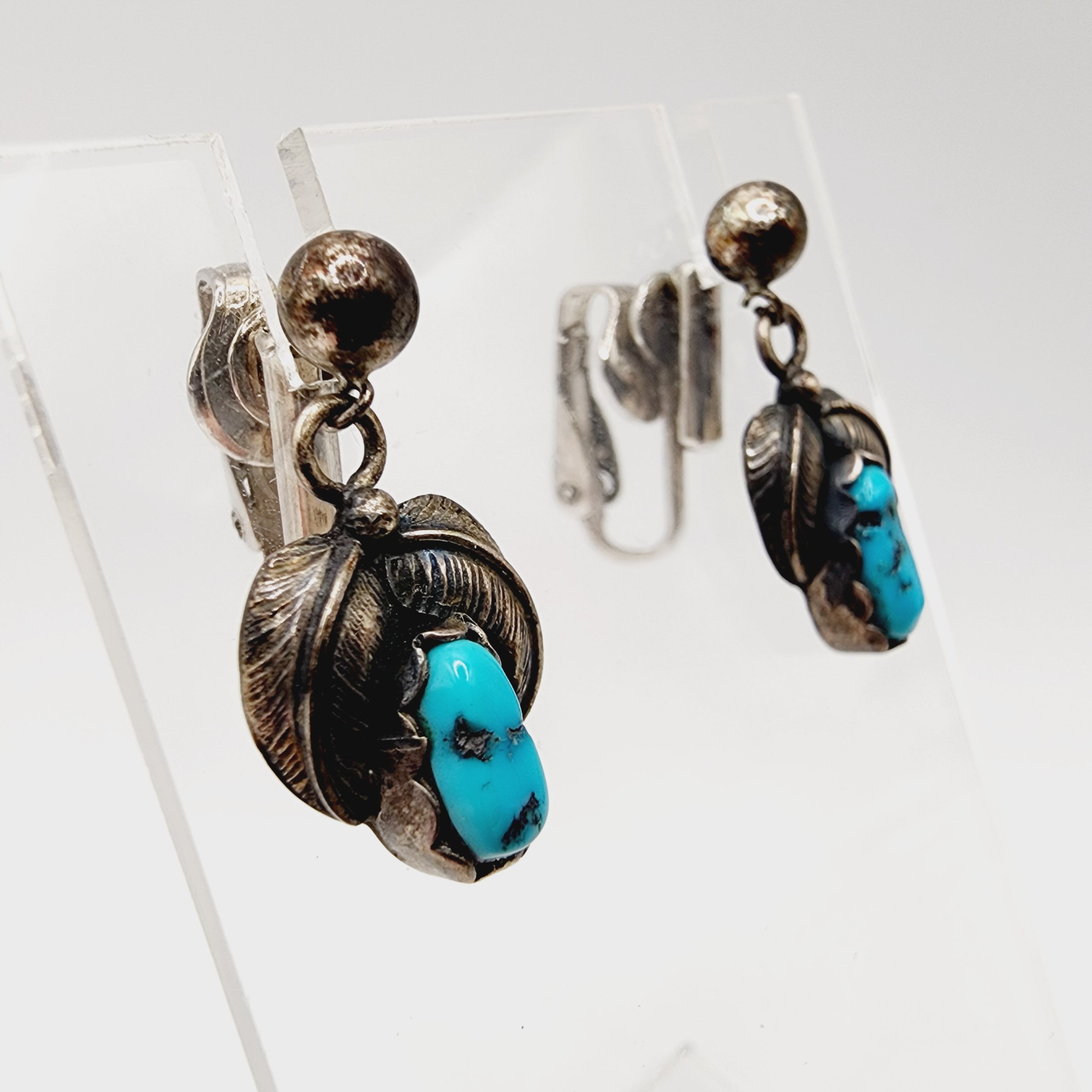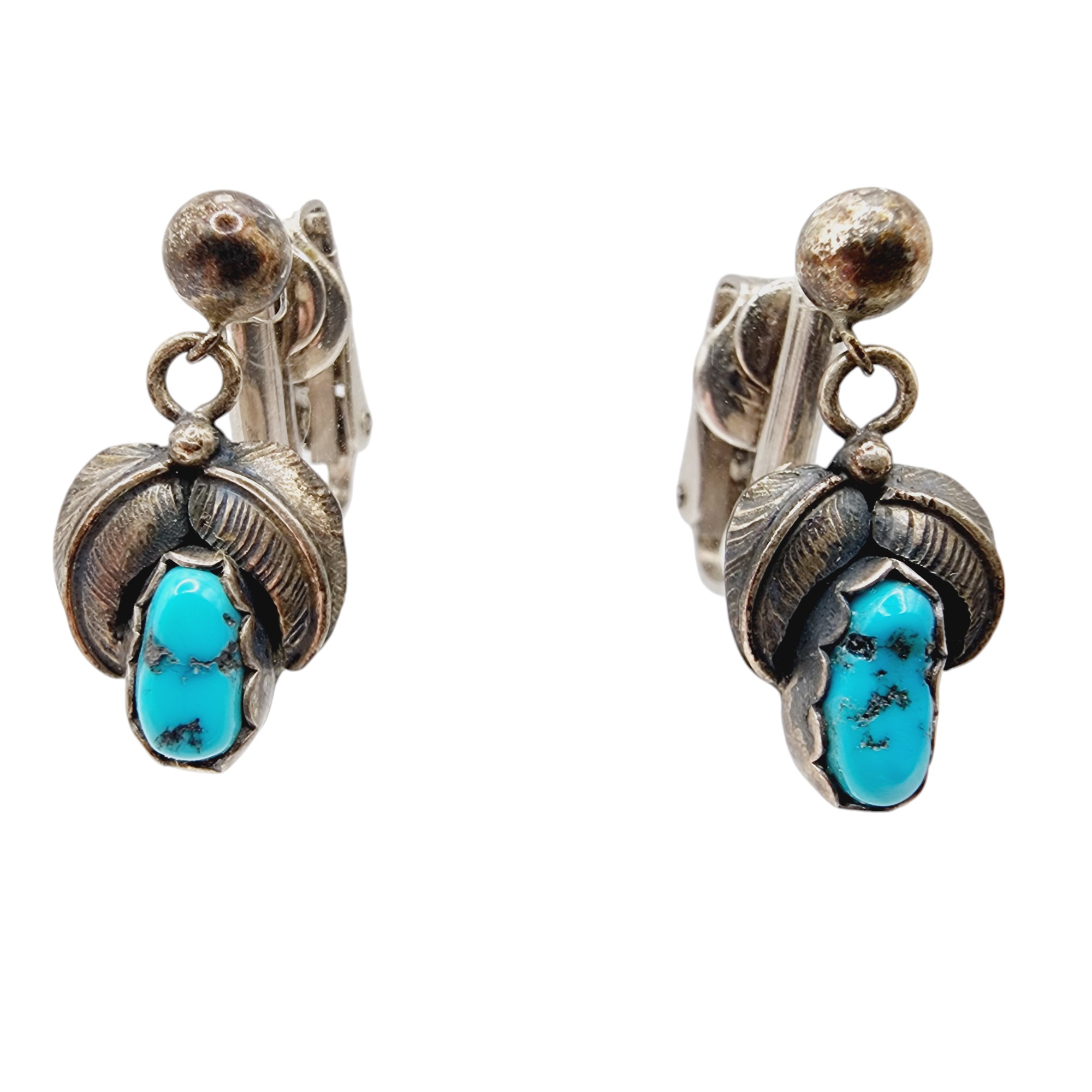Vintage Ellen Myrtle Navajo Sterling Turquoise Earrings 4.7g
