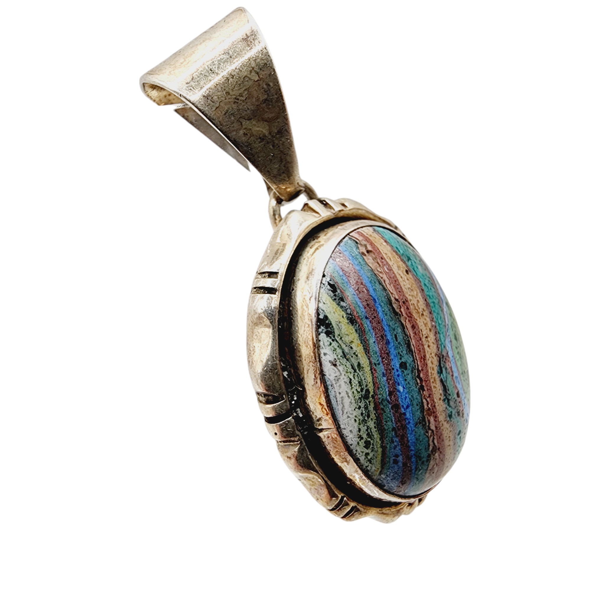 Navajo Sterling Rainbow Calsilica Pendant 7.1g