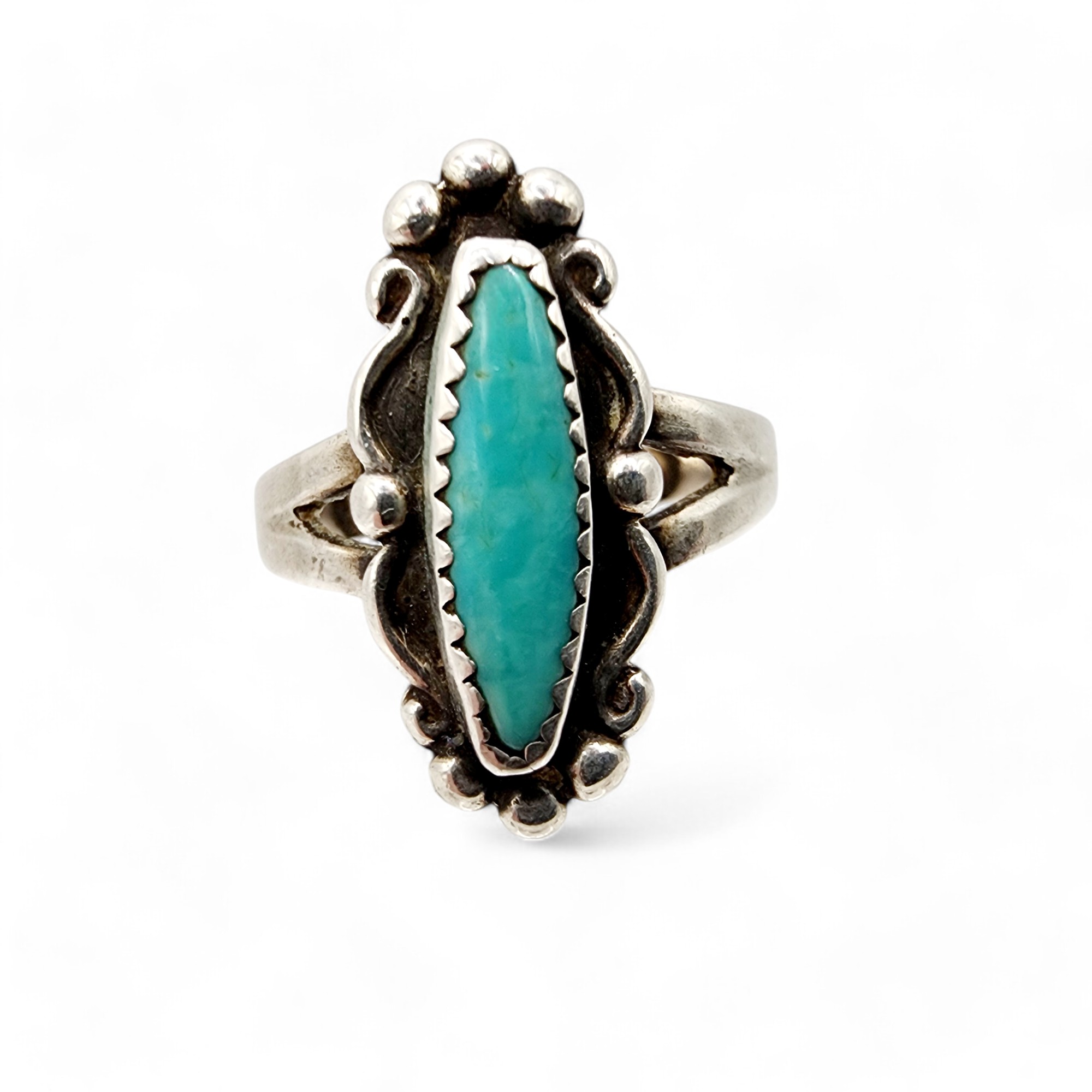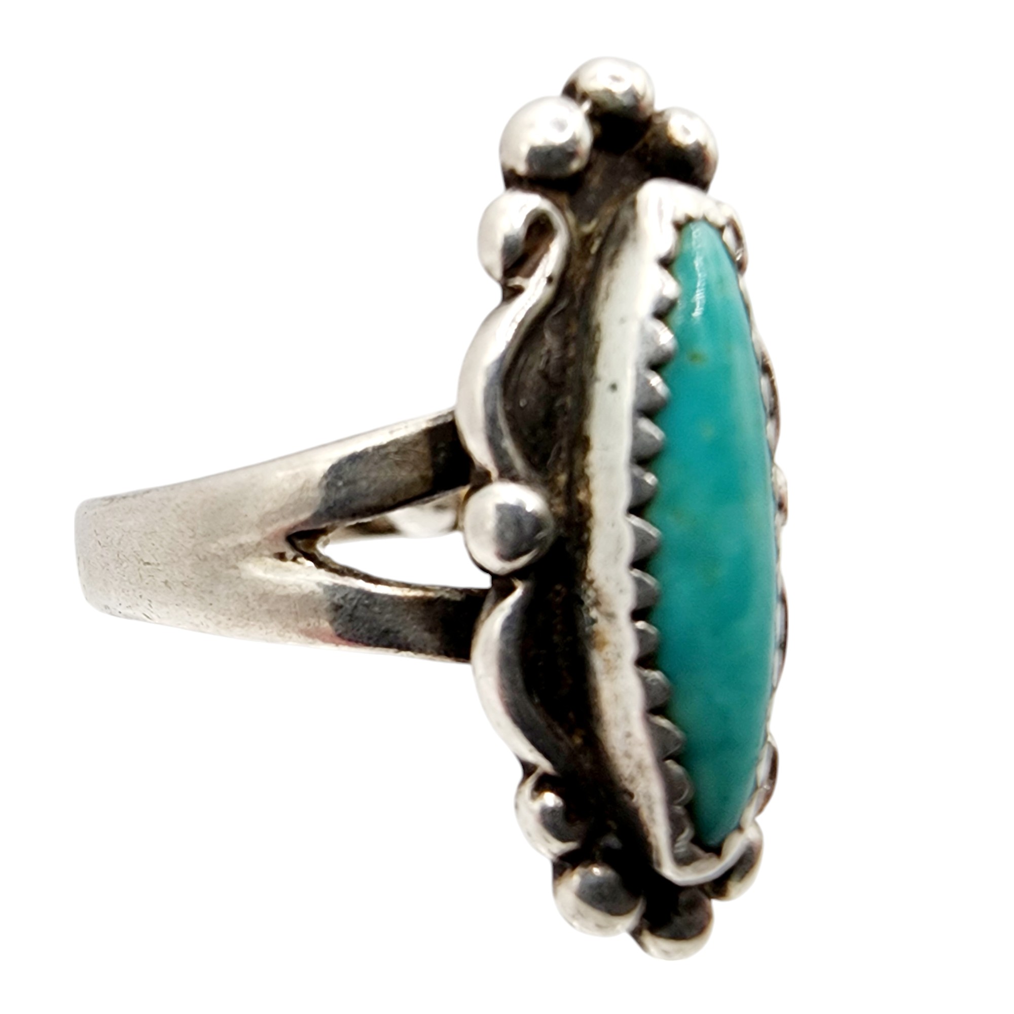 Fred Harvey Era Sterling Turquoise Ring Sz 6.5 3.8g