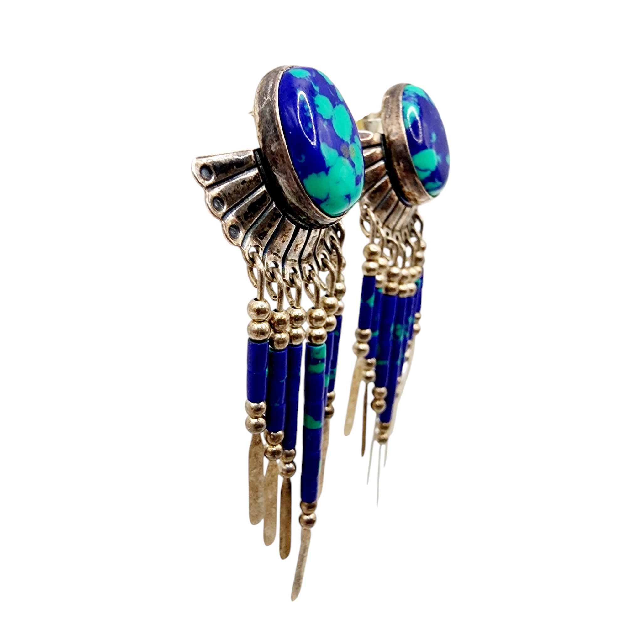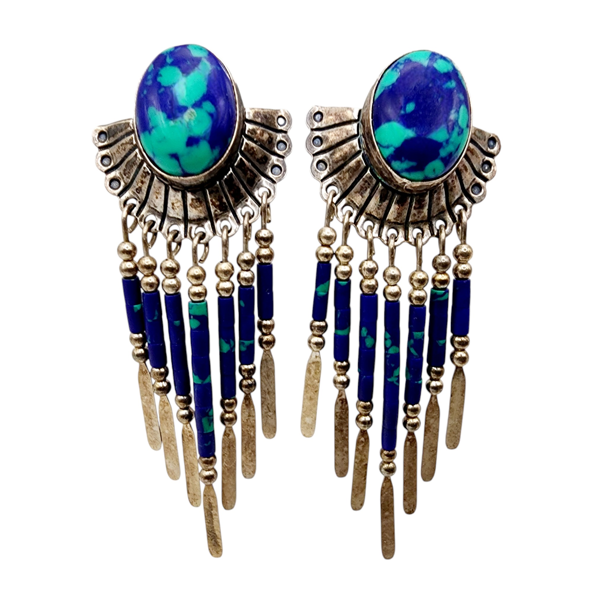 Quoc Trading Co. Azurite Fringe Sterling Earrings 8.6