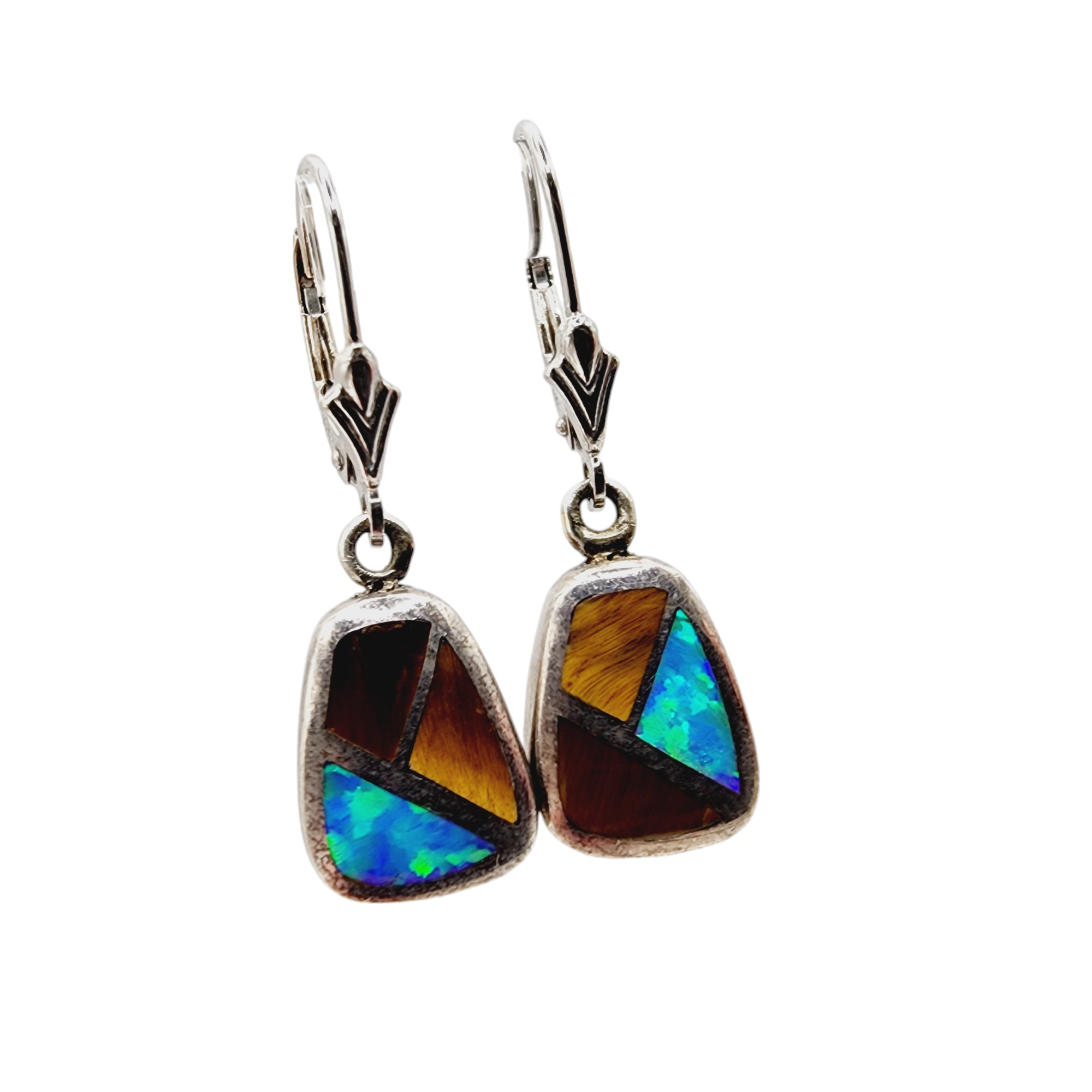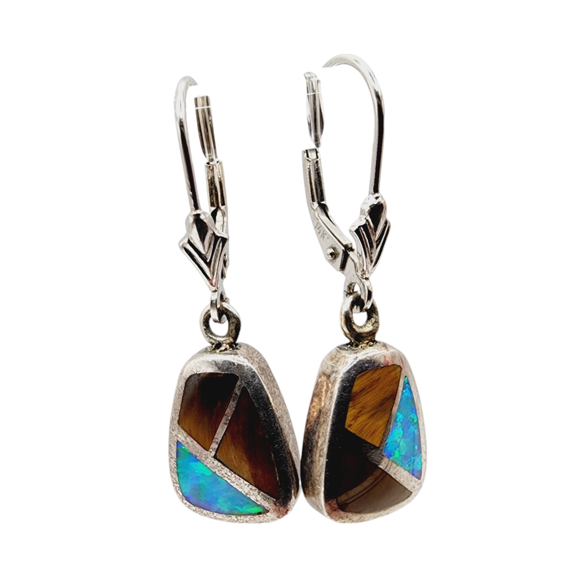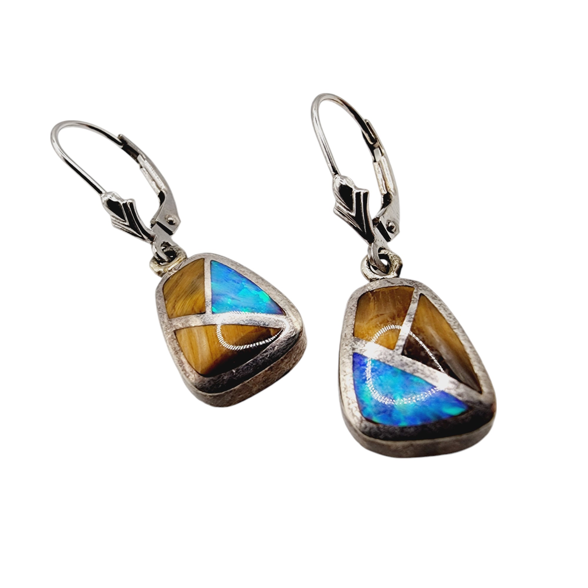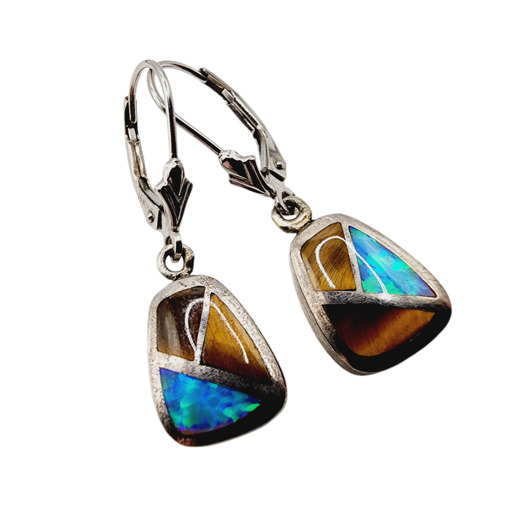 Teme Sunburst Handcrafts Opal Tiger Eye Earrings 5.2g