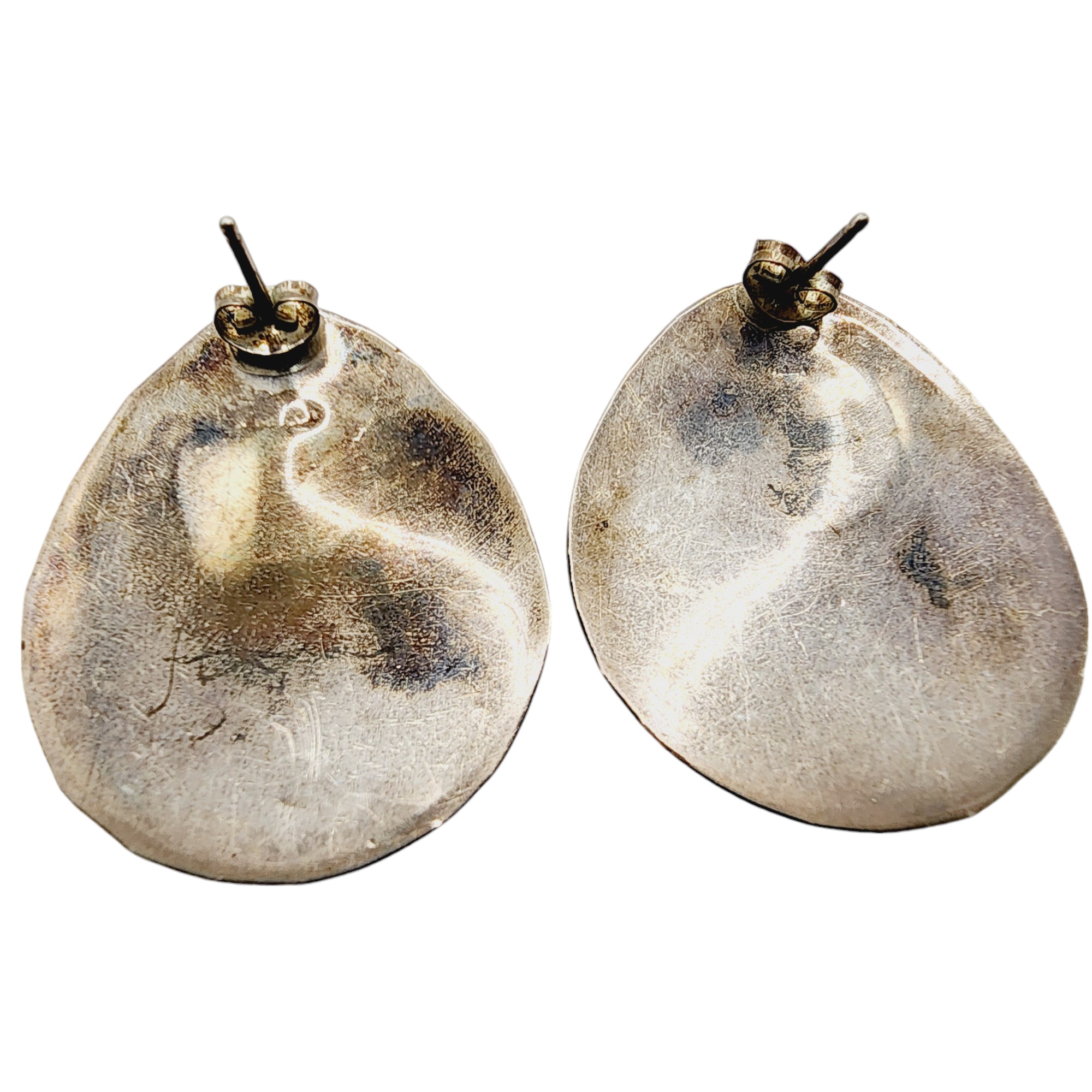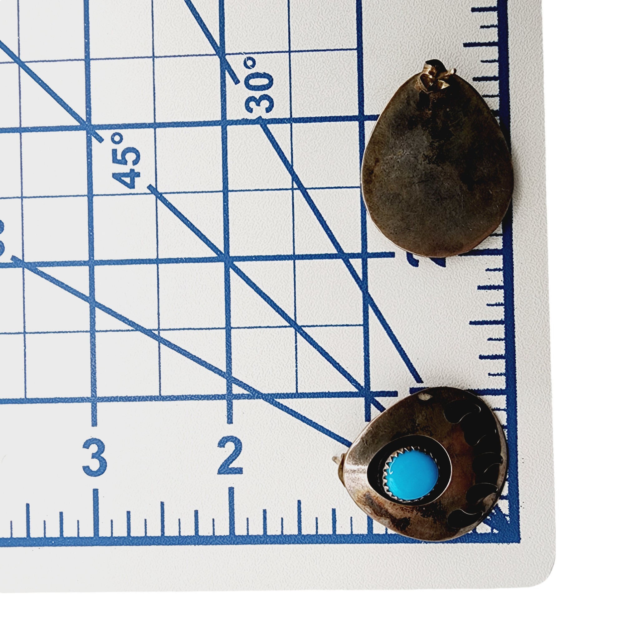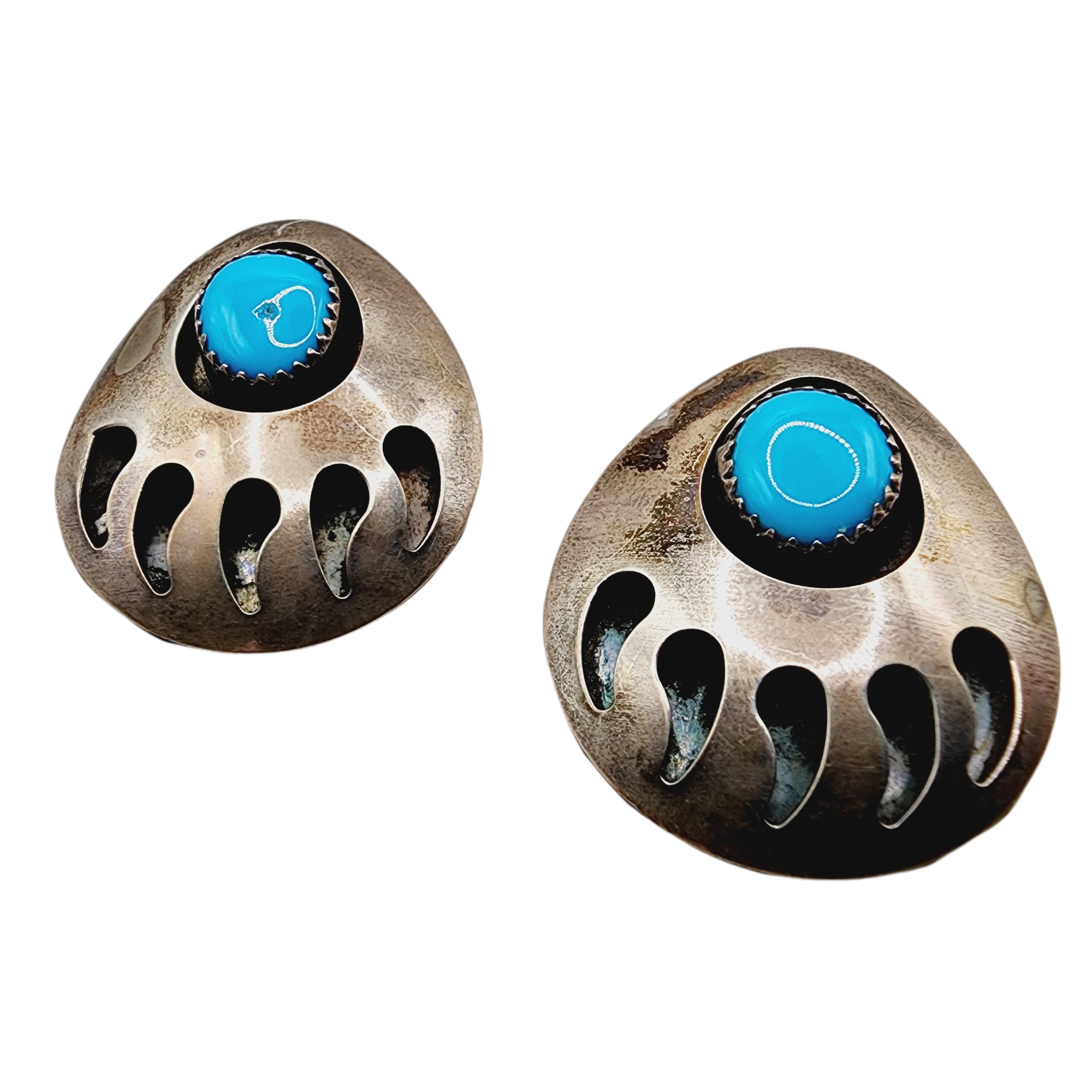 Navajo Sterling Shadowbox Turquoise Bear Paw Earrings 7.2g