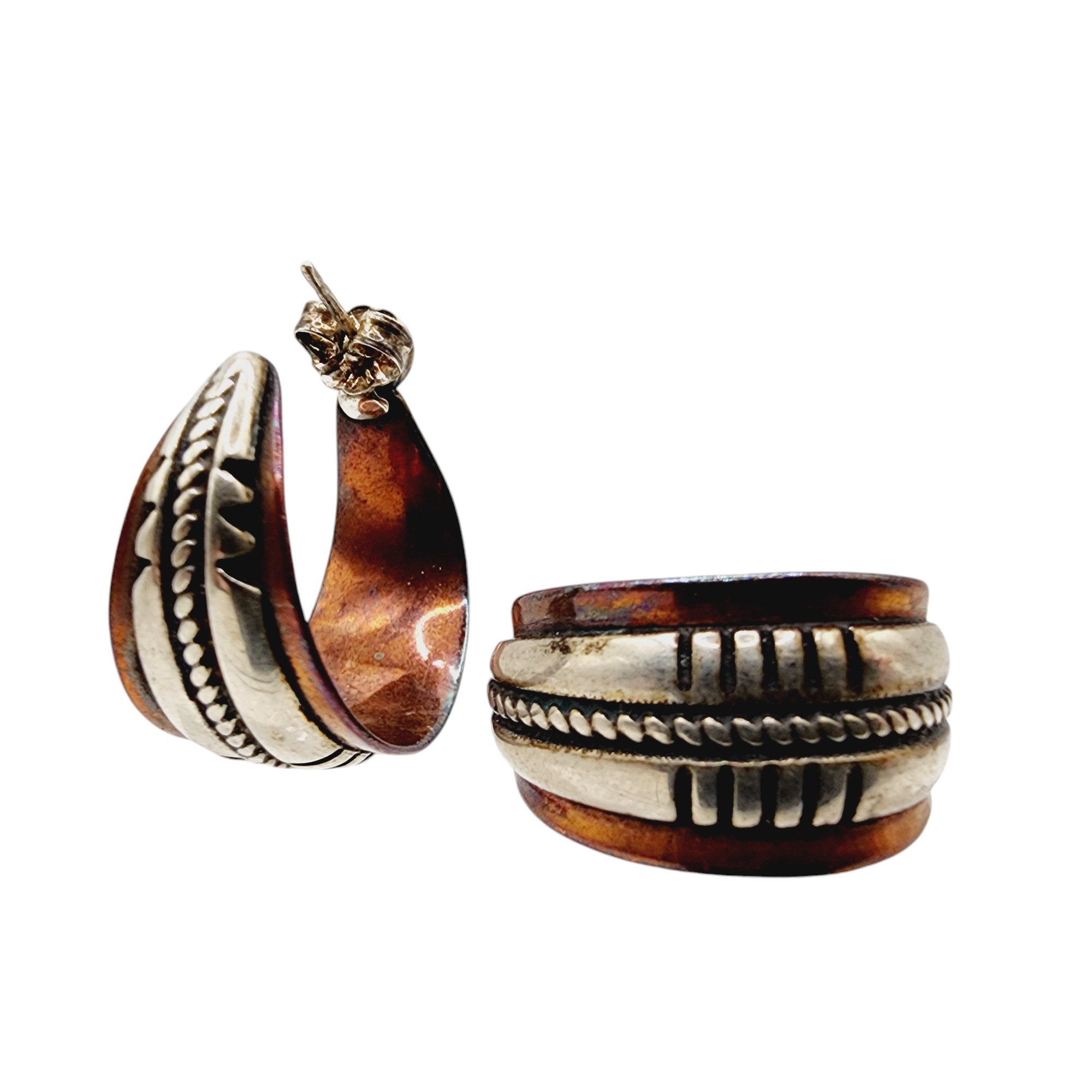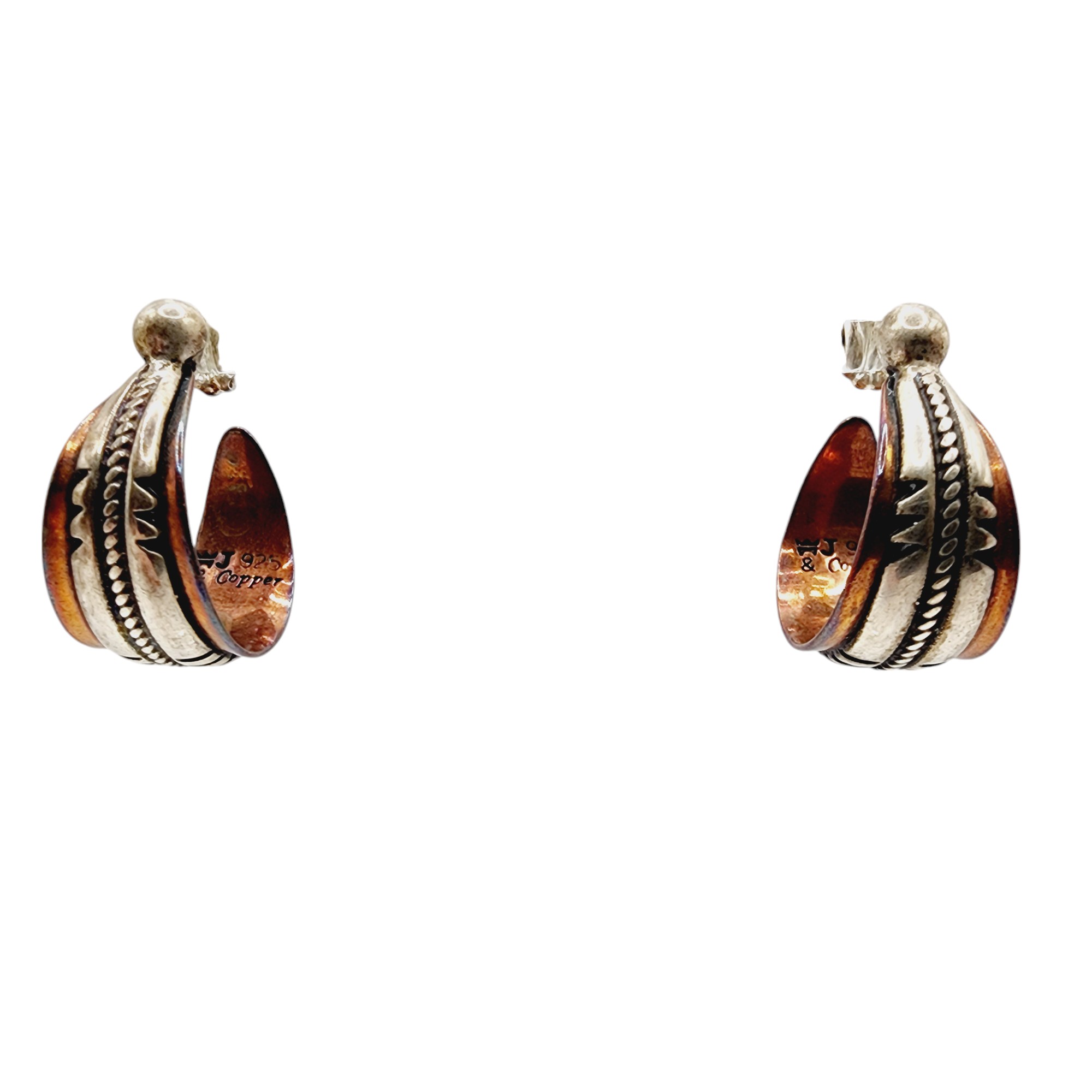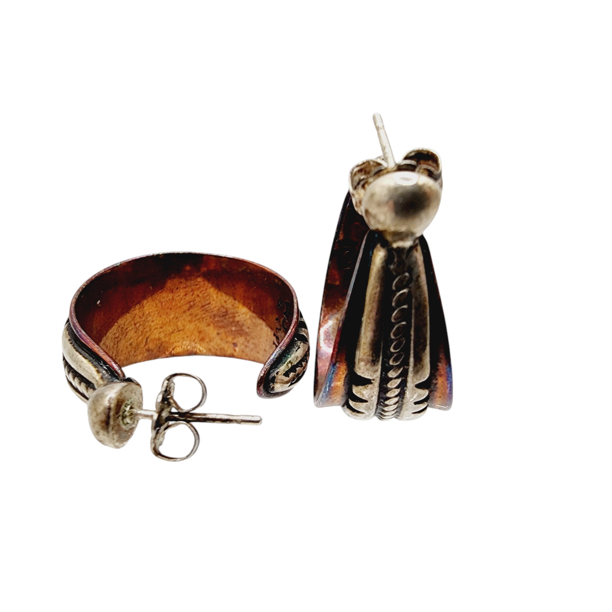 Waldeck Johnson Navajo Sterling Feather Hoop Earrings 12.3g