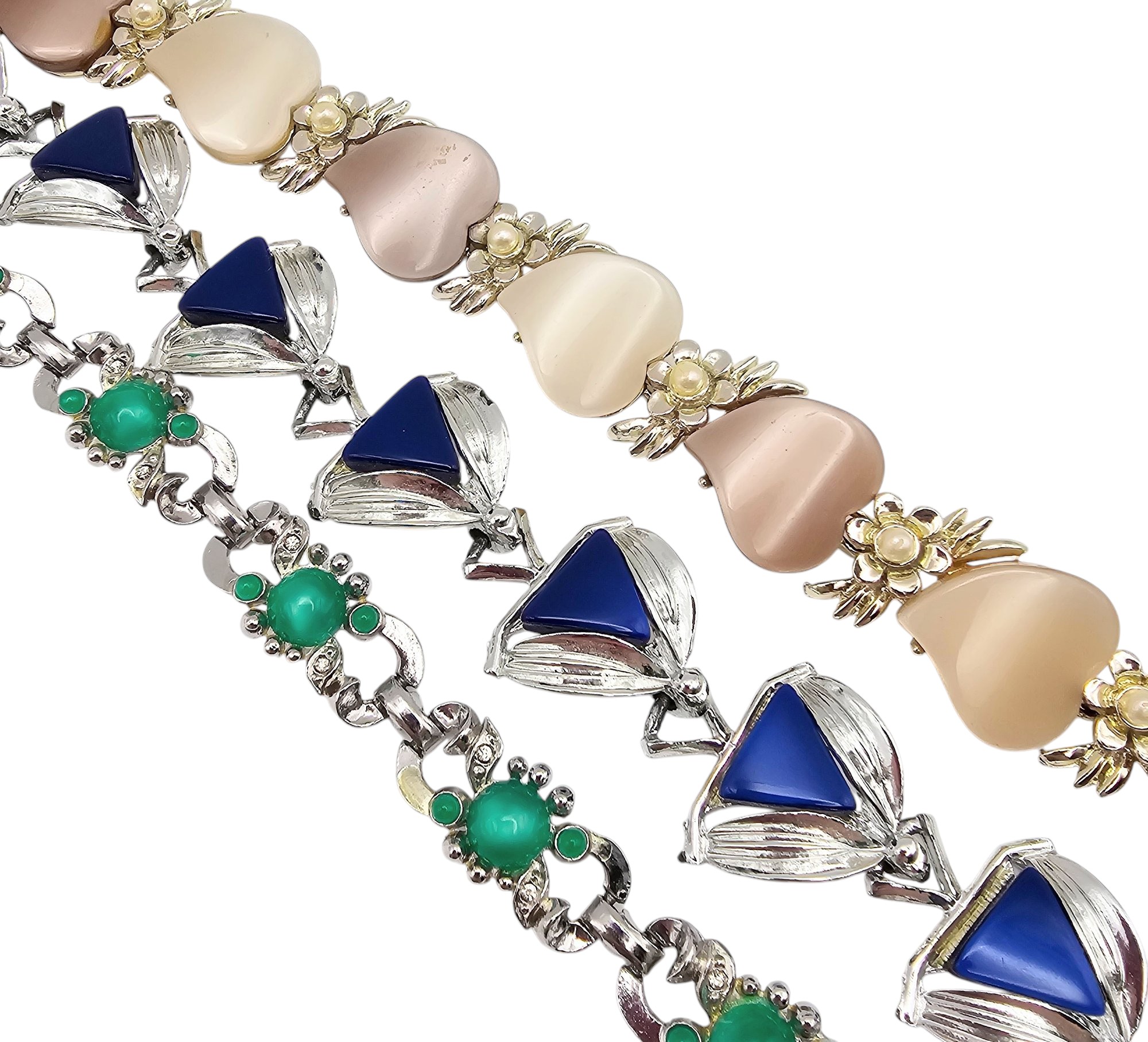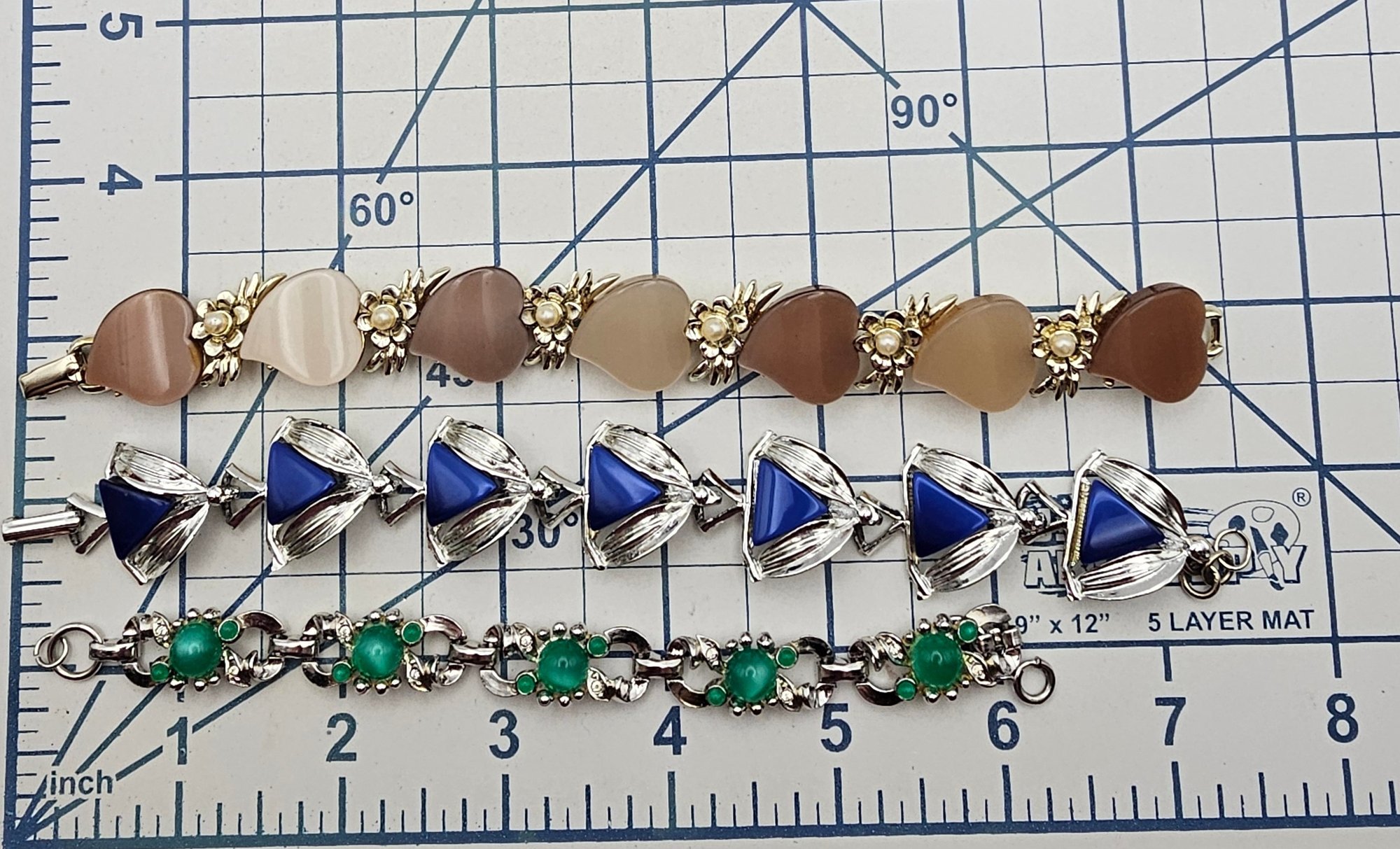 Vintage Moonglow Lot 3 Thermoset/Lucite Green Blue Autumn Color Bracelets