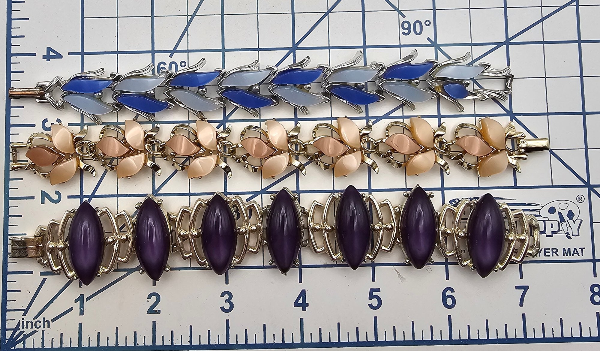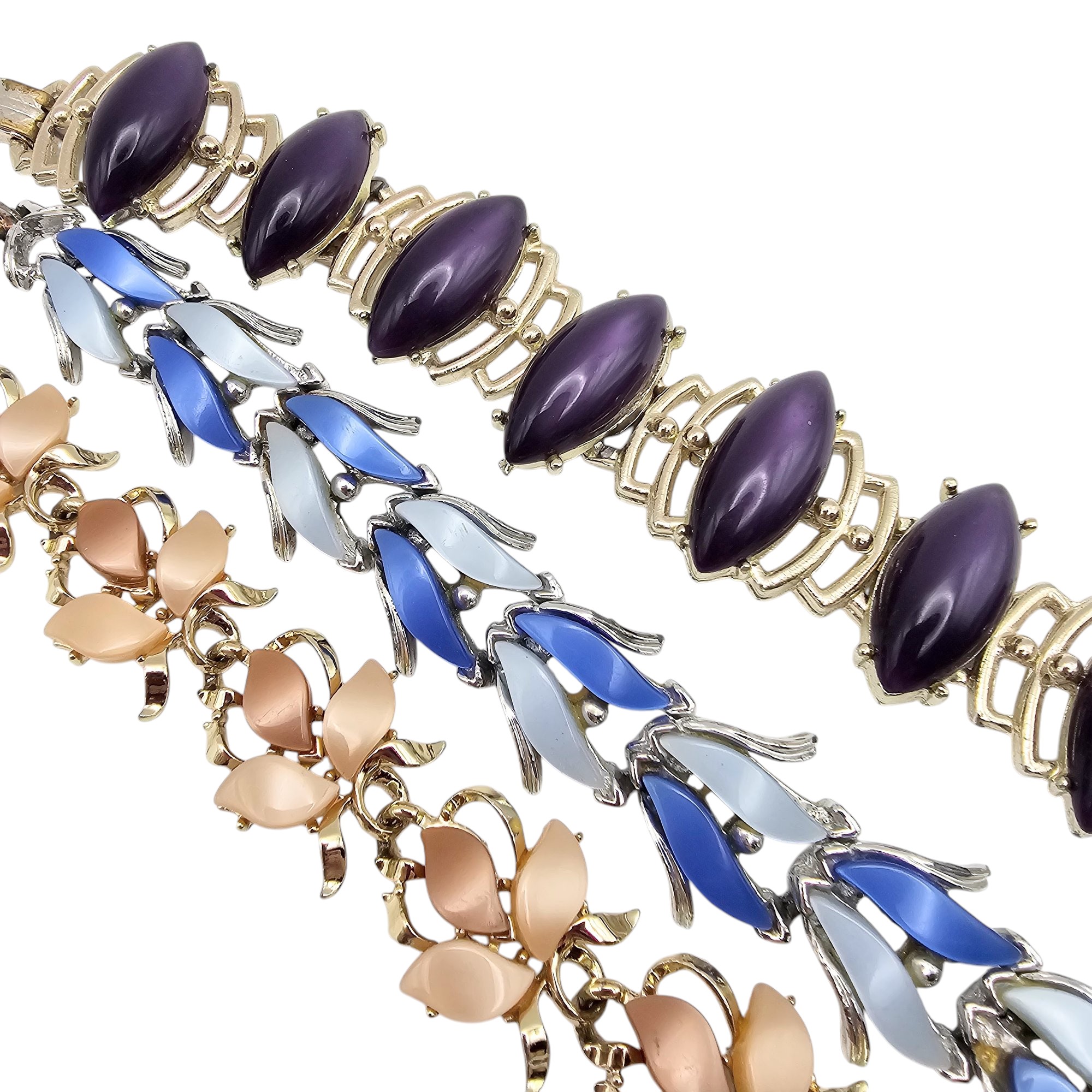 Mid Century Lot 3 Purple Blue Crea Thermoset/Lucite Bracelets
