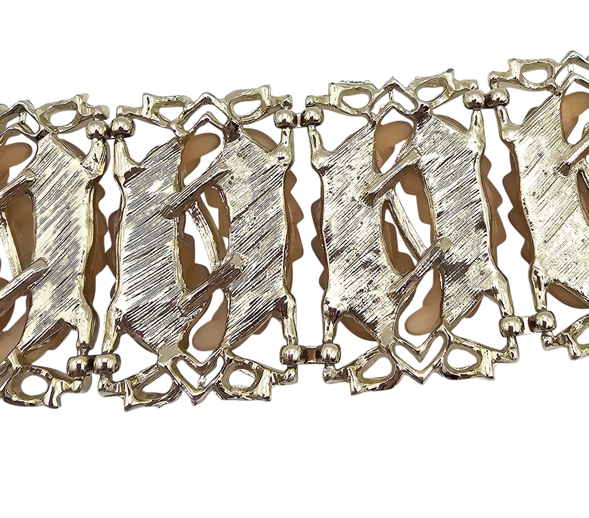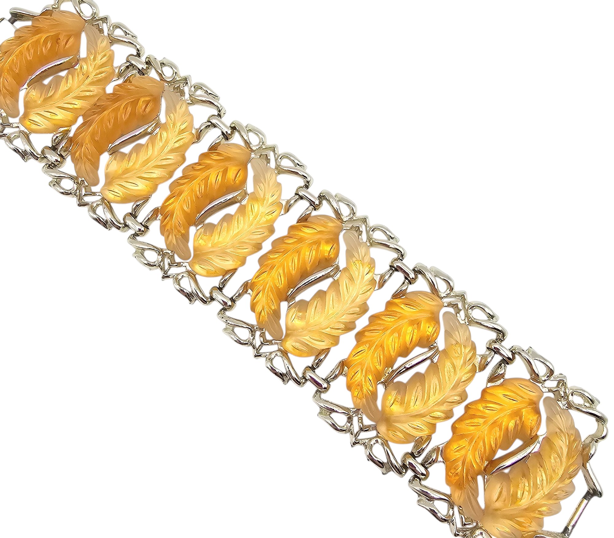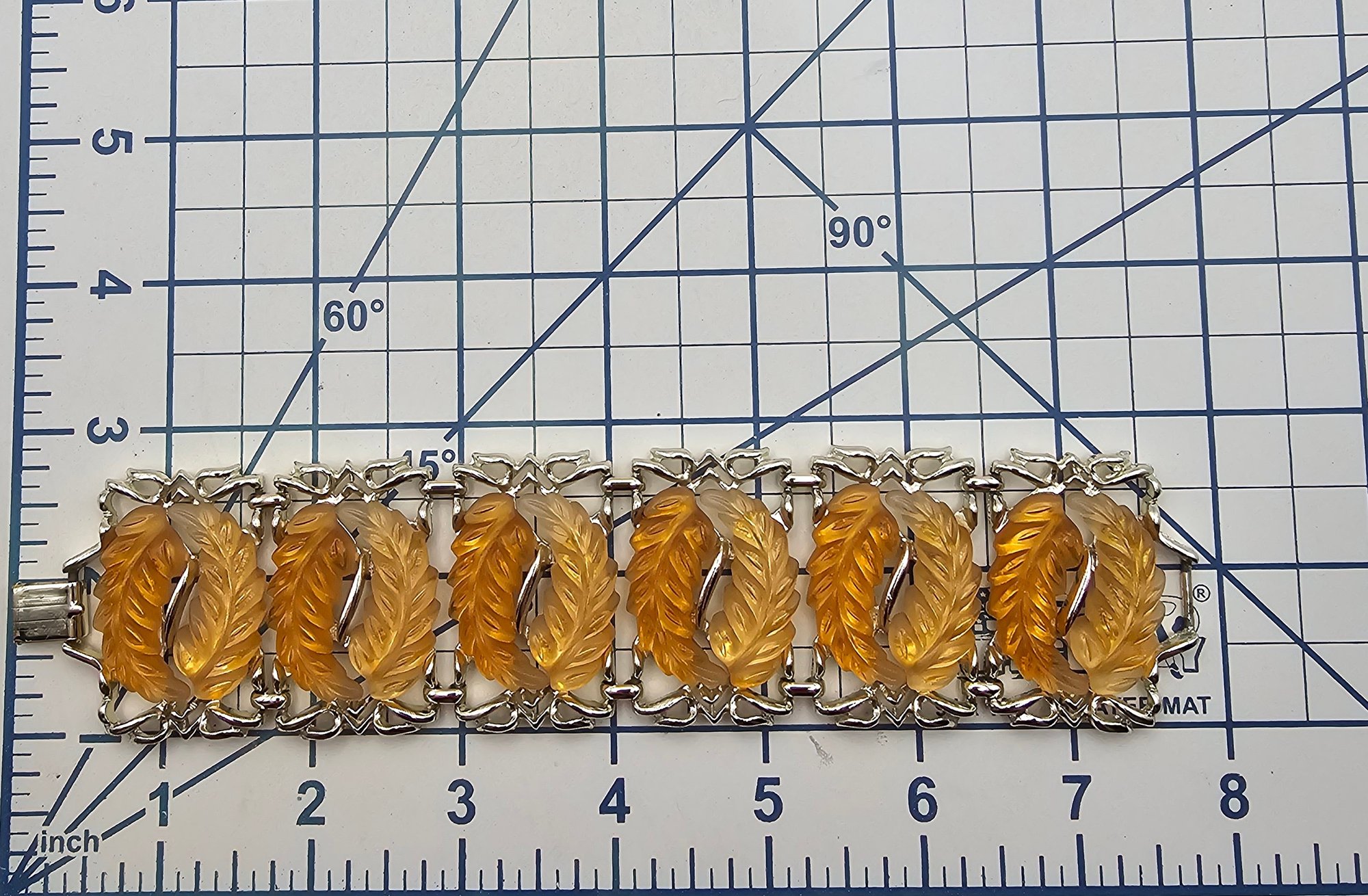 Vintage Peach Pastel Orange Lucite Silver Tone Leaf Bracelet