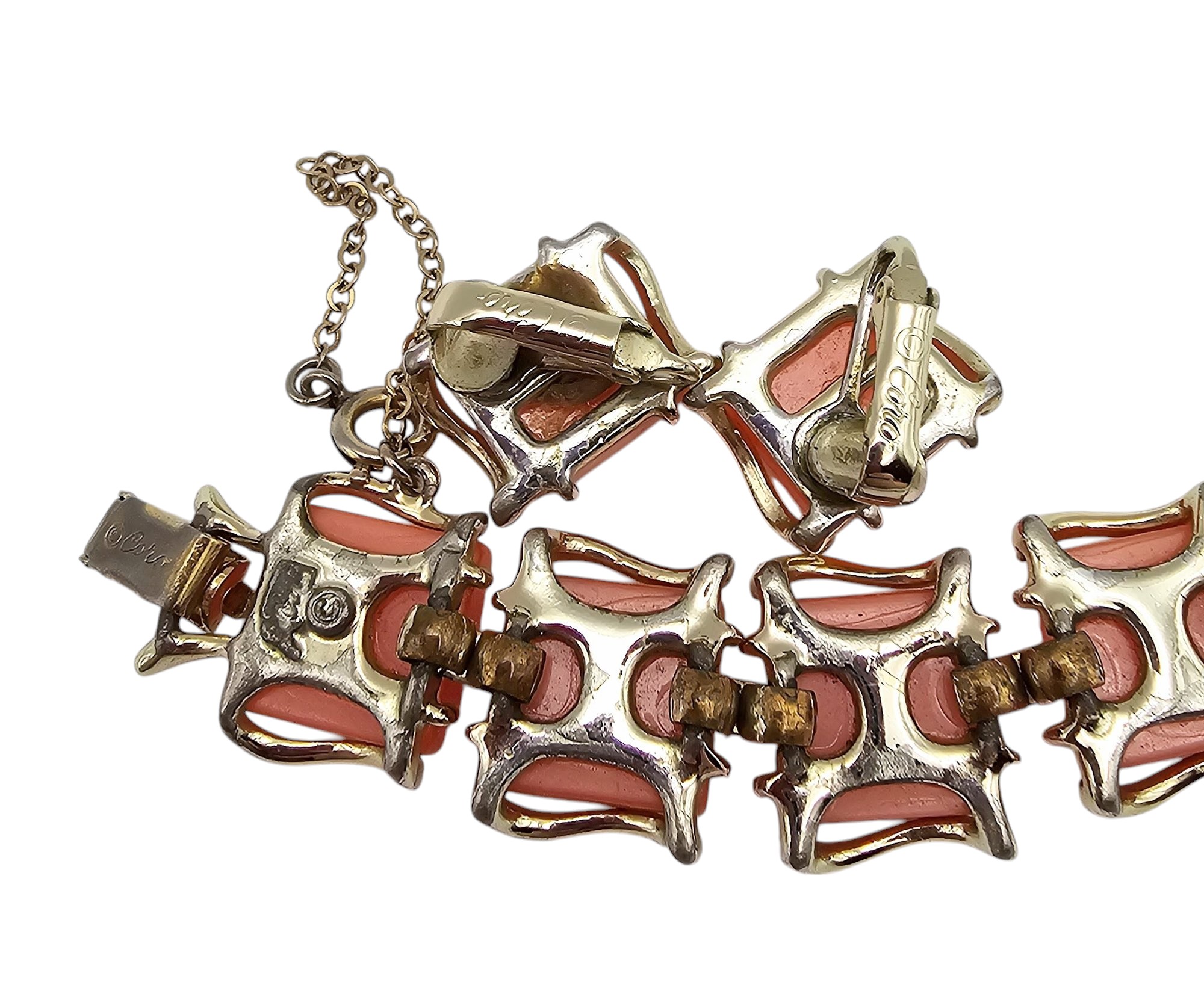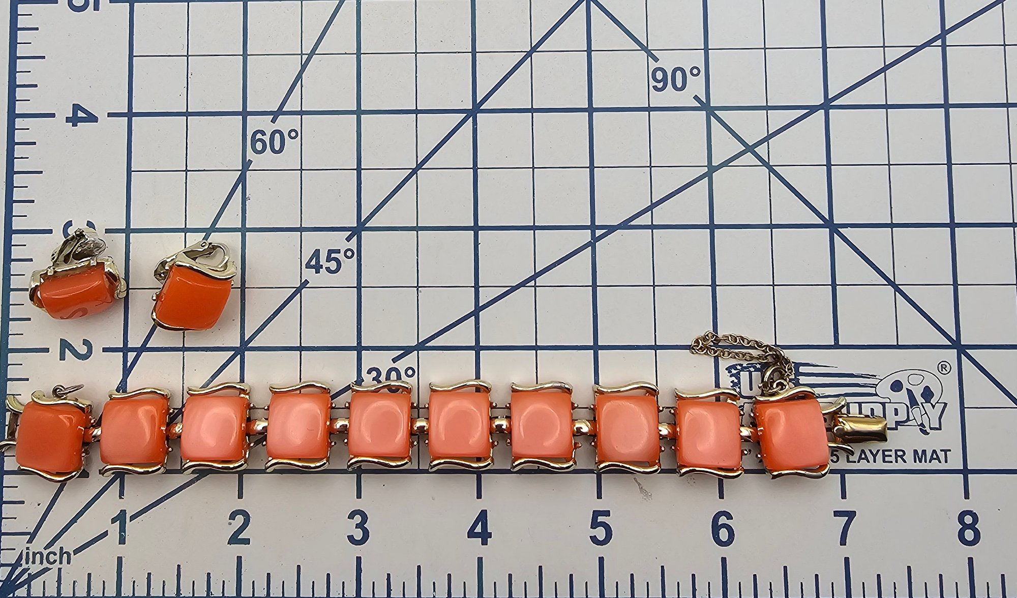 Pegasus Coro 1960’s Peach Moonglow Thermoset Silver Tone Bracelet Earrings Set