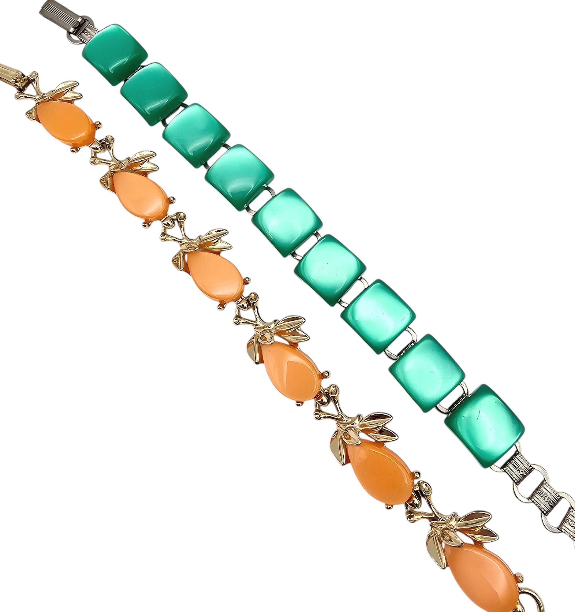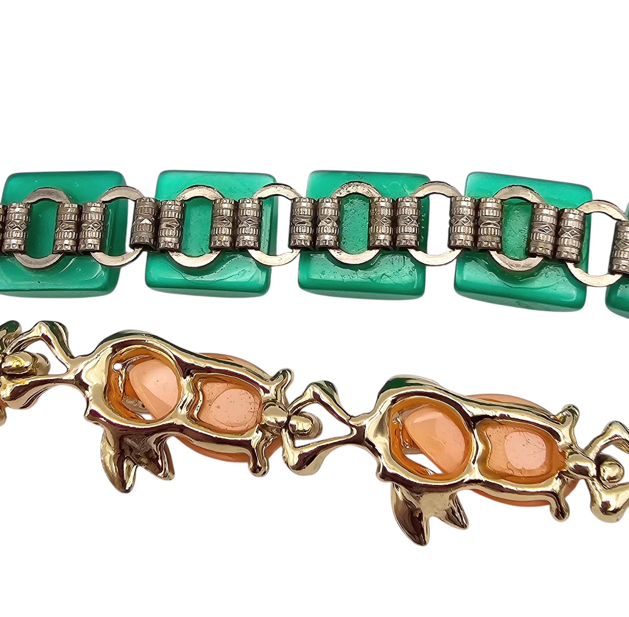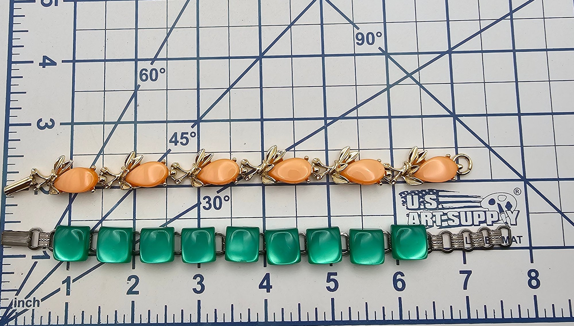 Vintage Lot 2 Thermoset/Lucite Green Tangerine Bracelets