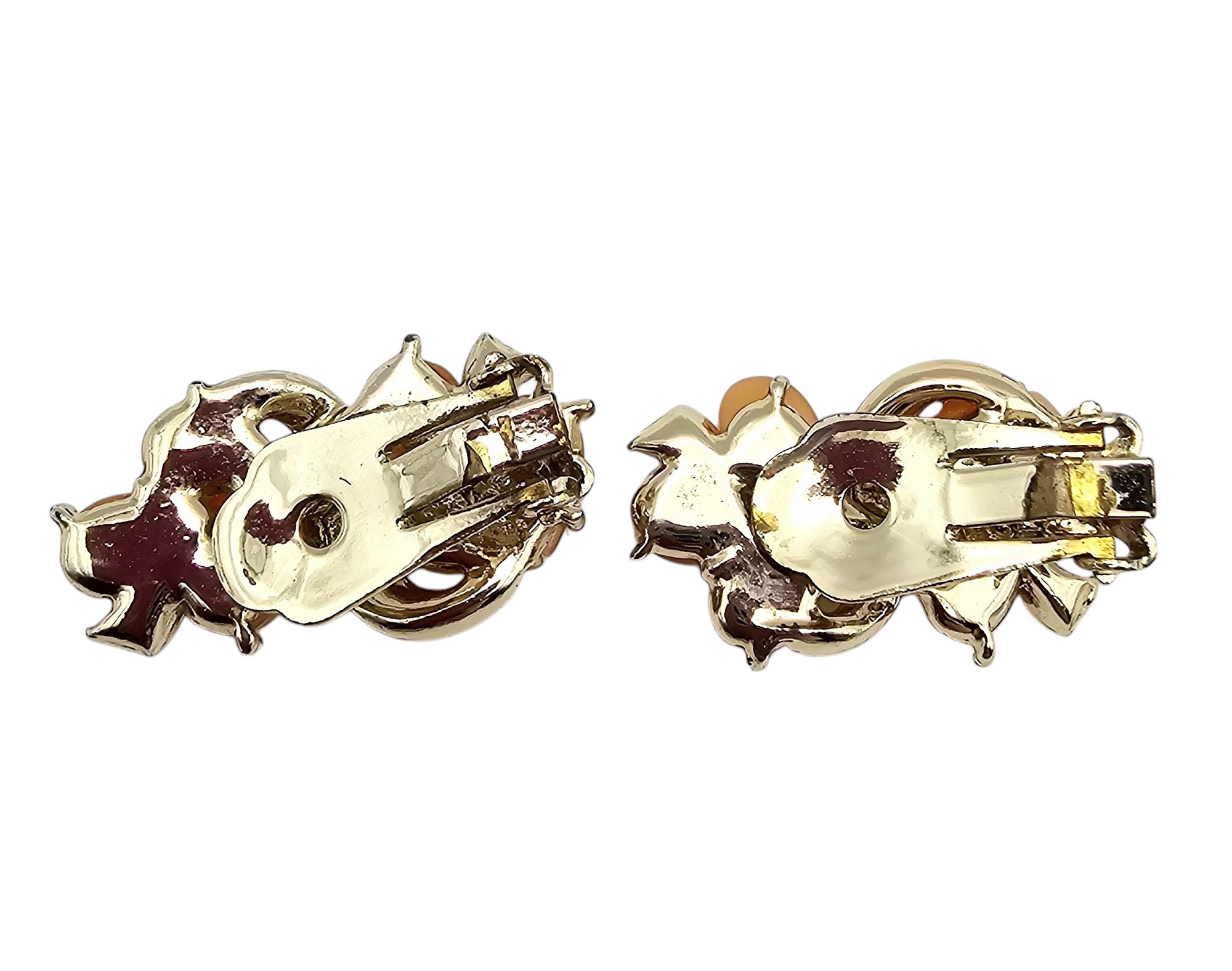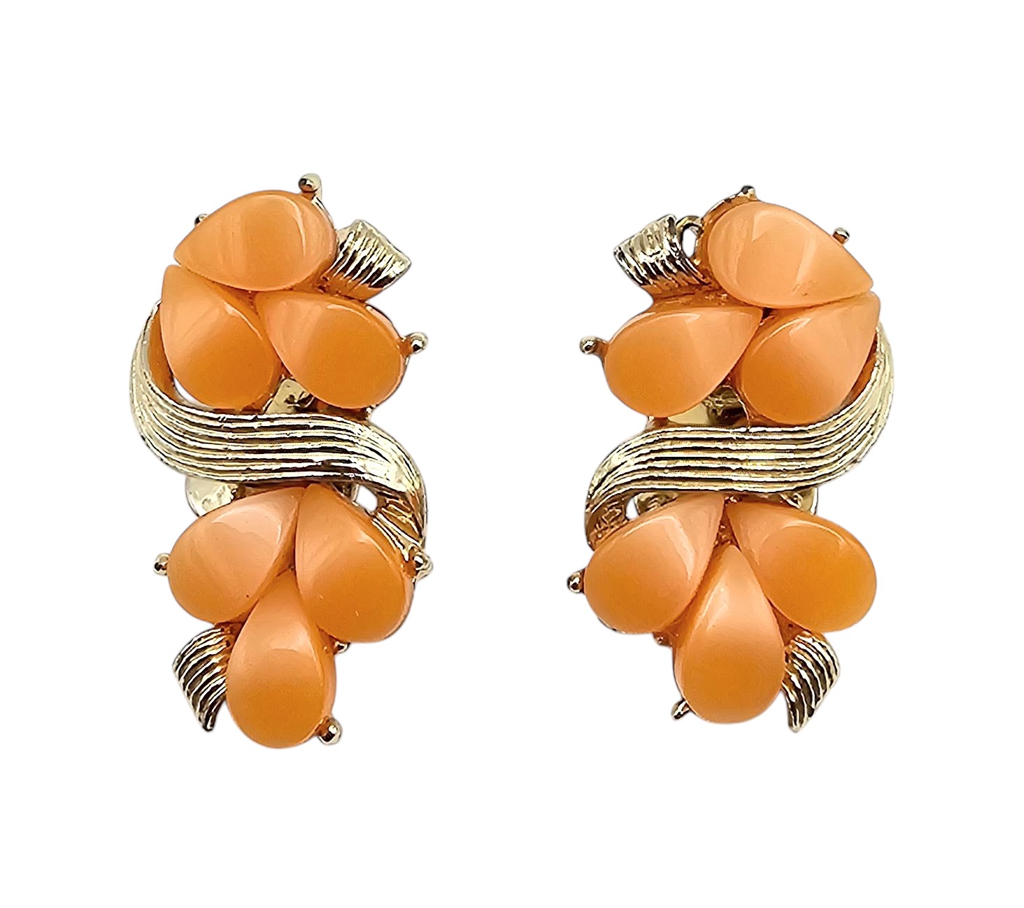 Vintage Moonglow Lucite Tangerine Gold Tone Earrings