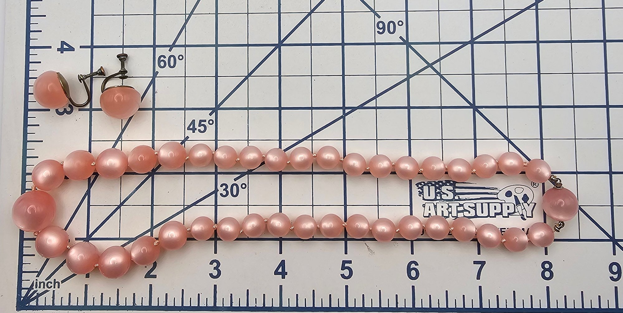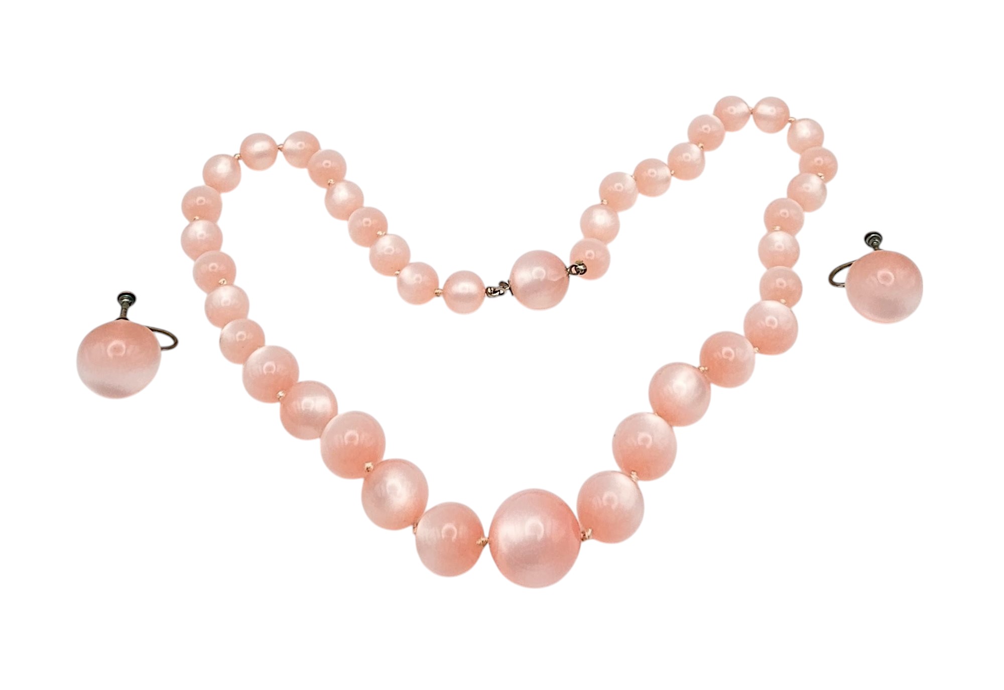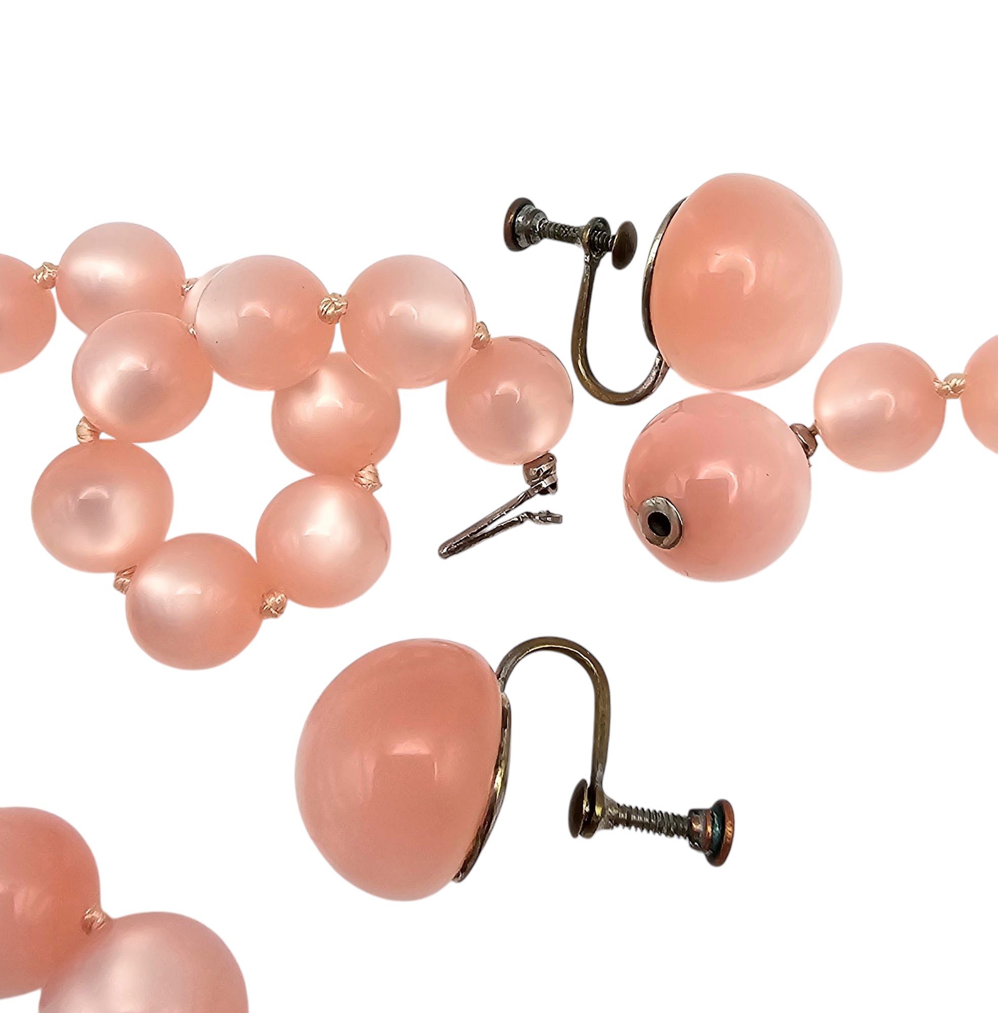 Vintage Pink Moonglow Lucite Bead Necklace Earrings Set
