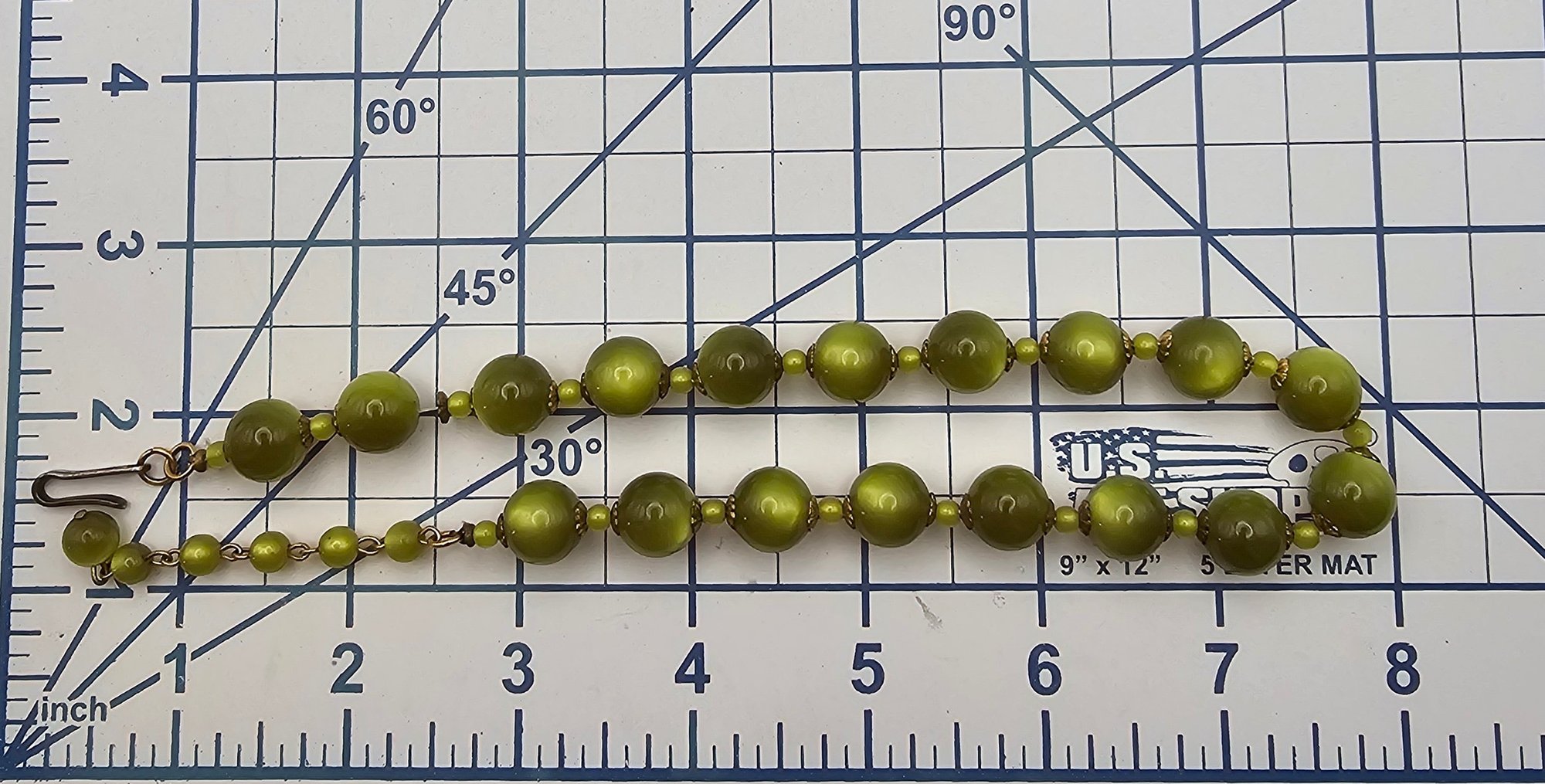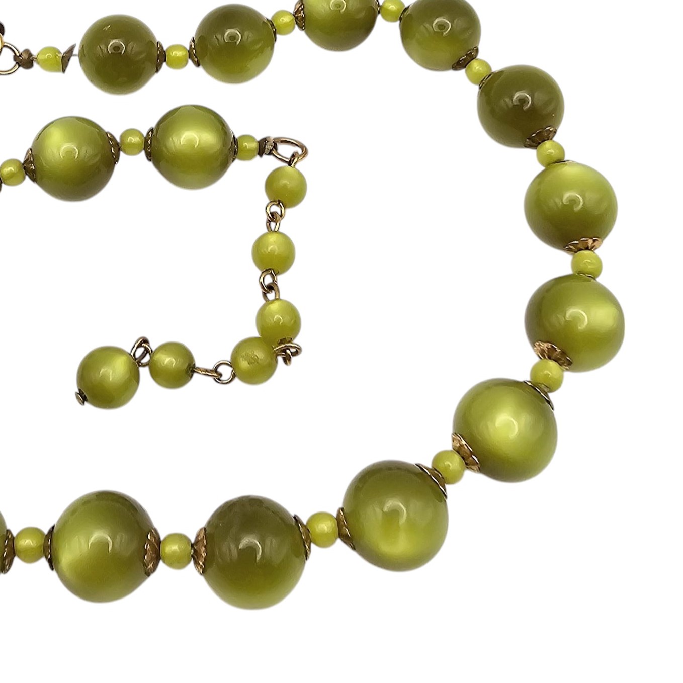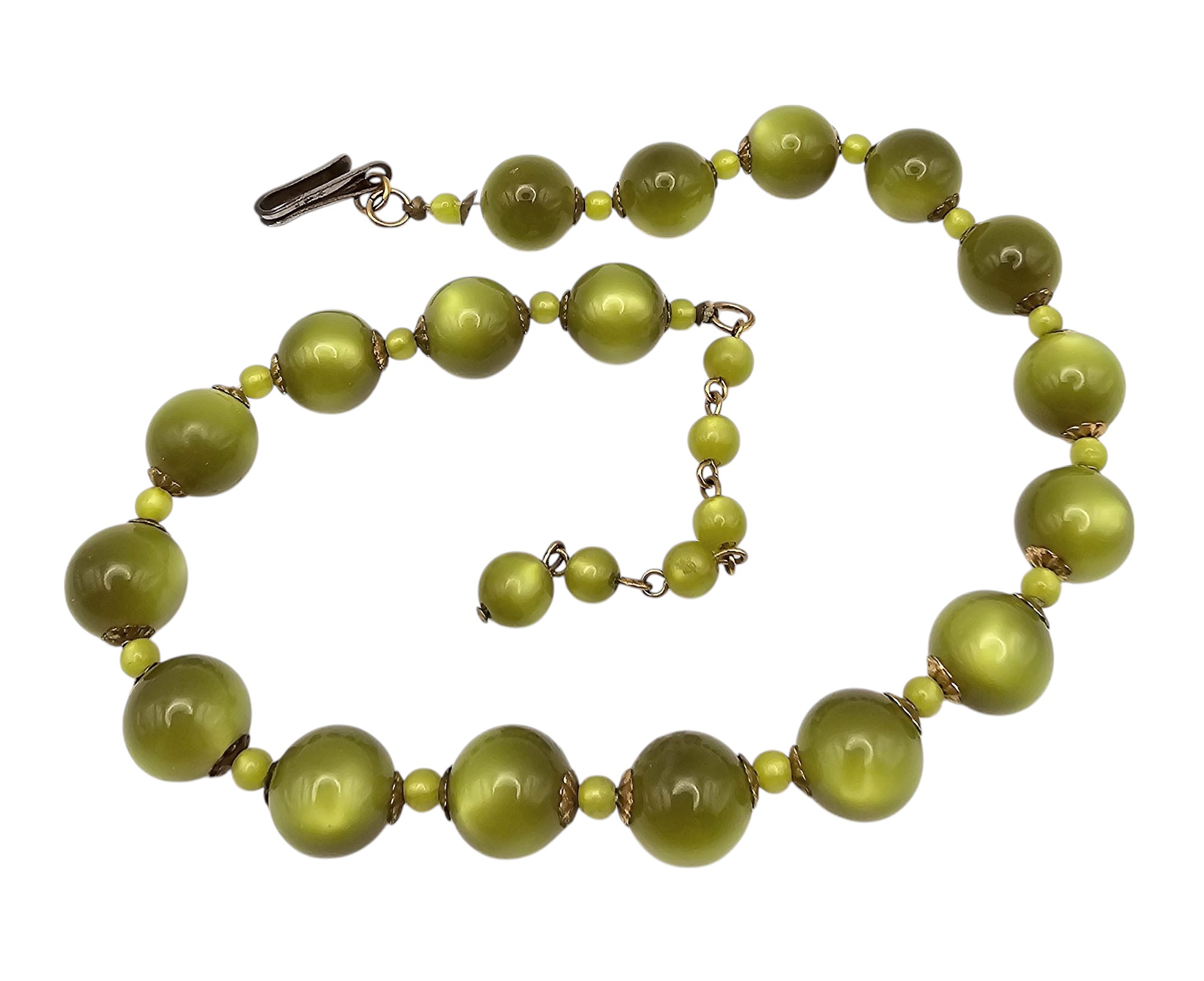 Vintage Olive Green Moonglow Lucite Bead Necklace