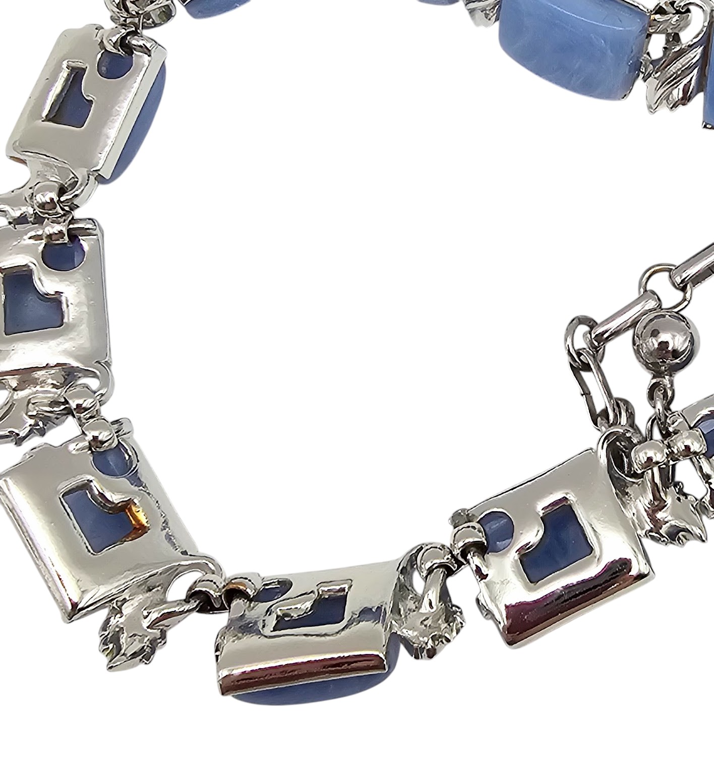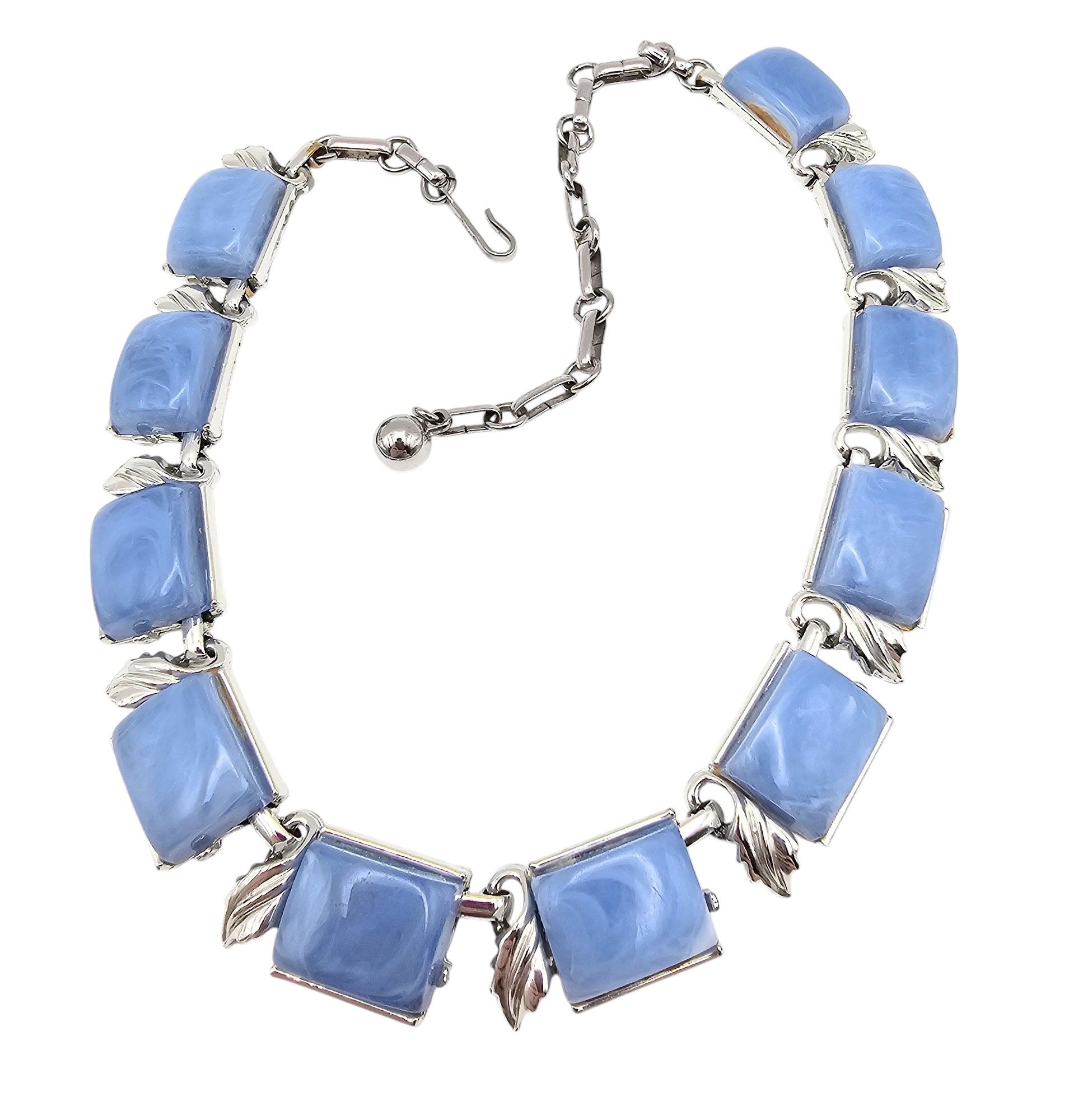 Vintage Blue Swirl Lucite Silver Tone Necklace